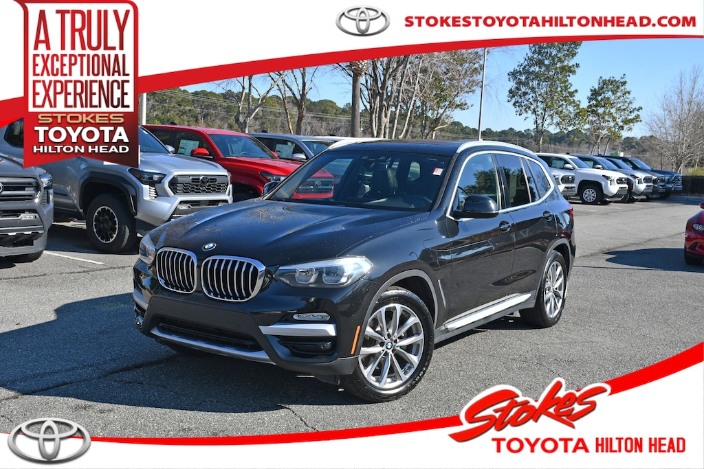 ***Stokes Toyota Hilton Head*** 2019 BMW X3 sDrive30i in Black Sapphire Metallic, Factory Equipped With: Leather Seats, Power Windows, Power Locks, Cruise Control, Remote Keyless Entry, 8-Way Power Drivers Seat, Integrated Back Up Camera, Sunroof, Alloy Wheels, Heated Leather, Power Lift Gate, 12 Speakers, ABS brakes, Active Blind Spot Detection, Active Driving Assistant, Air Conditioning, Apple CarPlay Compatibility, Automatic temperature control, Driving Assistance Package, Dual front impact airbags, Dual front side impact airbags, Front Bucket Seats, Front dual zone A/C, Front fog lights, Lane Departure Warning System, Low tire pressure warning, Memory seat, Panic alarm, Power driver seat, Rear window defroster, Rear window wiper, Speed control, Tilt steering wheel, Trip computer, Variably intermittent wipers, Wheels: 18" x 7.0" Y-Spoke (Style 688). Clean CARFAX.