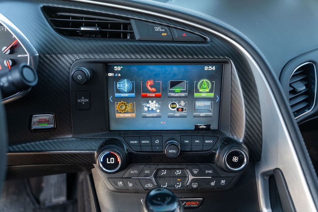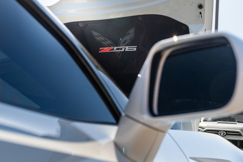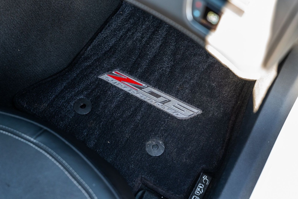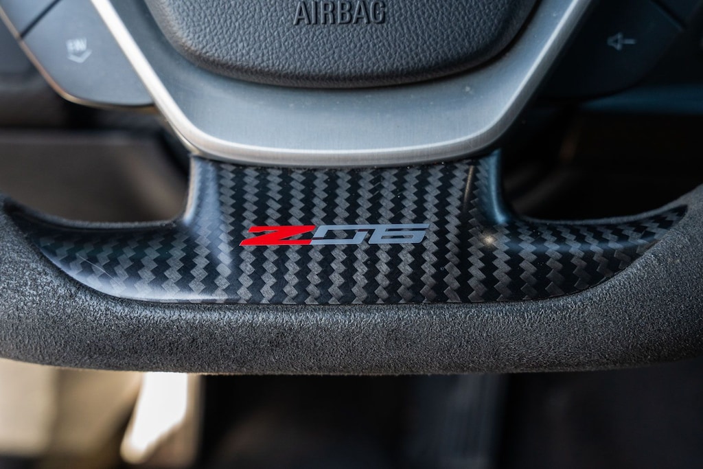 This vehicle comes equipped with Battery Protection Package, Carbon Flash Full Length Dual Racing Stripe Package, Custom Leather Wrapped Interior Package, Memory Package, Preferred Equipment Group 3LZ (Auto-Dimming Inside Frameless Rearview Mirror, Body-Color Outside Heated Power-Adjustable Mirrors, Bose Advanced 10-Speaker Audio System Feature, Cargo Net, Front Curb View Cameras, Head-Up Display, Heated & Vented Driver & Front Passenger Seats, Luggage Shade, Performance Data & Video Recorder, Power Lumbar/Bolster Seat Adjusters, Radio: Chevrolet Infotainment System w/Navigation, SiriusXM Radio, Theft Deterrent System, and Universal Home Remote), Sueded Microfiber-Wrapped Interior Trim Package, Visible Carbon Fiber Ground Effects Package, Z07 Performance Package (4-Wheel Antilock 4-Wheel Disc Ceramic Brakes and Z07 Suspension w/Magnetic Selective Ride Control), 2.41 Limited-Slip Rear Axle Ratio, 4-Wheel Disc Brakes, 8-Way Driver & Passenger Seat Adjusters, 9 Speakers, ABS brakes, Adaptive suspension, Air Conditioning, Alloy wheels, AM/FM radio: SiriusXM, Apple CarPlay/Android Auto, Automatic temperature control, Bose Premium 9-Speaker Audio System Feature, Bumpers: body-color, Carbon Fiber Instrument Panel Interior Trim, Compass, Delay-off headlights, Driver door bin, Driver vanity mirror, Dual front impact airbags, Dual front side impact airbags, Electronic Stability Control, Emergency communication system, Exterior Parking Camera Rear, Four wheel independent suspension, Front anti-roll bar, Front Bucket Seats, Front Center Armrest, Front dual zone A/C, Front License Plate Bracket, Front reading lights, Fully automatic headlights, GT Bucket Seats, Heads-Up Display, Heated door mirrors, High-Intensity Discharge Headlights, Illuminated entry, Leather Shift Knob, Leather steering wheel, Low tire pressure warning, Occupant sensing airbag, Outside temperature display, Painted Body-Color Carbon Fiber Removable Roof Panel, Panic alarm, Passenger door bin, Passenger vanity mirror, Power door mirrors, Power driver seat, Power passenger seat, Power steering, Power windows, Radio data system, Rear anti-roll bar, Rear window defroster, Remote keyless entry, Remote Vehicle Starter System, Speed control, Speed-sensing steering, Spoiler, Sport steering wheel, Steering wheel mounted audio controls, Sueded Microfiber-Wrapped 3-Spoke Steering Wheel, Tachometer, Telescoping steering wheel, Tilt steering wheel, Traction control, Trip computer, Variably intermittent wipers, Visible Carbon Fiber Removable Roof Panel, Voltmeter, Wheels: 19" x 10" Fr & 20" x 12" Rr Z06 Black Alum, and Wheels: 19" x 10" Fr & 20" x 12" Rr Z06 Pearl.