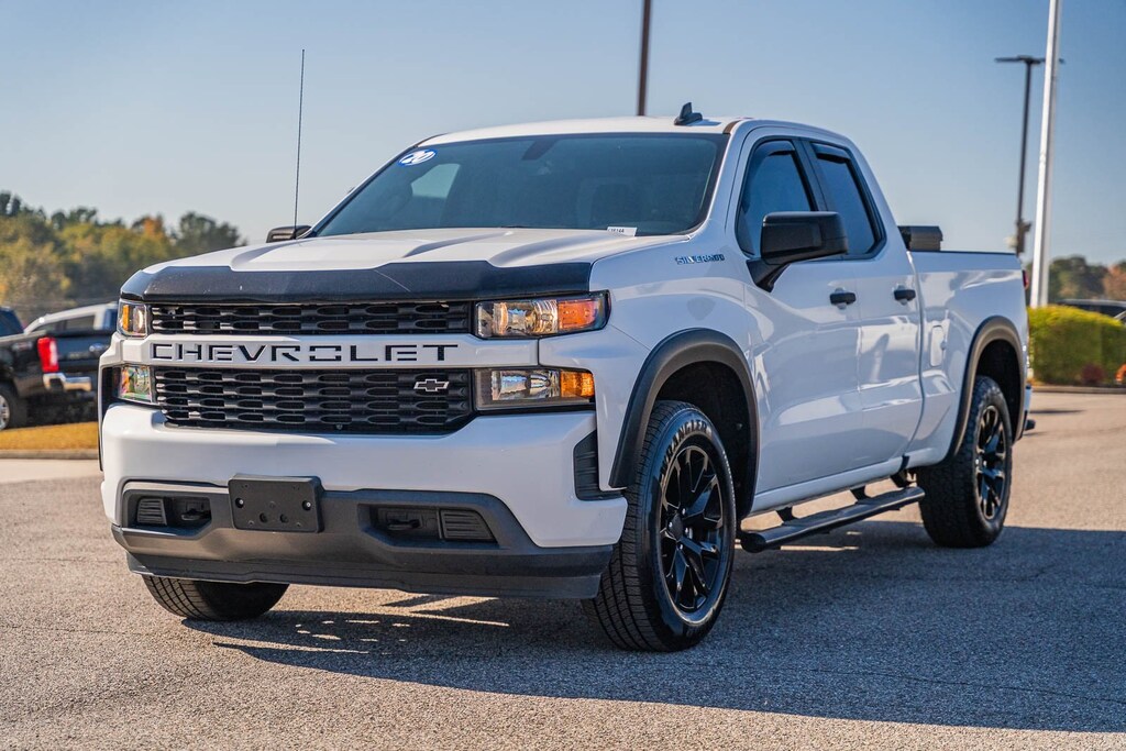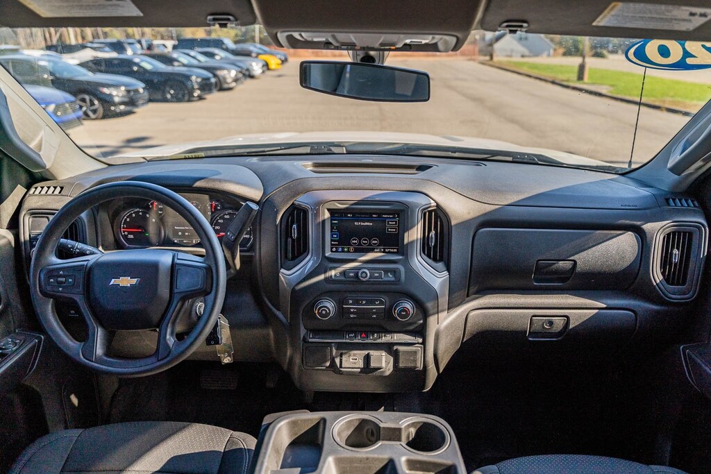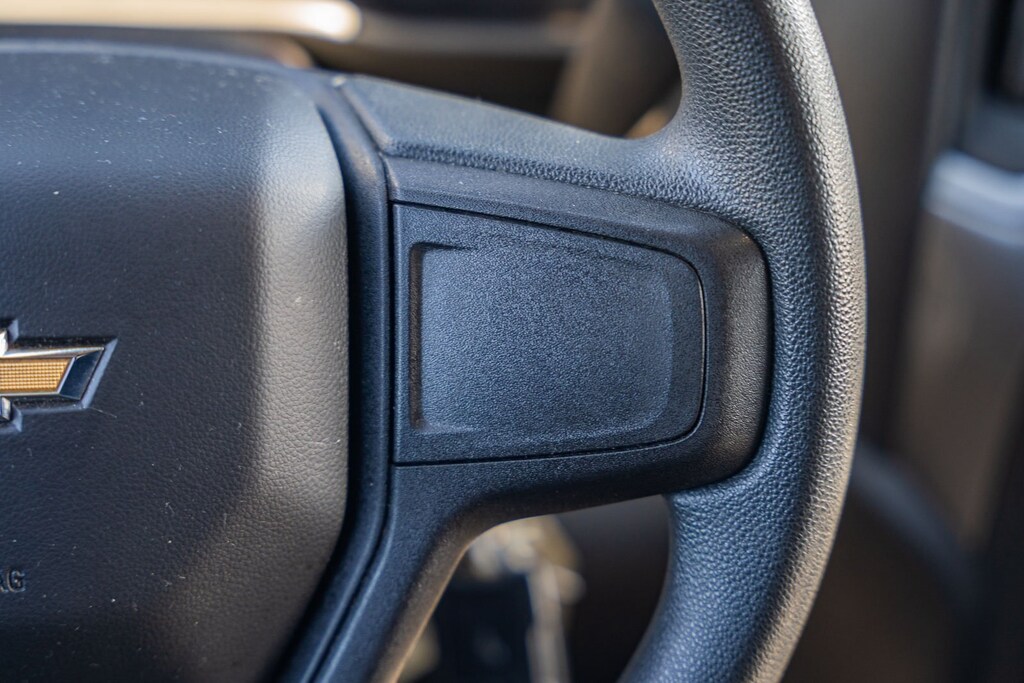 This vehicle comes equipped with Custom Convenience Package (Electric Rear-Window Defogger, EZ Lift Power Lock & Release Tailgate, LED Cargo Area Lighting, Remote Vehicle Starter System, and Theft Deterrent System (Unauthorized Entry)), Custom Value Package, Infotainment Package (4G LTE Wi-Fi Hot Spot Capable, Chevrolet Connected Access Capable, Compass, OnStar & Chevrolet Connected Services Capable, and SiriusXM Radio), Preferred Equipment Group 1CX (170 Amps Alternator, 3.5" Diagonal Monochromatic Display, Bluetooth® For Phone, Body Color Grille, Color-Keyed Carpeting Floor Covering, Deep-Tinted Glass, Front Frame-Mounted Black Recovery Hooks, Front Rubberized Vinyl Floor Mats, Locking Tailgate, Manual Tilt-Wheel Steering Column, Power Door Locks, Power Front Windows w/Driver Express Up/Down, Power Front Windows w/Passenger Express Down, Power Rear Windows w/Express Down, Rear 60/40 Folding Bench Seat (Folds Up), Rear Rubberized-Vinyl Floor Mats, Remote Keyless Entry, and Steering Wheel Mounted Electronic Cruise Control), Trailering Package (Hitch Guidance), 6-Speed Automatic Electronic with Overdrive, Black Cloth, 3.42 Rear Axle Ratio, 4-Wheel Disc Brakes, 6 Speakers, ABS brakes, Air Conditioning, Alloy wheels, Apple CarPlay/Android Auto, Brake assist, Bumpers: body-color, Cloth Seat Trim, Delay-off headlights, Driver door bin, Driver vanity mirror, Dual front impact airbags, Dual front side impact airbags, Electronic Stability Control, Exterior Parking Camera Rear, Front 40/20/40 Split-Bench Seat, Front anti-roll bar, Front Black Bowtie Emblem (LPO), Front Center Armrest, Front License Plate Kit, Front reading lights, Front wheel independent suspension, Fully automatic headlights, Heated door mirrors, Heavy Duty Suspension, Heavy-Duty Rear Locking Differential, Illuminated entry, Low tire pressure warning, Occupant sensing airbag, Outside temperature display, Overhead airbag, Overhead console, Panic alarm, Passenger door bin, Passenger vanity mirror, Polished Exhaust Tip, Power door mirrors, Power steering, Power windows, Radio data system, Radio: Chevrolet Infotainment 3 System, Rear reading lights, Rear step bumper, Remote keyless entry, Speed control, Speed-sensing steering, Split folding rear seat, Tachometer, Tilt steering wheel, Traction control, Trip computer, Variably intermittent wipers, Voltmeter, and Wheels: 20" x 9" Bright Silver Painted Aluminum.