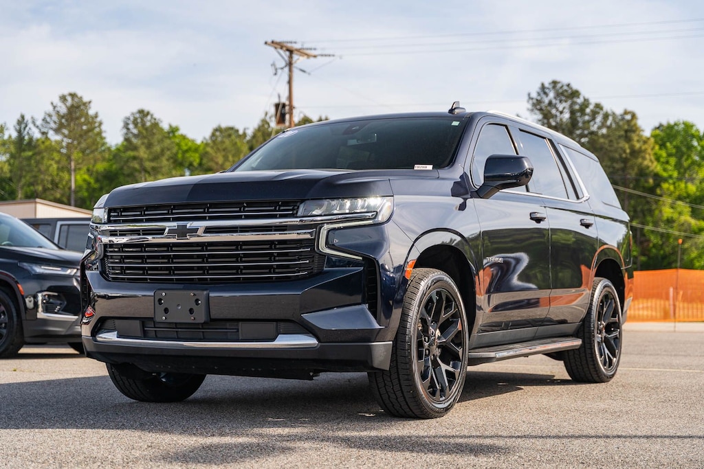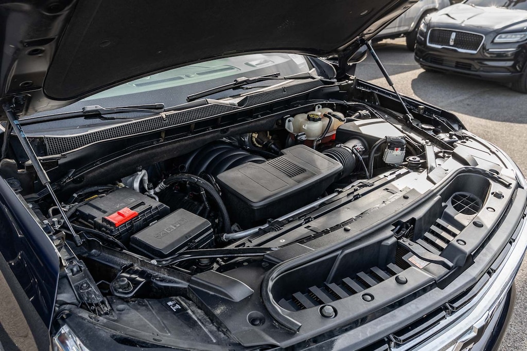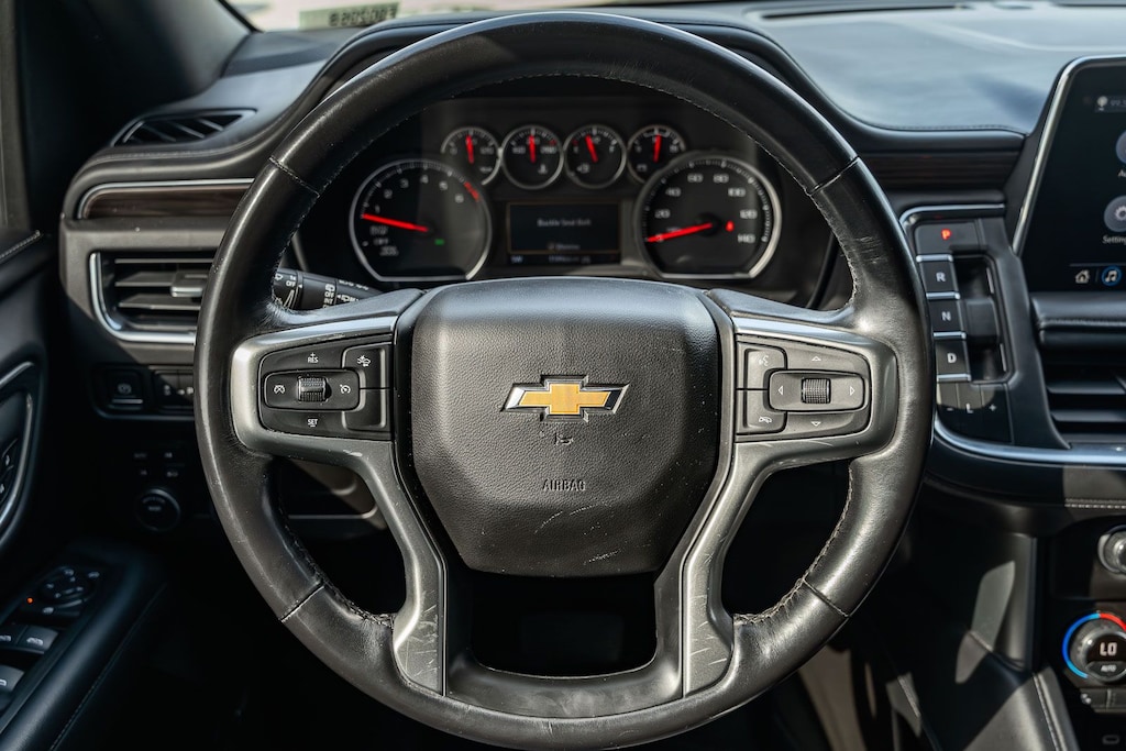 This vehicle comes equipped with License Plate Front Mounting Package, Preferred Equipment Group 1LT (1st & 2nd Row Color-Keyed Carpeted Floor Mats, 2 USB Data Ports, Auto-Dimming Inside Rear-View Mirror, Bright Front & Rear Door Sill Plates, Color-Keyed Carpeting Floor Covering, Driver & Front Outboard Passenger Airbags, Floor Console w/Storage Area, Hands-Free Rear Power Programmable Liftgate, HD Radio, Infotainment Display, Leather-Wrapped Steering Wheel, LED Daytime Running Lamps, Memory Settings for Driver, Remote Start, SiriusXM Radio w/360L, and Universal Home Remote), Ford Blue Certified Eligible Certified, 4WD, Jet Black Leather, 10-Way Power Driver & Passenger Seat Adjusters, 2nd Row Manual Bucket Seats, 3.23 Rear Axle Ratio, 3rd row seats: split-bench, 4-Wheel Disc Brakes, 9 Speakers, ABS brakes, Air Conditioning, Alloy wheels, AM/FM radio: SiriusXM with 360L, Apple CarPlay/Android Auto, Auto High-beam Headlights, Auto-dimming Rear-View mirror, Automatic temperature control, Bose 9-Speaker Stereo Audio System Feature, Brake assist, Bumpers: body-color, Compass, Delay-off headlights, Driver door bin, Driver vanity mirror, Dual front impact airbags, Dual front side impact airbags, Electronic Stability Control, Emergency communication system: OnStar and Chevrolet connected services capable, Four wheel independent suspension, Front anti-roll bar, Front Bucket Seats, Front Center Armrest, Front dual zone A/C, Front High-Back Reclining Bucket Seats, Front reading lights, Fully automatic headlights, Garage door transmitter, Heated door mirrors, Heated Driver & Front Passenger Seats, Heated front seats, Illuminated entry, Leather Seat Trim, Leather steering wheel, Low tire pressure warning, Memory seat, Occupant sensing airbag, Outside temperature display, Overhead airbag, Overhead console, Panic alarm, Passenger door bin, Passenger vanity mirror, Power door mirrors, Power driver seat, Power Liftgate, Power passenger seat, Power steering, Power windows, Premium audio system: Chevrolet Infotainment 3, Premium Smooth Ride Suspension, Radio: Chevrolet Infotainment 3 Plus System, Rain sensing wipers, Rear air conditioning, Rear anti-roll bar, Rear reading lights, Rear seat center armrest, Rear window defroster, Rear window wiper, Remote keyless entry, Roof rack: rails only, Security system, Speed control, Speed-sensing steering, Split folding rear seat, Spoiler, Steering wheel mounted audio controls, Tachometer, Telescoping steering wheel, Tilt steering wheel, Traction control, Trip computer, Variably intermittent wipers, Voltmeter, and Wheels: 18" x 8.5" Bright Silver Painted Aluminum.