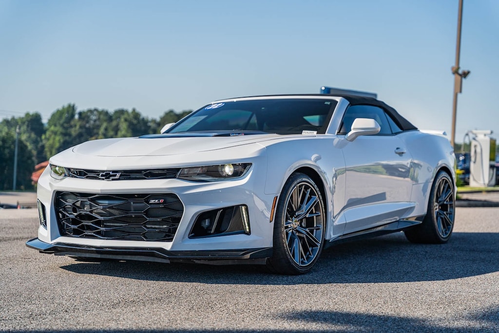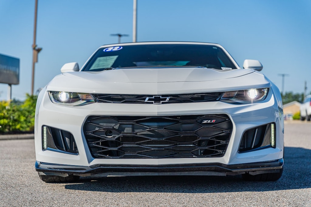 This vehicle comes equipped with Preferred Equipment Group ZL1 (Rear Park Assist), Camaro ZL1, 6.2L V8 Supercharged, 6-Speed Manual, 4-Wheel Disc Brakes, 6-Way Power Front Passenger Seat Adjuster, 7 Speakers, 8-Way Power Driver Seat Adjuster, ABS brakes, Adaptive suspension, Air Conditioning, Alloy wheels, AM/FM radio: SiriusXM with 360L, Apple CarPlay/Android Auto, Auto-dimming door mirrors, Automatic temperature control, Black Fuel Filler Door (LPO), Black Metallic Center Stripe, Bluetooth® For Phone, Bose Premium 7-Speaker Audio System Feature, Brake assist, Brembo 4-Wheel Performance Disc Brakes, Bumpers: body-color, Carbon Fiber Instrument Panel Molding, Compass, Convertible roof lining, Delay-off headlights, Driver door bin, Driver vanity mirror, Dual front impact airbags, Dual front side impact airbags, Electronic Stability Control, Exterior Parking Camera Rear, Four wheel independent suspension, Front anti-roll bar, Front Bucket Seats, Front Center Armrest, Front dual zone A/C, Front reading lights, Fully automatic headlights, Glass rear window, Heads-Up Display, Heated door mirrors, Heated Driver & Front Passenger Seats, Heated front seats, Heated steering wheel, High-Intensity Discharge Headlights, Illuminated entry, Knee airbag, Leather-Trimmed Seat Trim w/Sueded Inserts, Low tire pressure warning, Memory seat, Occupant sensing airbag, Outside temperature display, Panic alarm, Passenger door bin, Passenger vanity mirror, Power convertible roof, Power door mirrors, Power driver seat, Power passenger seat, Power steering, Power windows, Premium audio system: Chevrolet Infotainment System, Premium Carpeted Floor Mats w/ZL1 Logo (LPO), Radio data system, Radio: Chevrolet Infotainment 3 Plus System, Radio: Chevrolet Infotainment 3 Premium System, Rear anti-roll bar, Rear window defroster, RECARO Performance Front Bucket Seats, Red Knee Pads, Red Seat Belt Color, Remote keyless entry, Security system, SiriusXM w/360L, Speed control, Speed-sensing steering, Spoiler, Sport steering wheel, Steering wheel mounted audio controls, Tachometer, Telescoping steering wheel, Tilt steering wheel, Tire Inflation Kit, Traction control, Trip computer, Variably intermittent wipers, Ventilated Driver & Front Passenger Seats, Ventilated front seats, Voltmeter, and Wheels: 20" x 10" Fr & 20" x 11" Rr Dark Graphite.