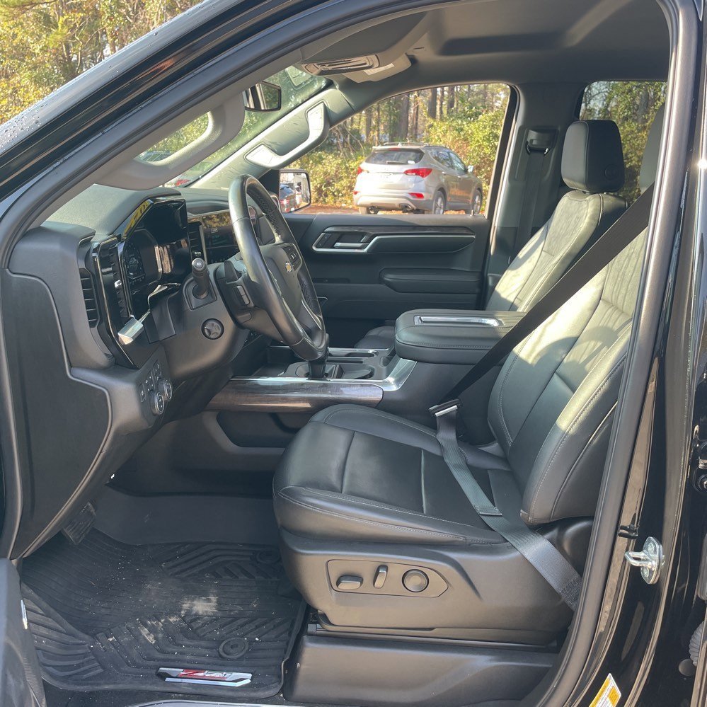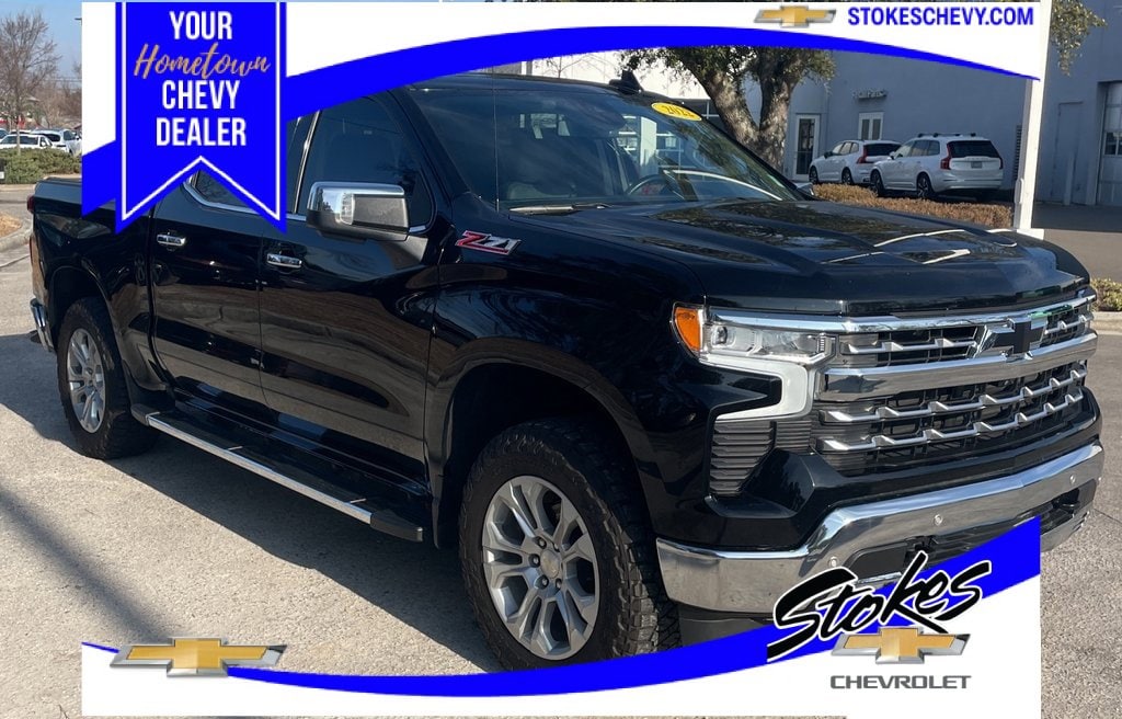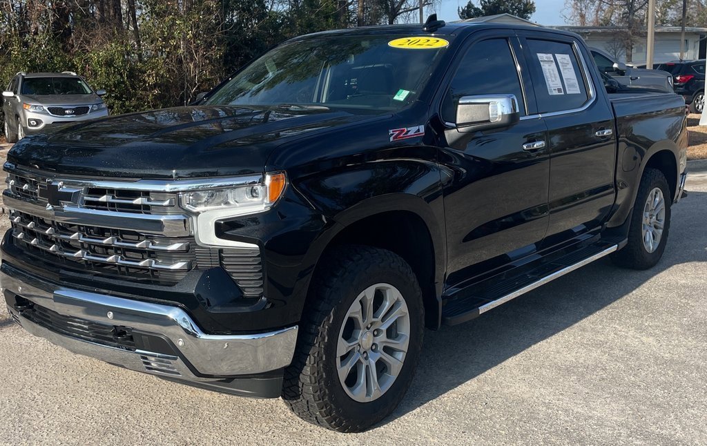 NAVIGATION SYSTEM, BACKUP CAMERA, AGGRESSIVE PRICING, ALLOY WHEELS, BLUETOOTH, CLIMATE PACKAGE, HEAT PACKAGE, LEATHER SEATS, MEMORY PACKAGE, POWER PACKAGE, REMOTE START, TOW PACKAGE, APPLE CAR PLAY, ANDROID AUTO, 10-Speed Automatic, 4WD, Jet Black Leather, Dual Exhaust w/Polished Outlets, Heavy-Duty Air Filter, High Capacity Suspension Package, Hill Descent Control, Hitch Guidance, LTZ Convenience Package, LTZ Plus Package, Off-Road Suspension, Safety Package, Trailering Package, Z71 Off-Road Package. Black 2022 Chevrolet Silverado 1500 LTZ 4WD 10-Speed Automatic EcoTec3 5.3L V8
