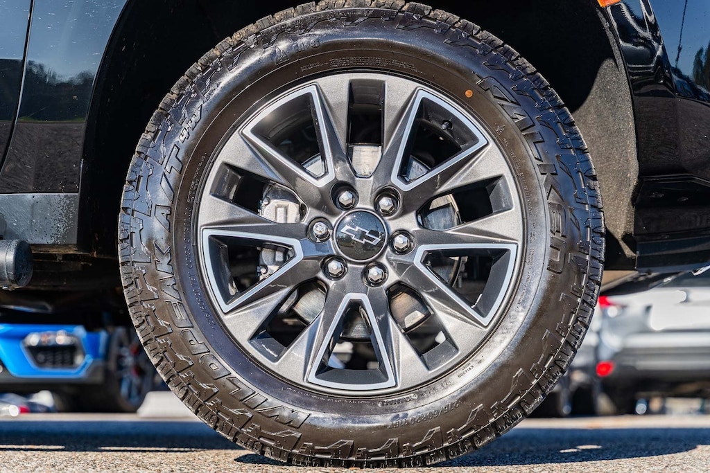 This vehicle comes equipped with Driver Alert Package (Lane Change Alert w/Side Blind Zone Alert and Rear Cross Traffic Alert), Luxury Package (2nd Row Pwr Release 60/40 Split-Folding Bench Seat, 3rd Row 60/40 Power-Folding Split-Bench Seat, HD Surround Vision, Heated 2nd Row Outboard Seats, Heated Steering Wheel, Memory Settings, Outside Heated Power-Adjustable Mirrors, Power Tilt & Telescopic Steering Column, and Rear Pedestrian Alert), Preferred Equipment Group 2Z7 (1st & 2nd Row Color-Keyed Carpeted Floor Mats, 2-Speed Active Electronic AutoTrac Transfer Case, Auto-Dimming Inside Rear-View Mirror, Automatic Stop/Start, Black Tubular Assist Steps, Bose 9-Speaker Stereo Audio System Feature, Bright Front & Rear Door Sill Plates, Color-Keyed Carpeting Floor Covering, Driver & Front Outboard Passenger Airbags, Enhanced Driver Information Center, Floor Console w/Storage Area, Front High-Approach Angle Fascia, Hands-Free Rear Power Programmable Liftgate, Hill Descent Control, Infotainment Display, Leather-Wrapped Steering Wheel, LED Daytime Running Lamps, Memory Settings for Driver, Red Horizontal-Mounted Recovery Hooks, Remote Start, SiriusXM Radio w/360L, Start/Stop System Disable Button, Universal Home Remote, and Wireless Charging), 4WD, Black Leather, 10-Way Power Driver & Passenger Seat Adjusters, 3.23 Rear Axle Ratio, 3rd row seats: split-bench, 4-Wheel Disc Brakes, 9 Speakers, ABS brakes, Air Conditioning, Alloy wheels, AM/FM radio: SiriusXM with 360L, Apple CarPlay/Android Auto, Auto High-beam Headlights, Auto-dimming Rear-View mirror, Automatic temperature control, Brake assist, Bumpers: body-color, Compass, Delay-off headlights, Driver door bin, Driver vanity mirror, Dual front impact airbags, Dual front side impact airbags, Dual-Pane Power Panoramic Sunroof, Electronic Stability Control, Emergency communication system: OnStar and Chevrolet connected services capable, Four wheel independent suspension, Front anti-roll bar, Front Bucket Seats, Front Center Armrest, Front dual zone A/C, Front High-Back Reclining Bucket Seats, Front reading lights, Fully automatic headlights, Garage door transmitter, Heated door mirrors, Heated Driver & Front Passenger Seats, Heated front seats, Illuminated entry, Leather steering wheel, Leather-Appointed Seat Trim, Low tire pressure warning, Memory seat, Navigation System, Not Equipped w/Heated Steering Wheel (DISC), Not Equipped w/Steering Column Lock, Occupant sensing airbag, Outside temperature display, Overhead airbag, Overhead console, Panic alarm, Passenger door bin, Passenger vanity mirror, Power door mirrors, Power driver seat, Power Liftgate, Power passenger seat, Power Release 2nd Row Bucket Seats, Power steering, Power windows, Premium audio system: Chevrolet Infotainment System 3, Premium Smooth Ride Suspension, Radio: Chevrolet Infotainment 3 Premium System, Rain sensing wipers, Rear air conditioning, Rear anti-roll bar, Rear reading lights, Rear seat center armrest, Rear window defroster, Rear window wiper, Remote keyless entry, Roof rack: rails only, Security system, Speed control, Speed-sensing steering, Split folding rear seat, Spoiler, Steering wheel mounted audio controls, Tachometer, Telescoping steering wheel, Tilt steering wheel, Traction control, Trip computer, Variably intermittent wipers, Voltmeter, and Wheels: 20" x 9" Machined Aluminum.