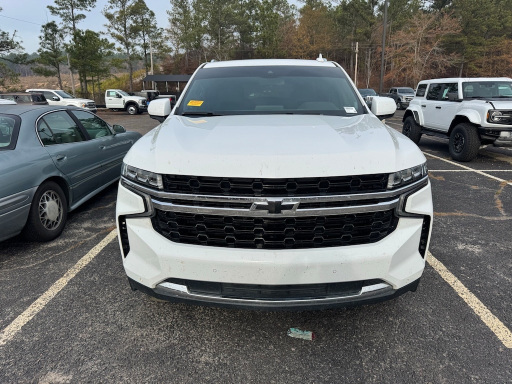 This vehicle comes equipped with License Plate Front Mounting Package, Preferred Equipment Group 1LS (1st & 2nd Row Color-Keyed Carpeted Floor Mats, Color-Keyed Carpeting Floor Covering, Driver & Front Outboard Passenger Airbags, Floor Console w/Storage Area, LED Daytime Running Lamps, Remote Start, SiriusXM Radio w/360L, and Wrapped Steering Wheel), Jet Black Cloth, 3.23 Rear Axle Ratio, 3rd row seats: split-bench, 4-Wheel Disc Brakes, 6 Speakers, 6-Speaker Audio System Feature, ABS brakes, Air Conditioning, Alloy wheels, AM/FM radio: SiriusXM with 360L, Apple CarPlay/Android Auto, Auto High-beam Headlights, Automatic temperature control, Black Name Plates (LPO), Brake assist, Bumpers: body-color, Compass, Delay-off headlights, Driver door bin, Driver vanity mirror, Dual front impact airbags, Dual front side impact airbags, Electronic Stability Control, Emergency communication system: OnStar and Chevrolet connected services capable, Four wheel independent suspension, Front & Rear Black Bowtie Emblems (LPO), Front anti-roll bar, Front Bucket Seats, Front Center Armrest, Front dual zone A/C, Front High-Back Reclining Bucket Seats, Front reading lights, Fully automatic headlights, Heated door mirrors, Illuminated entry, Infotainment Display, Low tire pressure warning, Occupant sensing airbag, Outside temperature display, Overhead airbag, Overhead console, Panic alarm, Passenger door bin, Passenger vanity mirror, Power door mirrors, Power driver seat, Power passenger seat, Power steering, Power windows, Premium Cloth Seat Trim, Premium Smooth Ride Suspension, Radio: Chevrolet Infotainment 3 System, Rain sensing wipers, Rear air conditioning, Rear anti-roll bar, Rear reading lights, Rear seat center armrest, Rear window defroster, Rear window wiper, Remote keyless entry, Roof rack: rails only, Security system, Speed control, Speed-sensing steering, Split folding rear seat, Spoiler, Steering wheel mounted audio controls, Tachometer, Telescoping steering wheel, Tilt steering wheel, Traction control, Trip computer, Variably intermittent wipers, Voltmeter, Wheels: 18" x 8.5" Bright Silver Painted Aluminum, Wheels: 22" Multi-Spoke Gloss Black (LPO) (SRV), and Wheels: 22" x 9" Steel Interim (LPO).