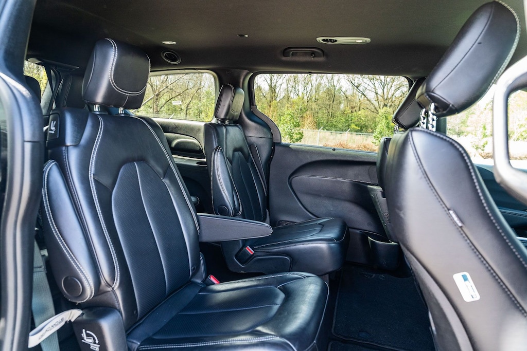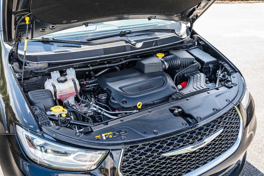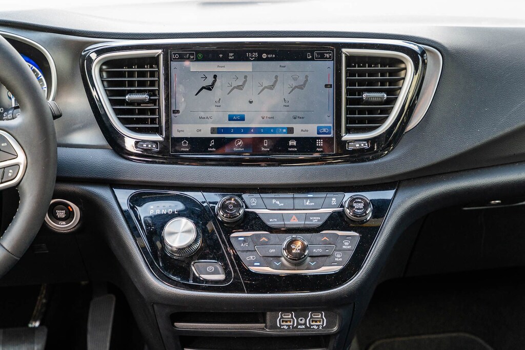 This Pacifica Select includes Quick Order Package 27L, 10.1" Touchscreen Display, 17" x 7.0" Aluminum Wheels, 3.25 Axle Ratio, 3rd row seats: split-bench, 4-Wheel Disc Brakes, 4G LTE Wi-Fi Hot Spot, 6 Speakers, ABS brakes, Air Conditioning, Alloy wheels, AM/FM radio: SiriusXM, Apple CarPlay, Apple CarPlay/Android Auto, Auto-dimming Rear-View mirror, Automatic temperature control, Black Seats, Brake assist, Bumpers: body-color, Caprice Leatherette Bucket Seats, Compass, Delay-off headlights, Disassociated Touchscreen Display, Driver door bin, Driver vanity mirror, Driver's Seat Mounted Armrest, Dual front impact airbags, Dual front side impact airbags, Electronic Stability Control, Emergency communication system: Chrysler Connect, For Details, Visit DriveUconnect.com, Four wheel independent suspension, Front anti-roll bar, Front Bucket Seats, Front dual zone A/C, Front Fascia Air Deflectors, Front fog lights, Front reading lights, Fully automatic headlights, Garage door transmitter, Google Android Auto, GPS Antenna Input, Heated door mirrors, Heated front seats, Heated steering wheel, Illuminated entry, Integrated Active Noise Cancellation, Integrated Center Stack Radio, Knee airbag, Low tire pressure warning, Manufacturer's Statement of Origin, Memory seat, Occupant sensing airbag, Outside temperature display, Overhead airbag, Overhead console, Panic alarm, ParkView Rear Back-Up Camera, Passenger door bin, Passenger seat mounted armrest, Passenger vanity mirror, Power door mirrors, Power driver seat, Power Liftgate, Power steering, Power windows, Radio data system, Radio: Uconnect 5 with 10.1" Display, Rain sensing wipers, Rear air conditioning, Rear reading lights, Rear window defroster, Rear window wiper, Reclining 3rd row seat, Remote keyless entry, Security system, SiriusXM Guardian - Included Trial (B), Speed control, Split folding rear seat, Spoiler, Steering wheel mounted audio controls, Tachometer, Telescoping steering wheel, Tilt steering wheel, Touring Suspension, Traction control, Trip computer, Turn signal indicator mirrors, USB Host Flip, Variably intermittent wipers, and Voltmeter . While every effort has been made to ensure display of accurate data, the vehicle listings within this web site may not reflect all accurate vehicle items. All Inventory listed is subject to prior sale. The vehicle photo displayed may be an example only. Pricing throughout the web site does not include any options that may have been installed at the dealership. Please see the dealer for details. Vehicles may be in transit or currently in production. Some vehicles are shown with optional equipment. See the actual vehicle for complete accuracy of features, options & pricing. Because of the numerous possible combinations of vehicle models, styles, colors and options, the vehicle pictures on this site may not match your vehicle exactly; however, it will match as closely as possible. Some vehicle images shown are stock photos and may not reflect your exact choice of vehicle, color, trim and specification. Not responsible for pricing or typographical errors. Virtual Inventory, Available Configurations and In-Transit inventory contains vehicles that have not actually been manufactured. These vehicles show consumers sample vehicles that may be available. Pricing, Options, Color, and other data pertaining to these vehicles are provided for example only. All information pertaining to these vehicles should be independently verified through the dealer. 19/28 City/Highway MPG