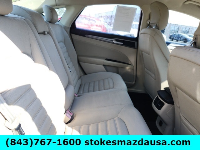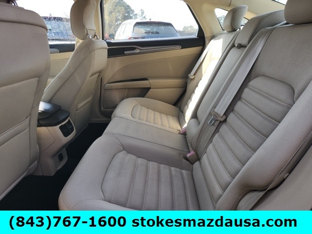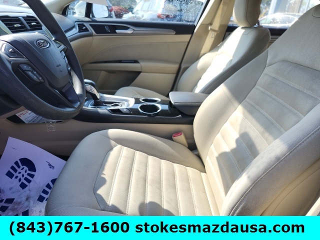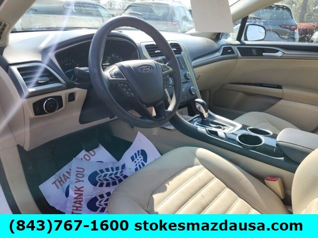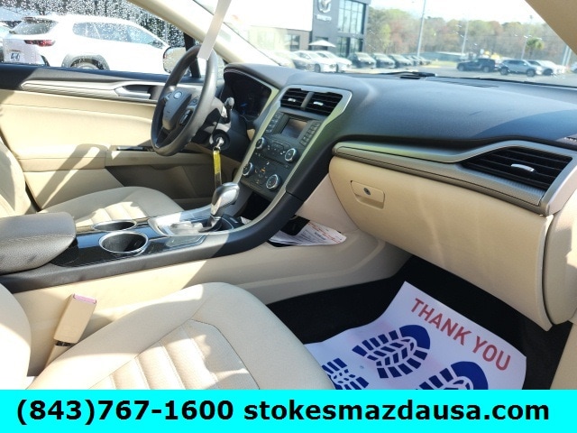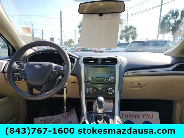 This Fusion comes equipped with a turbocharged EcoBoost 1.6L engine that delivers 173 horsepower while achieving an impressive 26 MPG combined. Enjoy modern conveniences like SYNC with MyFord, Bluetooth wireless audio streaming, power driver seat with lumbar support, remote keyless entry, and rear parking sensors. The SecuriCode keypad entry and capless fuel filler add extra convenience to your daily drive.