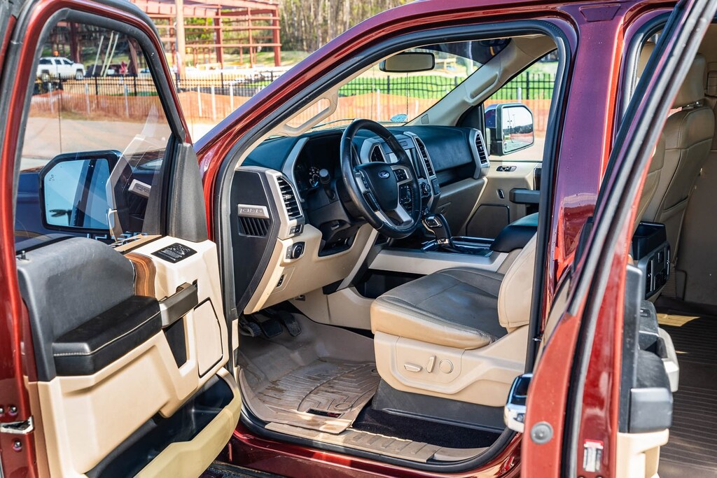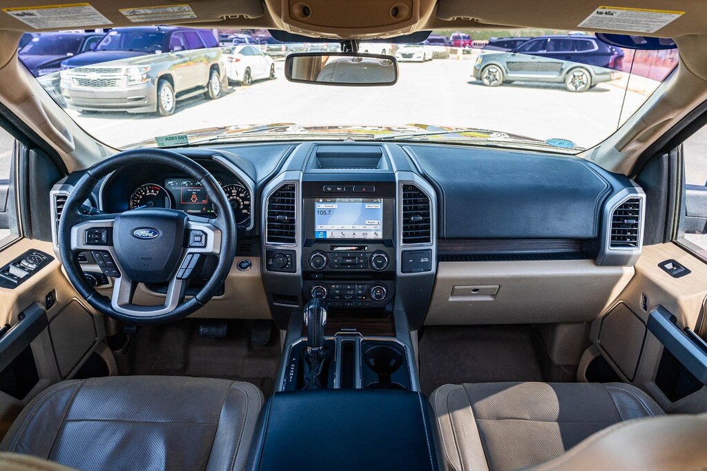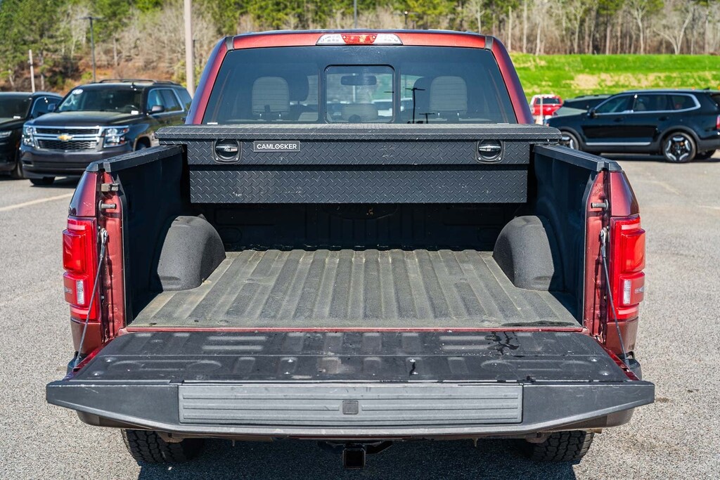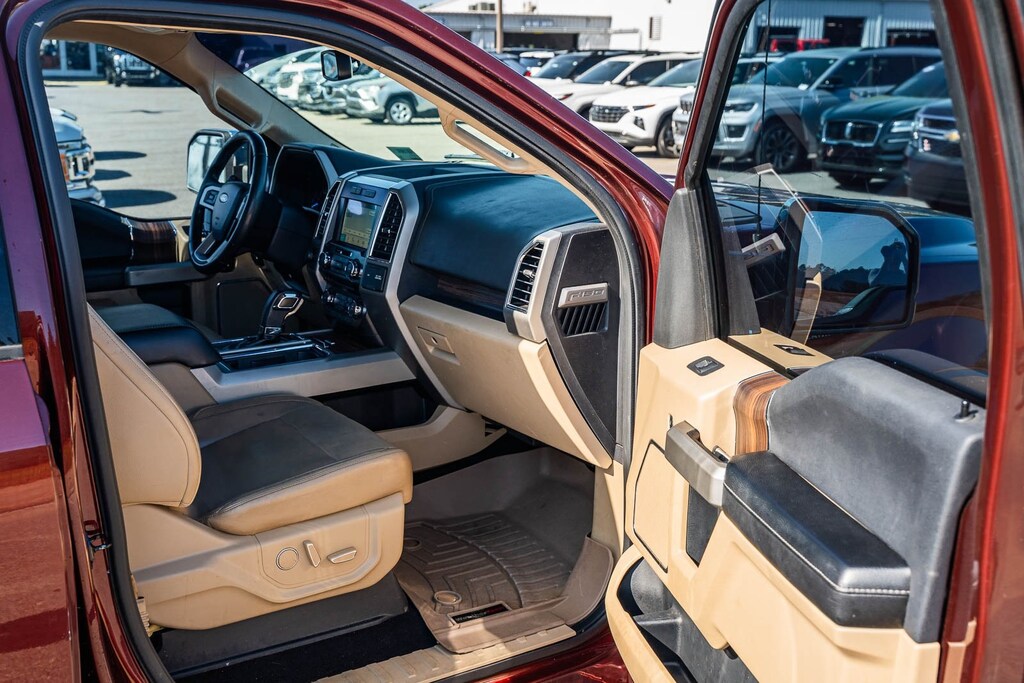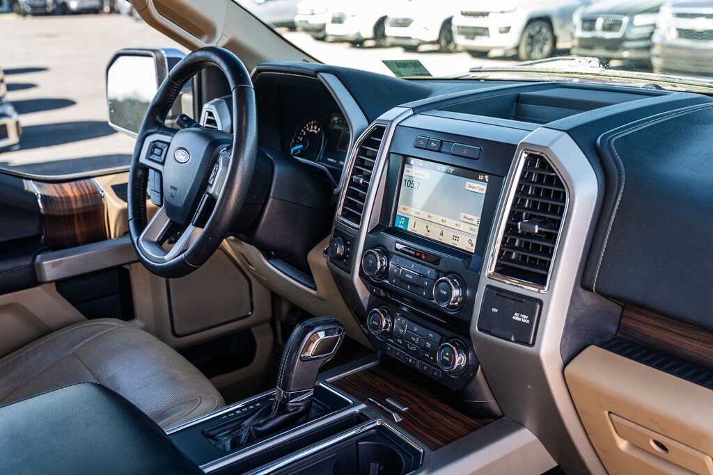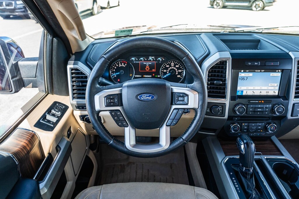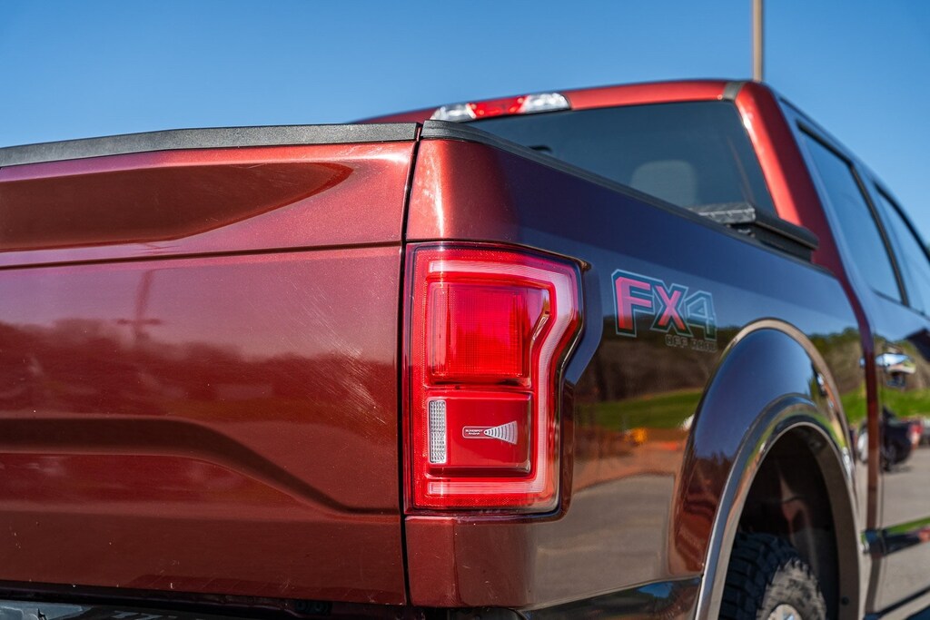 This vehicle comes equipped with Equipment Group 501A Mid (110V/400W Outlet, BLIS Blind Spot Information System, and Reverse Sensing System), FX4 Off-Road Package, Lariat Chrome Appearance Package (Chrome 3-Bar Style Grille w/Chrome Surround, Chrome Angular Step Bars, Chrome Door & Tailgate Handles w/Body-Color Bezel, Chrome Skull Caps on Exterior Mirrors, Single-Tip Chrome Exhaust, and Wheels: 18" Chrome-Like PVD), 4WD, 18" Machined-Aluminum Wheels, 3.31 Axle Ratio, 4-Wheel Disc Brakes, 7 Speakers, ABS brakes, Adjustable pedals, Air Conditioning, All-Weather Rubber Floor Mats, Alloy wheels, AM/FM radio: SiriusXM, Auto-dimming door mirrors, Auto-dimming Rear-View mirror, Automatic temperature control, Brake assist, Bumpers: chrome, CD player, Class IV Trailer Hitch Receiver, Compass, Delay-off headlights, Driver door bin, Driver vanity mirror, Dual front impact airbags, Dual front side impact airbags, Electronic Stability Control, Exterior Parking Camera Rear, Front anti-roll bar, Front Center Armrest w/Storage, Front dual zone A/C, Front fog lights, Front reading lights, Front wheel independent suspension, Fully automatic headlights, Heated door mirrors, Heated front seats, Illuminated entry, Leather-Trimmed 40/20/40 Front Seat, Low tire pressure warning, Memory seat, Occupant sensing airbag, Outside temperature display, Overhead airbag, Overhead console, Panic alarm, Passenger door bin, Passenger vanity mirror, Pedal memory, Power door mirrors, Power driver seat, Power passenger seat, Power steering, Power windows, Radio data system, Radio: Single-CD w/SiriusXM Satellite, Rear reading lights, Rear seat center armrest, Rear step bumper, Rear window defroster, Remote keyless entry, Security system, Speed control, Speed-sensing steering, Split folding rear seat, Spray-In Bedliner (Pre-Installed), Steering wheel mounted audio controls, SYNC 3, Tachometer, Tailgate Step w/Tailgate Lift Assist, Telescoping steering wheel, Tilt steering wheel, Traction control, Trip computer, Turn signal indicator mirrors, Variably intermittent wipers, Ventilated front seats, Voltmeter, and Wheels: 20" Chrome-Like PVD.