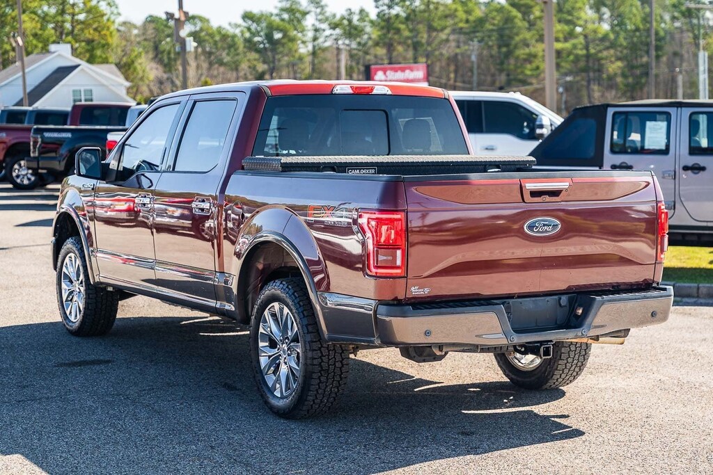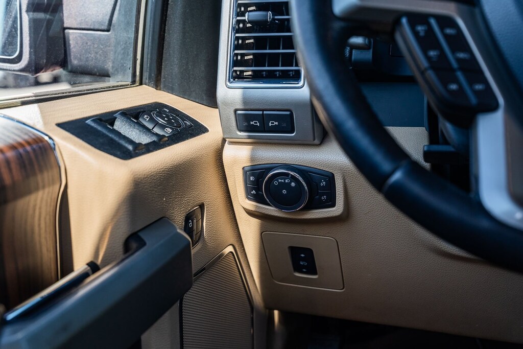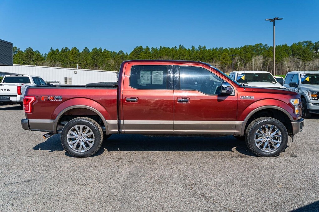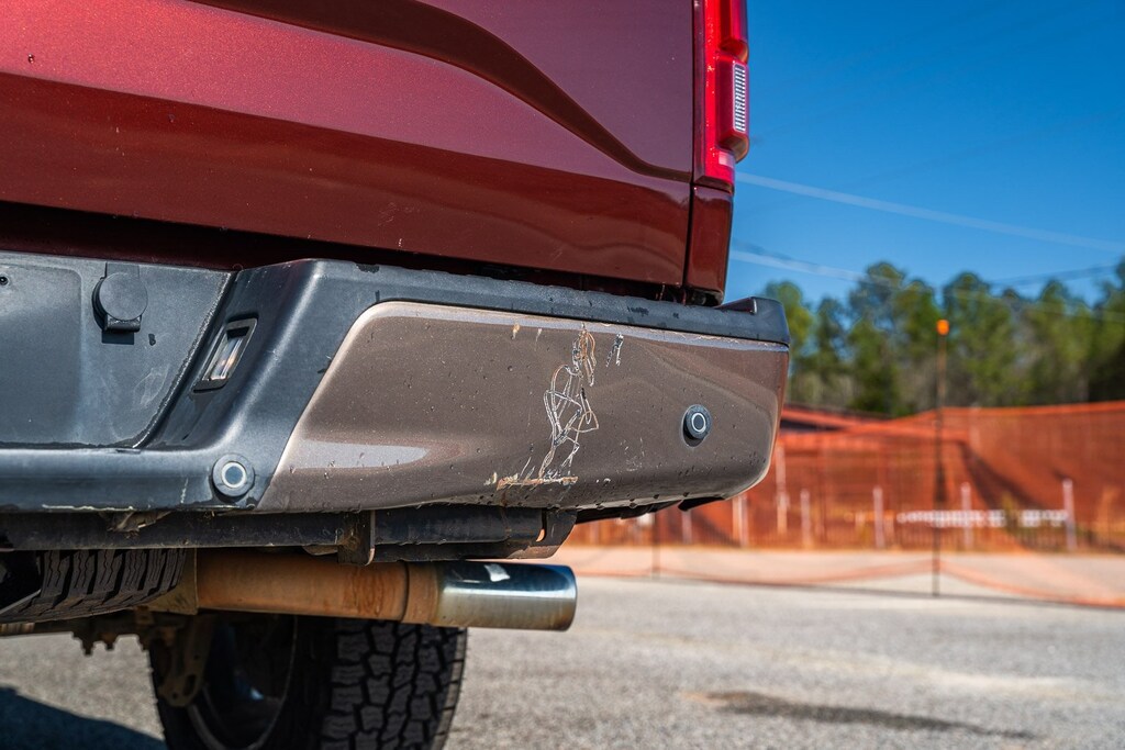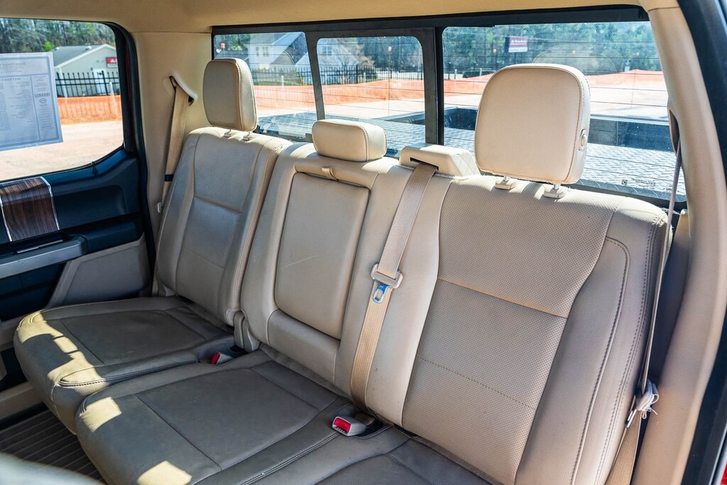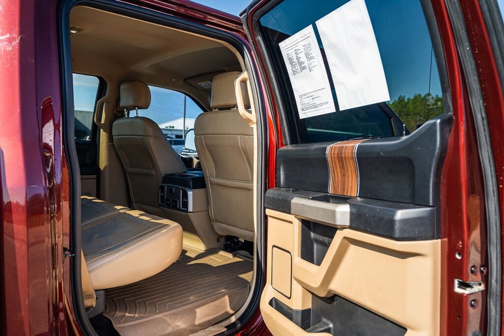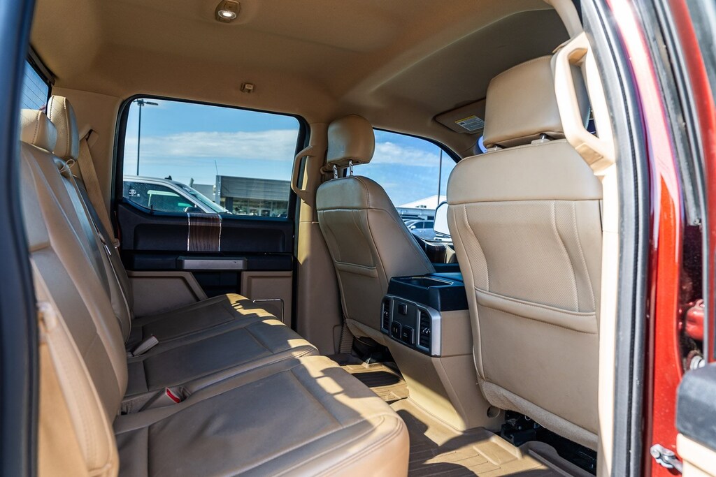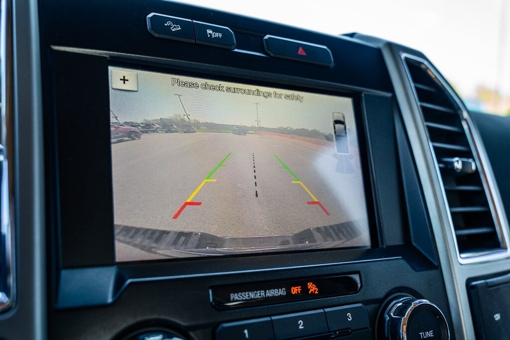 This vehicle comes equipped with Equipment Group 501A Mid (110V/400W Outlet, BLIS Blind Spot Information System, and Reverse Sensing System), FX4 Off-Road Package, Lariat Chrome Appearance Package (Chrome 3-Bar Style Grille w/Chrome Surround, Chrome Angular Step Bars, Chrome Door & Tailgate Handles w/Body-Color Bezel, Chrome Skull Caps on Exterior Mirrors, Single-Tip Chrome Exhaust, and Wheels: 18" Chrome-Like PVD), 4WD, 18" Machined-Aluminum Wheels, 3.31 Axle Ratio, 4-Wheel Disc Brakes, 7 Speakers, ABS brakes, Adjustable pedals, Air Conditioning, All-Weather Rubber Floor Mats, Alloy wheels, AM/FM radio: SiriusXM, Auto-dimming door mirrors, Auto-dimming Rear-View mirror, Automatic temperature control, Brake assist, Bumpers: chrome, CD player, Class IV Trailer Hitch Receiver, Compass, Delay-off headlights, Driver door bin, Driver vanity mirror, Dual front impact airbags, Dual front side impact airbags, Electronic Stability Control, Exterior Parking Camera Rear, Front anti-roll bar, Front Center Armrest w/Storage, Front dual zone A/C, Front fog lights, Front reading lights, Front wheel independent suspension, Fully automatic headlights, Heated door mirrors, Heated front seats, Illuminated entry, Leather-Trimmed 40/20/40 Front Seat, Low tire pressure warning, Memory seat, Occupant sensing airbag, Outside temperature display, Overhead airbag, Overhead console, Panic alarm, Passenger door bin, Passenger vanity mirror, Pedal memory, Power door mirrors, Power driver seat, Power passenger seat, Power steering, Power windows, Radio data system, Radio: Single-CD w/SiriusXM Satellite, Rear reading lights, Rear seat center armrest, Rear step bumper, Rear window defroster, Remote keyless entry, Security system, Speed control, Speed-sensing steering, Split folding rear seat, Spray-In Bedliner (Pre-Installed), Steering wheel mounted audio controls, SYNC 3, Tachometer, Tailgate Step w/Tailgate Lift Assist, Telescoping steering wheel, Tilt steering wheel, Traction control, Trip computer, Turn signal indicator mirrors, Variably intermittent wipers, Ventilated front seats, Voltmeter, and Wheels: 20" Chrome-Like PVD.