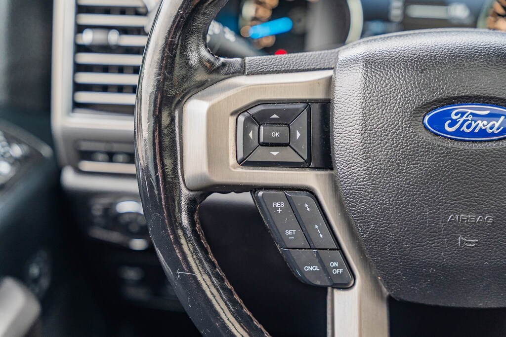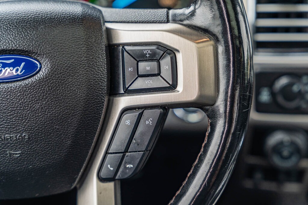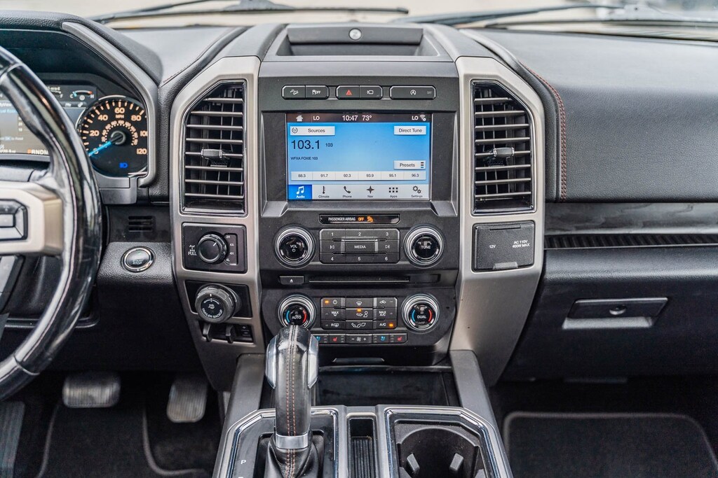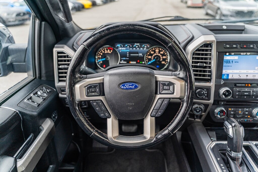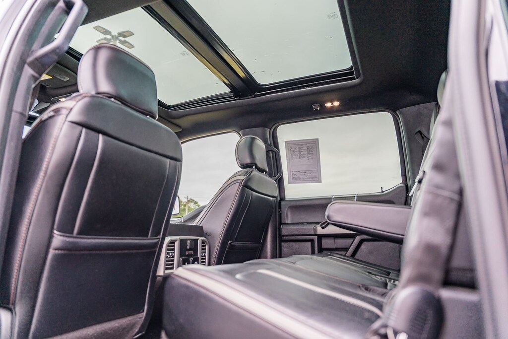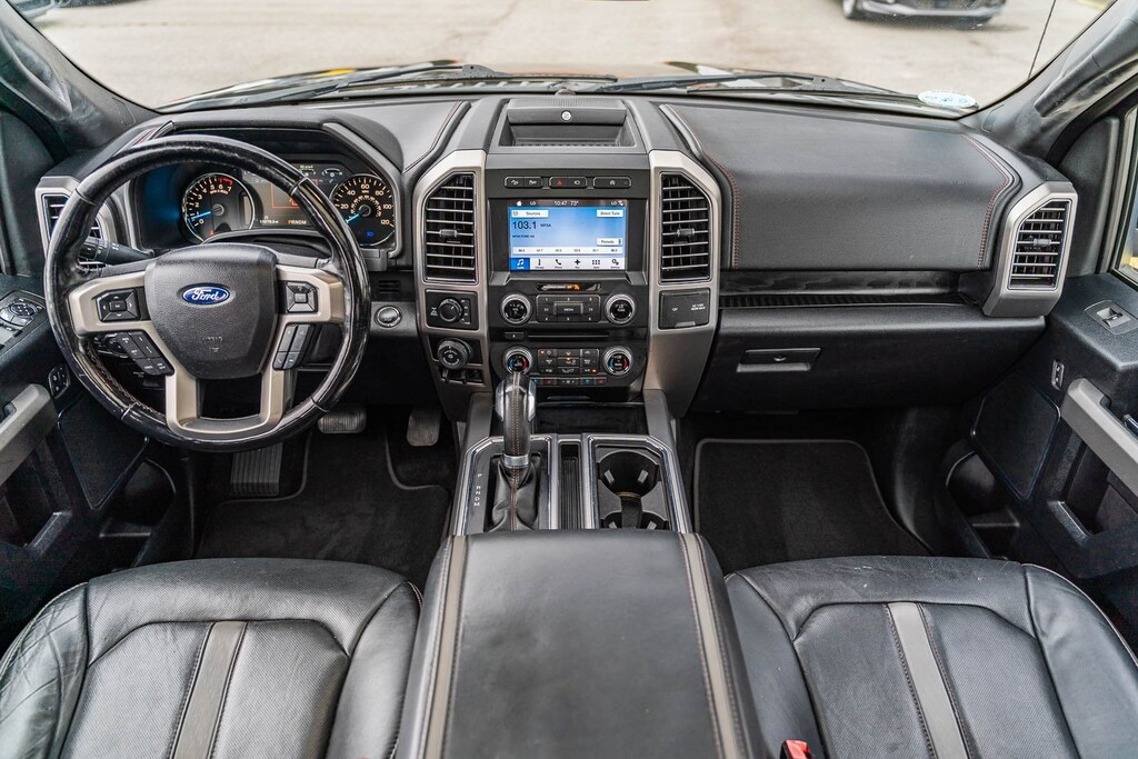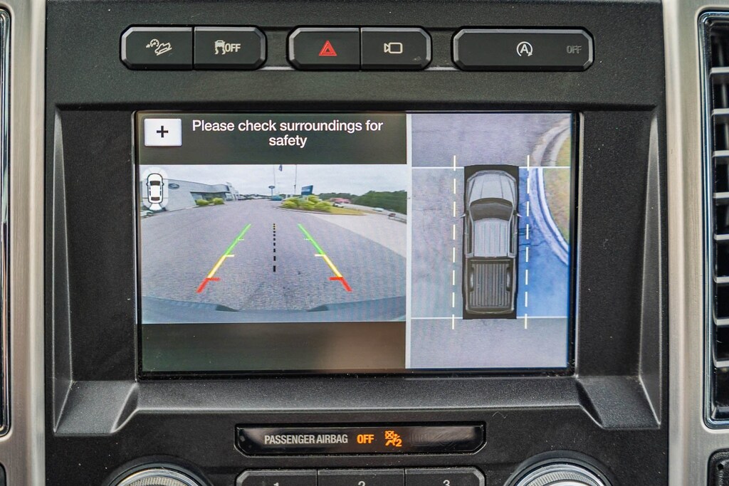 This vehicle comes equipped with Equipment Group 701A Luxury (Adaptive Cruise Control and Tailgate Step w/Tailgate Lift Assist), FX4 Off-Road Package (4x4 FX4 Off-Road Bodyside Decal, Hill Descent Control, and Off-Road Tuned Front Shock Absorbers), GVWR: 7,050 lbs Payload Package, Technology Package (Active Park Assist and Lane-Keeping System), Trailer Tow Package (Class IV Trailer Hitch Receiver, Higher-Capacity Radiator, Higher-Power Cooling Fans, Pro Trailer Backup Assist, and Upgraded Front Stabilizer Bar), 4WD, 10 Speakers, 20" Polished Aluminum Wheels, 3.31 Axle Ratio, 4-Wheel Disc Brakes, ABS brakes, Adjustable pedals, Air Conditioning, All-Weather Rubber Floor Mats, Alloy wheels, AM/FM radio: SiriusXM, AppLink/Apple CarPlay and Android Auto, Auto High-beam Headlights, Auto tilt-away steering wheel, Auto-dimming door mirrors, Auto-dimming Rear-View mirror, Automatic temperature control, Black Unique Multi-Contour Leather Bucket Seats, Brake assist, Bumpers: body-color, CD player, Compass, Delay-off headlights, Driver door bin, Driver vanity mirror, Dual front impact airbags, Dual front side impact airbags, Electronic Stability Control, Emergency communication system: SYNC 3 911 Assist, Exterior Parking Camera Rear, Front anti-roll bar, Front Bucket Seats, Front Center Armrest, Front dual zone A/C, Front fog lights, Front reading lights, Front wheel independent suspension, Fully automatic headlights, Garage door transmitter, Genuine wood door panel insert, Heated door mirrors, Heated front seats, Heated rear seats, Heated steering wheel, Illuminated entry, Integrated Trailer Brake Controller, Low tire pressure warning, Memory seat, Navigation System, Occupant sensing airbag, Outside temperature display, Overhead airbag, Overhead console, Panic alarm, Passenger door bin, Passenger vanity mirror, Pedal memory, Power door mirrors, Power driver seat, Power passenger seat, Power steering, Power windows, Radio data system, Radio: B&O Play Premium Audio System, Rain sensing wipers, Rear Parking Sensors, Rear reading lights, Rear seat center armrest, Rear step bumper, Rear window defroster, Remote keyless entry, Security system, Speed control, Speed-sensing steering, Split folding rear seat, Steering wheel memory, Steering wheel mounted audio controls, SYNC 3, Tachometer, Telescoping steering wheel, Tilt steering wheel, Traction control, Trip computer, Turn signal indicator mirrors, Twin Panel Moonroof, Variably intermittent wipers, Ventilated front seats, Voice-Activated Touchscreen Navigation System, and Voltmeter.