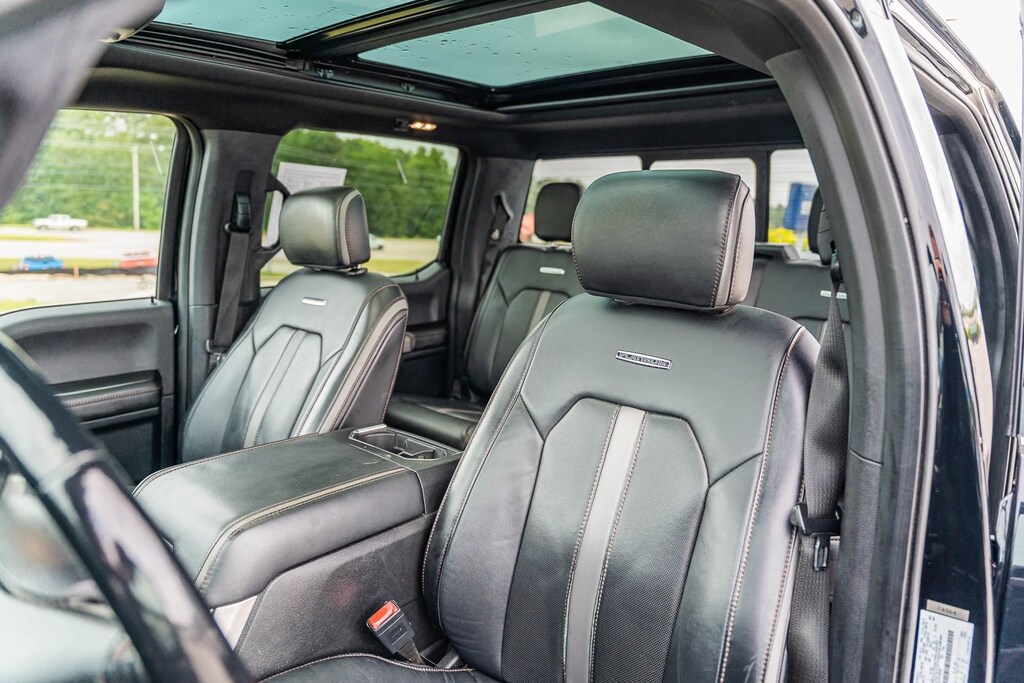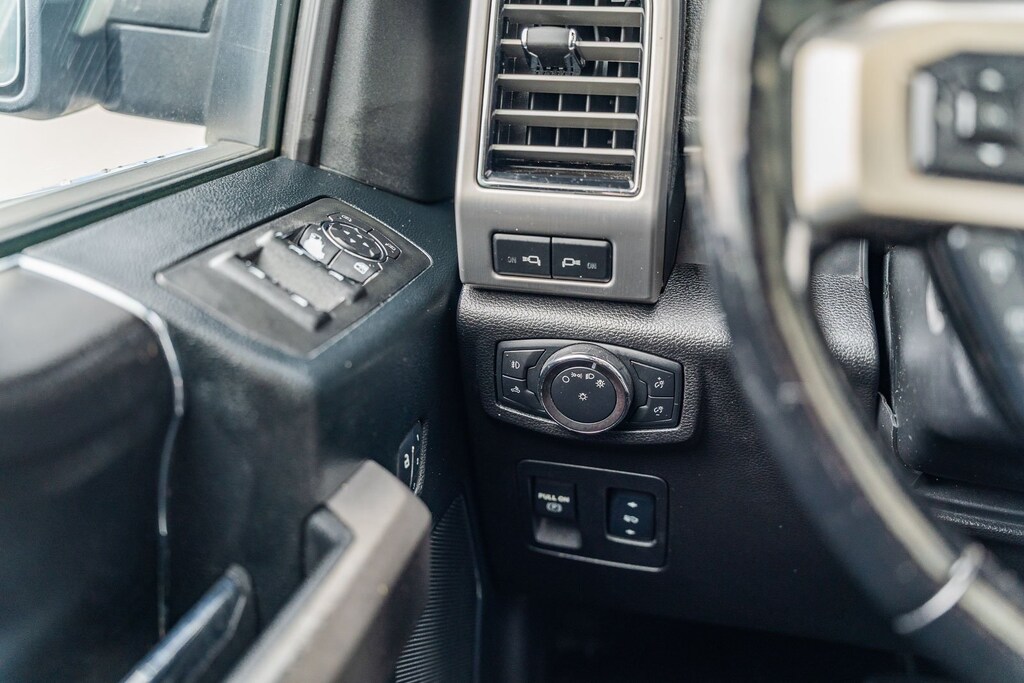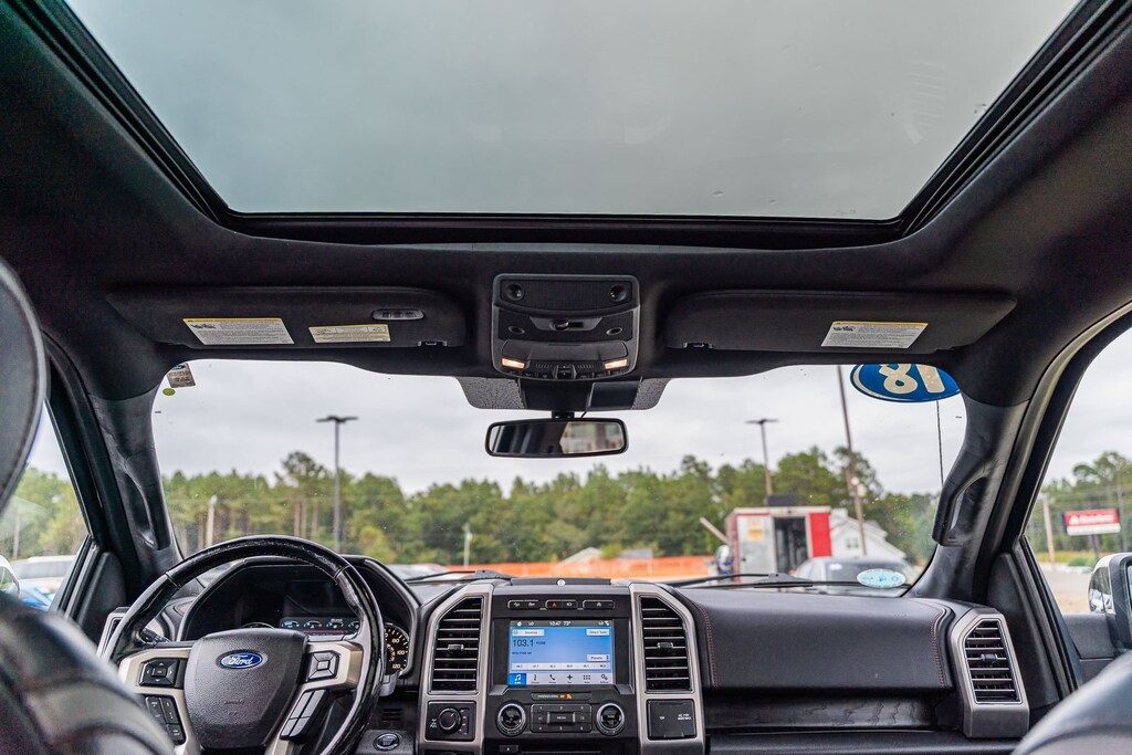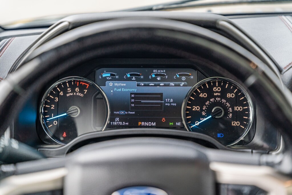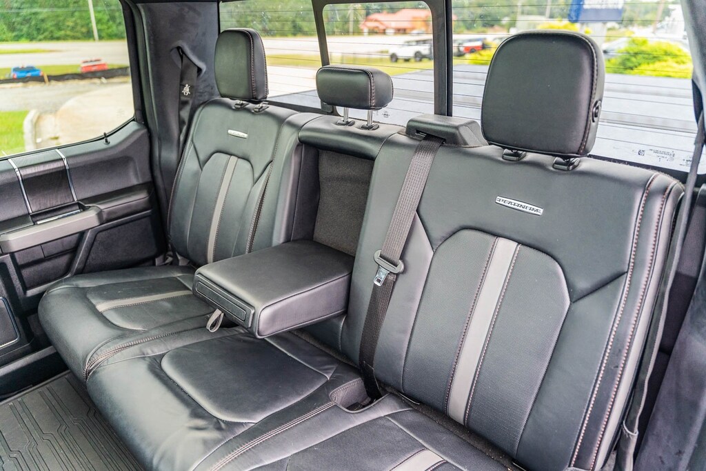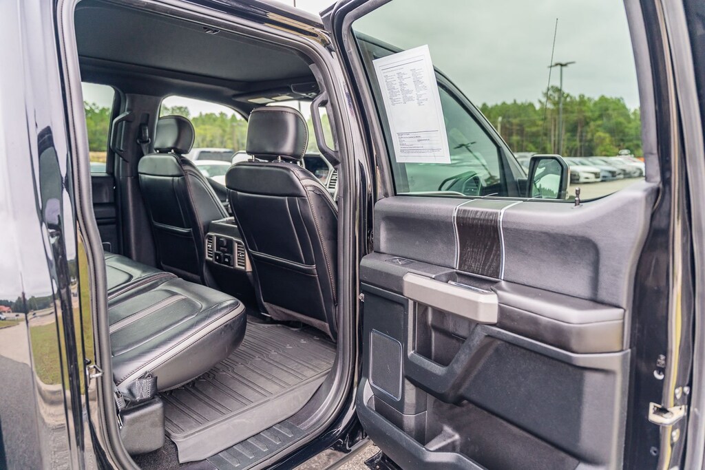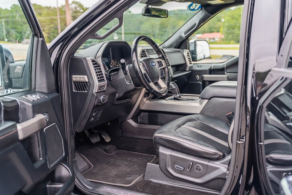 This vehicle comes equipped with Equipment Group 701A Luxury (Adaptive Cruise Control and Tailgate Step w/Tailgate Lift Assist), FX4 Off-Road Package (4x4 FX4 Off-Road Bodyside Decal, Hill Descent Control, and Off-Road Tuned Front Shock Absorbers), GVWR: 7,050 lbs Payload Package, Technology Package (Active Park Assist and Lane-Keeping System), Trailer Tow Package (Class IV Trailer Hitch Receiver, Higher-Capacity Radiator, Higher-Power Cooling Fans, Pro Trailer Backup Assist, and Upgraded Front Stabilizer Bar), 4WD, 10 Speakers, 20" Polished Aluminum Wheels, 3.31 Axle Ratio, 4-Wheel Disc Brakes, ABS brakes, Adjustable pedals, Air Conditioning, All-Weather Rubber Floor Mats, Alloy wheels, AM/FM radio: SiriusXM, AppLink/Apple CarPlay and Android Auto, Auto High-beam Headlights, Auto tilt-away steering wheel, Auto-dimming door mirrors, Auto-dimming Rear-View mirror, Automatic temperature control, Black Unique Multi-Contour Leather Bucket Seats, Brake assist, Bumpers: body-color, CD player, Compass, Delay-off headlights, Driver door bin, Driver vanity mirror, Dual front impact airbags, Dual front side impact airbags, Electronic Stability Control, Emergency communication system: SYNC 3 911 Assist, Exterior Parking Camera Rear, Front anti-roll bar, Front Bucket Seats, Front Center Armrest, Front dual zone A/C, Front fog lights, Front reading lights, Front wheel independent suspension, Fully automatic headlights, Garage door transmitter, Genuine wood door panel insert, Heated door mirrors, Heated front seats, Heated rear seats, Heated steering wheel, Illuminated entry, Integrated Trailer Brake Controller, Low tire pressure warning, Memory seat, Navigation System, Occupant sensing airbag, Outside temperature display, Overhead airbag, Overhead console, Panic alarm, Passenger door bin, Passenger vanity mirror, Pedal memory, Power door mirrors, Power driver seat, Power passenger seat, Power steering, Power windows, Radio data system, Radio: B&O Play Premium Audio System, Rain sensing wipers, Rear Parking Sensors, Rear reading lights, Rear seat center armrest, Rear step bumper, Rear window defroster, Remote keyless entry, Security system, Speed control, Speed-sensing steering, Split folding rear seat, Steering wheel memory, Steering wheel mounted audio controls, SYNC 3, Tachometer, Telescoping steering wheel, Tilt steering wheel, Traction control, Trip computer, Turn signal indicator mirrors, Twin Panel Moonroof, Variably intermittent wipers, Ventilated front seats, Voice-Activated Touchscreen Navigation System, and Voltmeter.