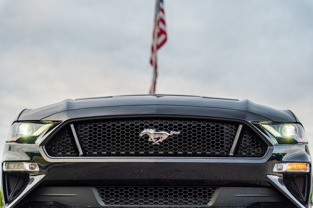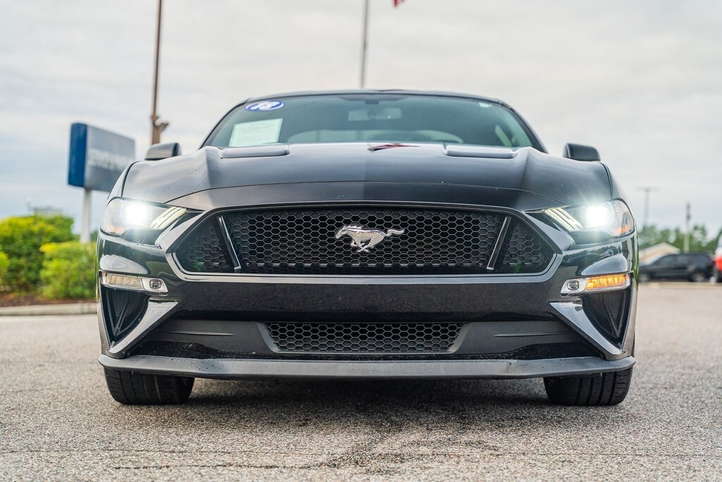 This vehicle comes equipped with Equipment Group 400A, GT Performance Package (Engine Spun Aluminum Instrument Panel, Gauge Pack (Oil Pressure & Vacuum), HD Front Springs, Larger Brake Rotors, Larger Radiator, Unique Stability Control, and Wheels: 19" x 9" Fr & 19" x 9.5" Rr Ebony Black), 3.15 Limited Slip Rear Axle Ratio, 4-Wheel Disc Brakes, 9 Speakers, ABS brakes, Air Conditioning, Alloy wheels, AM/FM radio: SiriusXM, AM/FM Stereo w/Single CD Player, Apple CarPlay/Android Auto, Auto-dimming Rear-View mirror, Automatic temperature control, Block heater, Brake assist, Bumpers: body-color, CD player, Climate Controlled Heated/Cooled Front Seats, Compass, Delay-off headlights, Driver door bin, Driver vanity mirror, Dual front impact airbags, Dual front side impact airbags, Electronic Stability Control, Emergency communication system: 911 Assist, Exterior Parking Camera Rear, Four wheel independent suspension, Front anti-roll bar, Front Bucket Seats, Front Center Armrest, Front dual zone A/C, Front fog lights, Front reading lights, Fully automatic headlights, Garage door transmitter, Heated door mirrors, Heated front seats, Illuminated entry, Knee airbag, Leather Bucket Seats, Leather Shift Knob, Low tire pressure warning, Occupant sensing airbag, Outside temperature display, Overhead airbag, Overhead console, Panic alarm, Passenger door bin, Passenger vanity mirror, Power door mirrors, Power driver seat, Power passenger seat, Power steering, Power windows, Radio data system, Rear anti-roll bar, Rear window defroster, Remote keyless entry, Security system, SiriusXM Radio, Speed control, Speed-sensing steering, Speed-Sensitive Wipers, Split folding rear seat, Spoiler, Steering wheel mounted audio controls, SYNC 3 Communications & Entertainment System, Tachometer, Telescoping steering wheel, Tilt steering wheel, Traction control, Trip computer, Turn signal indicator mirrors, Variably intermittent wipers, Ventilated front seats, Voice-Activated Touch-Screen Navigation System, Voltmeter, and Wheels: 18" x 8" Machined-Face Aluminum.