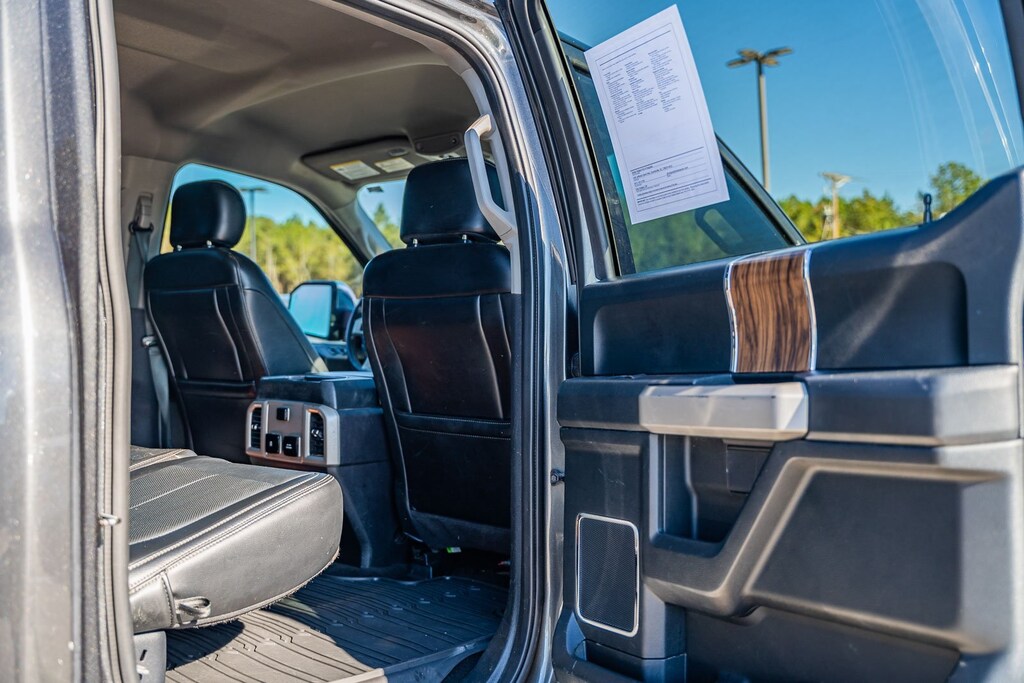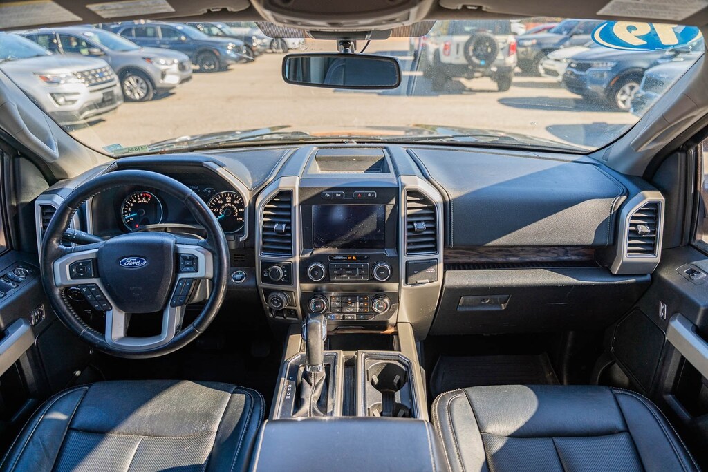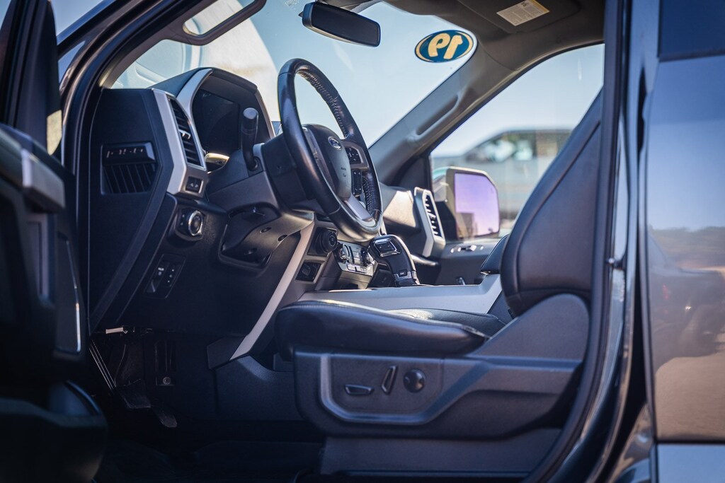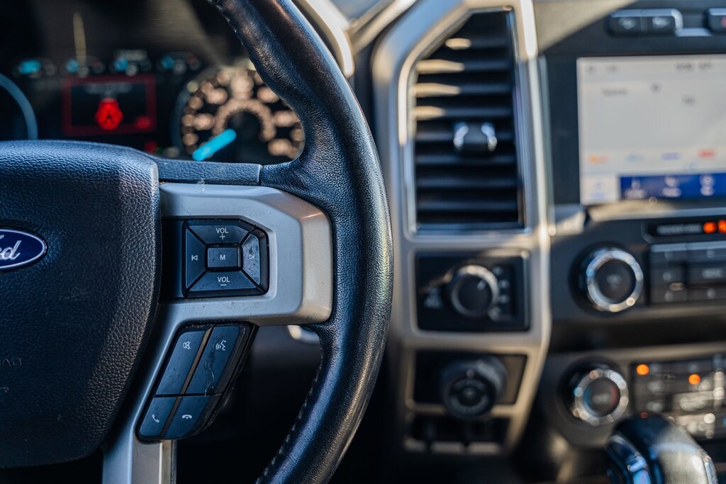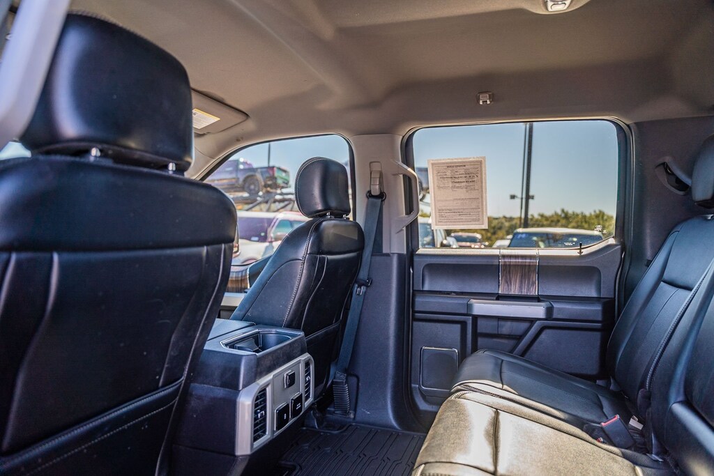This vehicle comes equipped with Equipment Group 501A Mid (110V/400W Outlet, BLIS Blind Spot Information System, LED Sideview Mirror Spotlights, Power Glass Sideview Mirr w/Body-Color Skull Caps, Remote Start System w/Remote Tailgate Release, Reverse Sensing System, and Universal Garage Door Opener), FX4 Off-Road Package (Tray Style Floor Liner), GVWR: 7,050 lbs Payload Package, Lariat Chrome Appearance Package (Chrome 2-Bar Grille w/4 Minor Bars, Chrome Angular Step Bars, Chrome Door & Tailgate Handles w/Body-Color Bezel, Chrome Skull Caps on Exterior Mirrors, Single-Tip Chrome Exhaust, and Wheels: 18" Chrome-Like PVD), Max Trailer Tow Package (Class IV Trailer Hitch Receiver, Engine Oil Cooler, Extended Range 36 Gallon Fuel Tank, Integrated Trailer Brake Controller, Pro Trailer Backup Assist, and Upgraded Front Stabilizer Bar), 4WD, 18" Machined-Aluminum Wheels, 4-Wheel Disc Brakes, 7 Speakers, ABS brakes, Adjustable pedals, Air Conditioning, Alloy wheels, AM/FM radio: SiriusXM, AppLink/Apple CarPlay and Android Auto, Auto High-beam Headlights, Auto-dimming door mirrors, Auto-dimming Rear-View mirror, Automatic temperature control, Brake assist, Bumpers: chrome, Compass, Delay-off headlights, Driver door bin, Driver vanity mirror, Dual front impact airbags, Dual front side impact airbags, Electronic Stability Control, Emergency communication system: SYNC 3 911 Assist, Exterior Parking Camera Rear, Front anti-roll bar, Front Center Armrest w/Storage, Front dual zone A/C, Front fog lights, Front reading lights, Front wheel independent suspension, Fully automatic headlights, Heated door mirrors, Heated front seats, Illuminated entry, Leather-Trimmed 40/20/40 Front Seat, Low tire pressure warning, Memory seat, Occupant sensing airbag, Outside temperature display, Overhead airbag, Overhead console, Panic alarm, Passenger door bin, Passenger vanity mirror, Pedal memory, Power door mirrors, Power driver seat, Power passenger seat, Power steering, Power windows, Radio data system, Radio: AM/FM Stereo w/6 Speakers, Rear reading lights, Rear seat center armrest, Rear step bumper, Rear window defroster, Remote keyless entry, Security system, SiriusXM Radio, Speed control, Speed-sensing steering, Split folding rear seat, Steering wheel mounted audio controls, SYNC 3, Tachometer, Tailgate Step w/Tailgate Lift Assist, Telescoping steering wheel, Tilt steering wheel, Traction control, Trip computer, Turn signal indicator mirrors, Variably intermittent wipers, Ventilated front seats, Voice-Activated Touchscreen Navigation, Voltmeter, Wheel Well Liner, and Wheels: 20" Chrome-Like PVD.