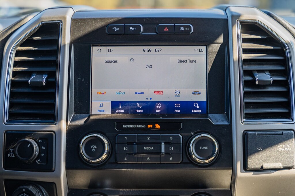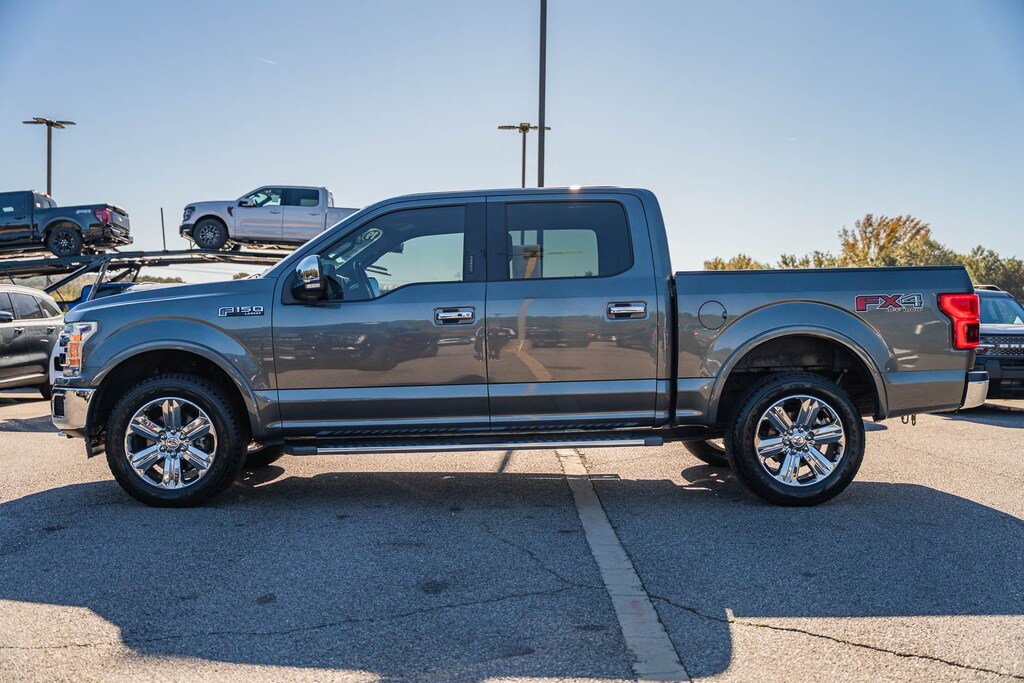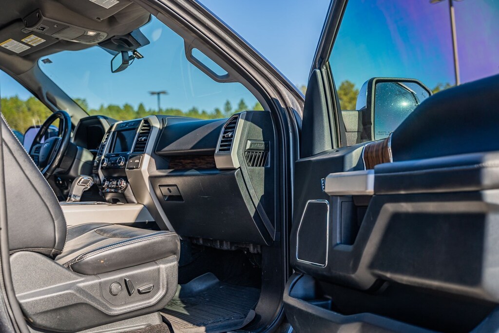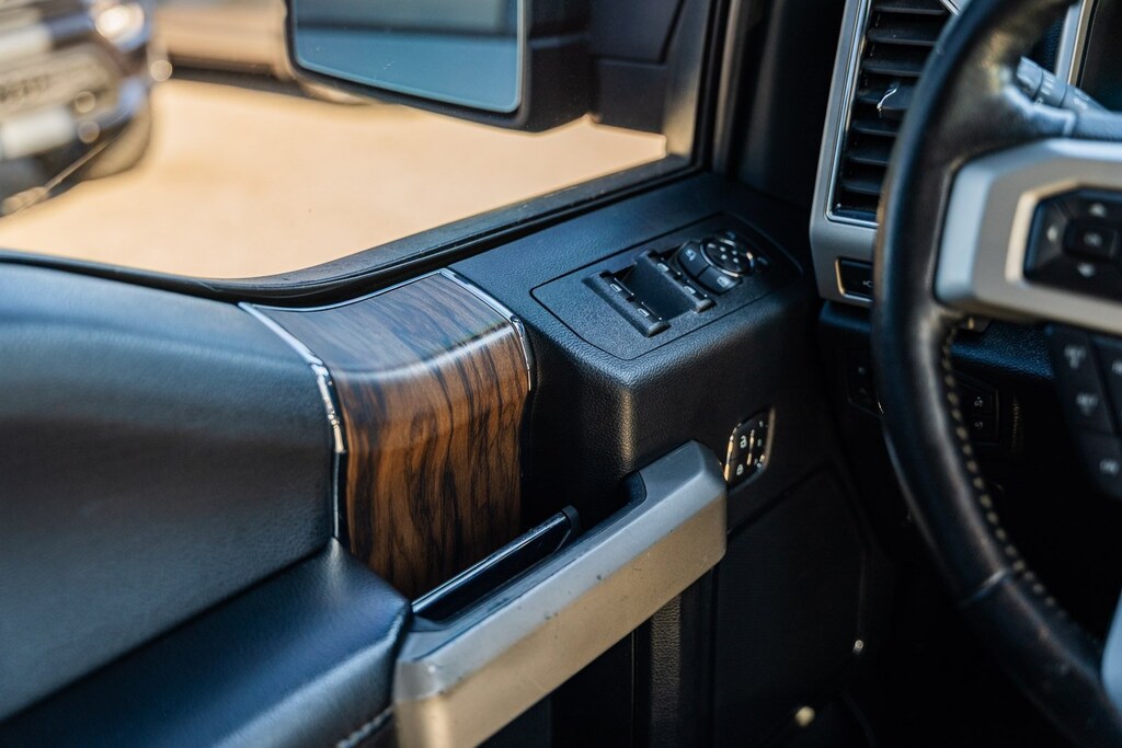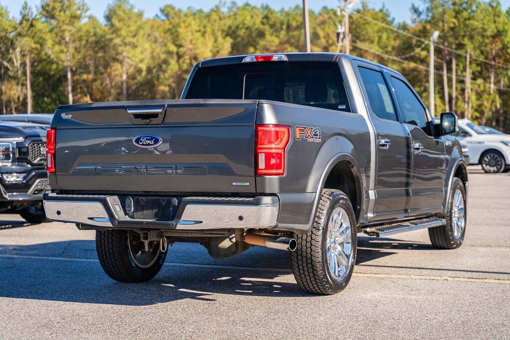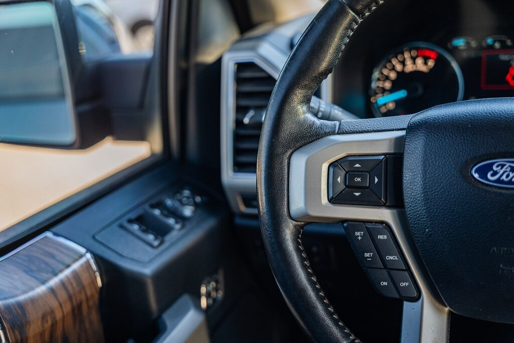 This vehicle comes equipped with Equipment Group 501A Mid (110V/400W Outlet, BLIS Blind Spot Information System, LED Sideview Mirror Spotlights, Power Glass Sideview Mirr w/Body-Color Skull Caps, Remote Start System w/Remote Tailgate Release, Reverse Sensing System, and Universal Garage Door Opener), FX4 Off-Road Package (Tray Style Floor Liner), GVWR: 7,050 lbs Payload Package, Lariat Chrome Appearance Package (Chrome 2-Bar Grille w/4 Minor Bars, Chrome Angular Step Bars, Chrome Door & Tailgate Handles w/Body-Color Bezel, Chrome Skull Caps on Exterior Mirrors, Single-Tip Chrome Exhaust, and Wheels: 18" Chrome-Like PVD), Max Trailer Tow Package (Class IV Trailer Hitch Receiver, Engine Oil Cooler, Extended Range 36 Gallon Fuel Tank, Integrated Trailer Brake Controller, Pro Trailer Backup Assist, and Upgraded Front Stabilizer Bar), 4WD, 18" Machined-Aluminum Wheels, 4-Wheel Disc Brakes, 7 Speakers, ABS brakes, Adjustable pedals, Air Conditioning, Alloy wheels, AM/FM radio: SiriusXM, AppLink/Apple CarPlay and Android Auto, Auto High-beam Headlights, Auto-dimming door mirrors, Auto-dimming Rear-View mirror, Automatic temperature control, Brake assist, Bumpers: chrome, Compass, Delay-off headlights, Driver door bin, Driver vanity mirror, Dual front impact airbags, Dual front side impact airbags, Electronic Stability Control, Emergency communication system: SYNC 3 911 Assist, Exterior Parking Camera Rear, Front anti-roll bar, Front Center Armrest w/Storage, Front dual zone A/C, Front fog lights, Front reading lights, Front wheel independent suspension, Fully automatic headlights, Heated door mirrors, Heated front seats, Illuminated entry, Leather-Trimmed 40/20/40 Front Seat, Low tire pressure warning, Memory seat, Occupant sensing airbag, Outside temperature display, Overhead airbag, Overhead console, Panic alarm, Passenger door bin, Passenger vanity mirror, Pedal memory, Power door mirrors, Power driver seat, Power passenger seat, Power steering, Power windows, Radio data system, Radio: AM/FM Stereo w/6 Speakers, Rear reading lights, Rear seat center armrest, Rear step bumper, Rear window defroster, Remote keyless entry, Security system, SiriusXM Radio, Speed control, Speed-sensing steering, Split folding rear seat, Steering wheel mounted audio controls, SYNC 3, Tachometer, Tailgate Step w/Tailgate Lift Assist, Telescoping steering wheel, Tilt steering wheel, Traction control, Trip computer, Turn signal indicator mirrors, Variably intermittent wipers, Ventilated front seats, Voice-Activated Touchscreen Navigation, Voltmeter, Wheel Well Liner, and Wheels: 20" Chrome-Like PVD.