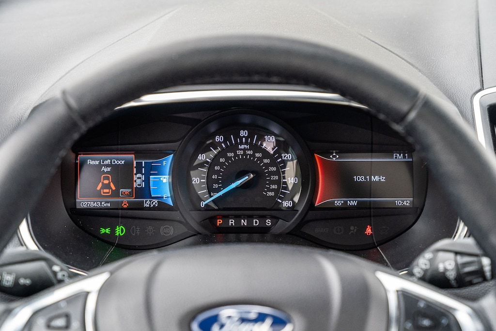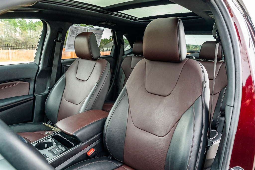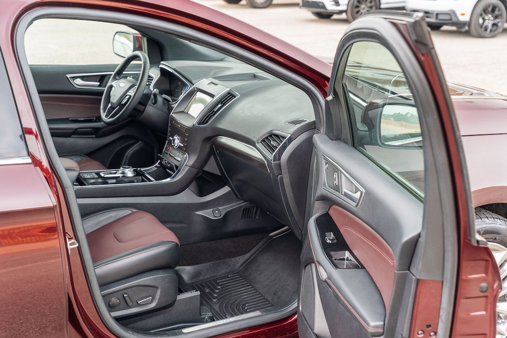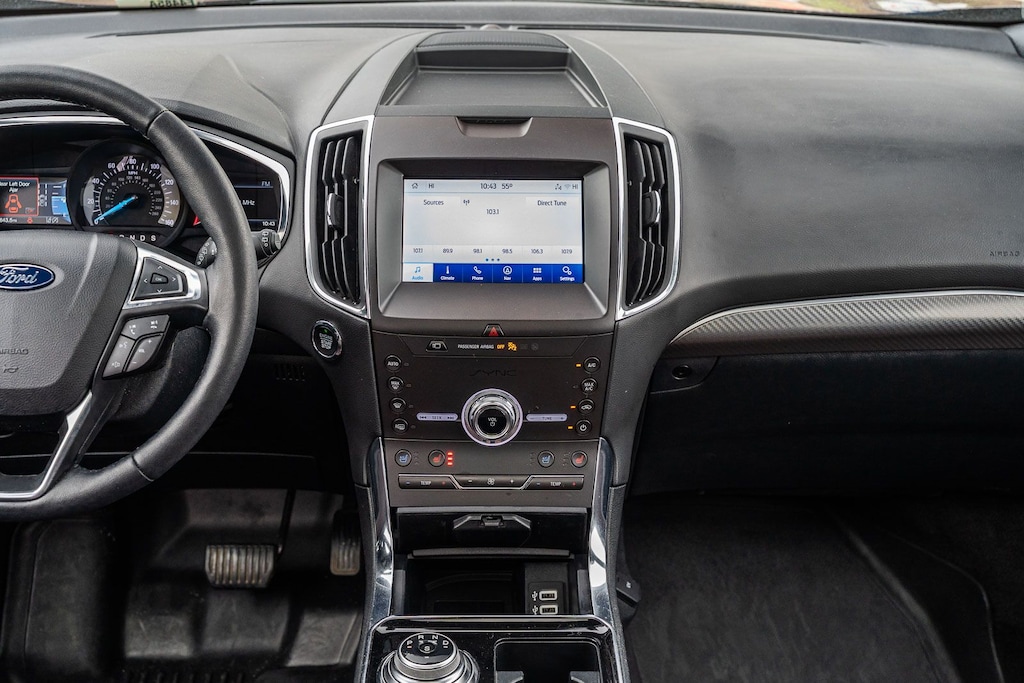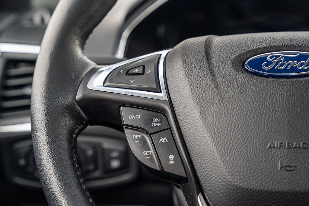 This vehicle comes equipped with Equipment Group 301A (Adaptive Cruise Control w/Stop & Go, Adaptive LED Headlamps, Auto-Dimming Driver's Sideview Mirror, Enhanced Active Park Assist, Evasive Steering Assist, Front 180-Degree Camera w/Split View & Washer, Heated Rear Seats, Lane Centering, Leather-Trimmed Heated/Cooled Sport Bucket Seats, Panoramic Vista Roof, SiriusXM Traffic & Travel Link, and Voice-Activated Touchscreen Navigation System), Titanium Elite Package (20" Polished Aluminum Wheels, Bright Chrome Accents & Surround Upper Grille, Brunello w/Brick Red Accent Stitching Door Inserts, Front & Rear Floor Mats, and Intrecciato Bright Alum Instrument Panel Appliques), Ford Certified, 12 Speakers, 3.80 Axle Ratio, 4-Wheel Disc Brakes, ABS brakes, Air Conditioning, Alloy wheels, AM/FM radio: SiriusXM, Auto High-beam Headlights, Auto tilt-away steering wheel, Auto-dimming Rear-View mirror, Automatic temperature control, Brake assist, Bumpers: body-color, Compass, Delay-off headlights, Driver door bin, Driver vanity mirror, Dual front impact airbags, Dual front side impact airbags, Electronic Stability Control, Emergency communication system: SYNC 3 911 Assist, FordPass Connect, Four wheel independent suspension, Front anti-roll bar, Front Bucket Seats, Front Center Armrest w/Storage, Front dual zone A/C, Front fog lights, Front reading lights, Fully automatic headlights, Garage door transmitter, Heated door mirrors, Heated front seats, Heated steering wheel, Illuminated entry, Knee airbag, Leather-Trimmed Heated Sport Bucket Seats, Low tire pressure warning, Memory seat, Occupant sensing airbag, Outside temperature display, Overhead airbag, Overhead console, Panic alarm, Passenger door bin, Passenger vanity mirror, Power door mirrors, Power driver seat, Power Liftgate, Power passenger seat, Power steering, Power windows, Radio: B&O Sound System by Bang & Olufsen, Rain sensing wipers, Rear anti-roll bar, Rear reading lights, Rear seat center armrest, Rear window defroster, Rear window wiper, Remote keyless entry, Roof rack: rails only, Security system, SiriusXM Radio, Speed control, Speed-Sensitive Wipers, Split folding rear seat, Spoiler, Steering wheel memory, Steering wheel mounted audio controls, SYNC 3 Communications & Entertainment System, Tachometer, Telescoping steering wheel, Tilt steering wheel, Traction control, Trip computer, Turn signal indicator mirrors, Variably intermittent wipers, and Wheels: 19" Luster Nickel-Painted Aluminum.