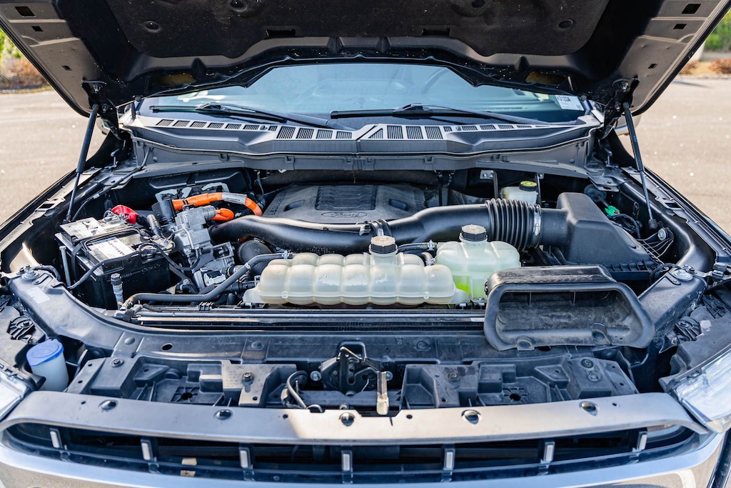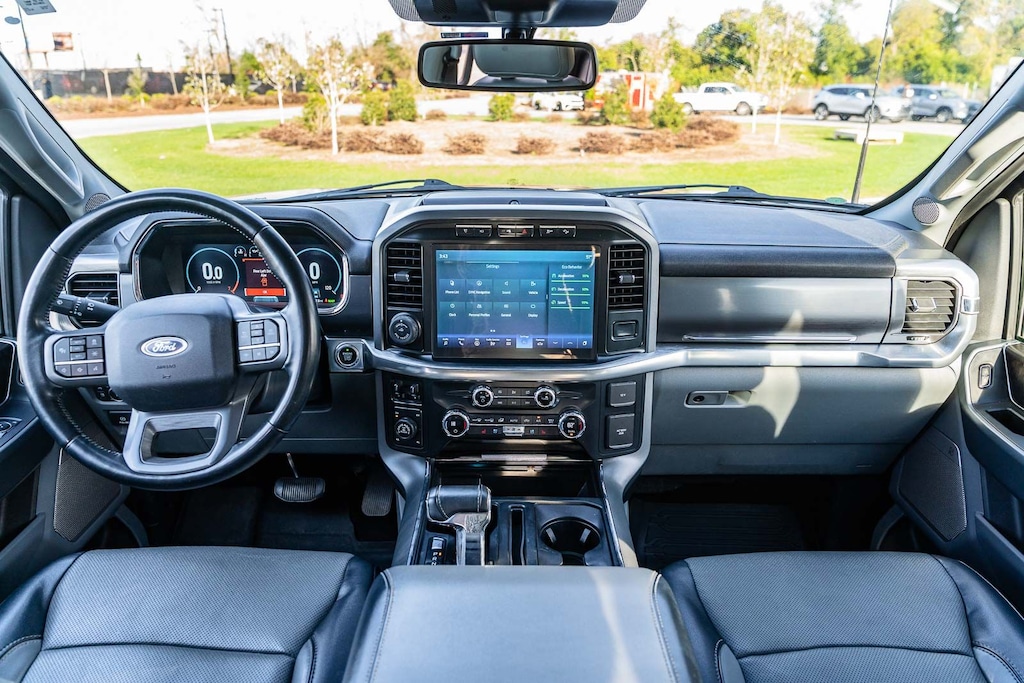 This F-150 Lariat includes Equipment Group 501A Mid (Radio: B&O Sound System by Bang & Olufsen), Ford Co-Pilot360 Assist 2.0 (Connected Built-In Navigation, Evasive Steering Assist, Intelligent Adaptive Cruise Control w/Stop & Go, Intersection Assist, and Speed Sign Recognition), FX4 Off-Road Package, Lariat Chrome Appearance Package (6" Chrome Running Board, Chrome 2-Bar Grille w/4 Minor Bars, Chrome Door & Tailgate Handles w/Body-Color Bezel, Chrome Single-Tip Exhaust, Chrome Skull Caps on Exterior Mirrors, and Wheels: 18" Chrome-Like PVD), Trailer Tow Package (Class IV Trailer Hitch Receiver, Integrated Trailer Brake Controller, and Pro Trailer Backup Assist), 3.5L PowerBoost Full-Hybrid V6, 4WD, 18" Machined-Aluminum Wheels, 360 Degree Camera, 4-Wheel Disc Brakes, 7 Speakers, ABS brakes, Adjustable pedals, Air Conditioning, Alloy wheels, AM/FM radio: SiriusXM with 360L, Auto High-beam Headlights, Auto-dimming door mirrors, Auto-dimming Rear-View mirror, Automatic temperature control, Brake assist, Bumpers: chrome, Compass, Delay-off headlights, Driver door bin, Driver vanity mirror, Dual front impact airbags, Dual front side impact airbags, Electronic Stability Control, Emergency communication system: SYNC 4 911 Assist, Exterior Parking Camera Rear, Front anti-roll bar, Front Center Armrest w/Storage, Front dual zone A/C, Front fog lights, Front reading lights, Front wheel independent suspension, Fully automatic headlights, Heated door mirrors, Heated front seats, Illuminated entry, Interior Work Surface, Leather-Trimmed 40/20/40 Front Seat, LED Sideview Mirror Spotlights, Low tire pressure warning, Memory seat, Navigation system: Connected Navigation (90-Day Trial), Occupant sensing airbag, Outside temperature display, Overhead airbag, Overhead console, Panic alarm, Passenger door bin, Passenger vanity mirror, Pedal memory, Power door mirrors, Power driver seat, Power passenger seat, Power steering, Power windows, Radio data system, Radio: AM/FM SiriusXM w/360L, Rear reading lights, Rear seat center armrest, Rear step bumper, Rear window defroster, Remote keyless entry, Security system, Speed control, Speed-sensing steering, Split folding rear seat, Steering wheel mounted audio controls, SYNC 4 w/Enhanced Voice Recognition, Tachometer, Telescoping steering wheel, Tilt steering wheel, Traction control, Tray Style Floor Liner (47W), Trip computer, Turn signal indicator mirrors, Variably intermittent wipers, Ventilated front seats, Voltmeter, and Wheels: 20" Chrome-Like PVD . While every effort has been made to ensure display of accurate data, the vehicle listings within this web site may not reflect all accurate vehicle items. All Inventory listed is subject to prior sale. The vehicle photo displayed may be an example only. Pricing throughout the web site does not include any options that may have been installed at the dealership. Please see the dealer for details. Vehicles may be in transit or currently in production. Some vehicles are shown with optional equipment. See the actual vehicle for complete accuracy of features, options & pricing. Because of the numerous possible combinations of vehicle models, styles, colors and options, the vehicle pictures on this site may not match your vehicle exactly; however, it will match as closely as possible. Some vehicle images shown are stock photos and may not reflect your exact choice of vehicle, color, trim and specification. Not responsible for pricing or typographical errors. Virtual Inventory, Available Configurations and In-Transit inventory contains vehicles that have not actually been manufactured. These vehicles show consumers sample vehicles that may be available. Pricing, Options, Color, and other data pertaining to these vehicles are provided for example only. All information pertaining to these vehicles should be independently verified through the deale