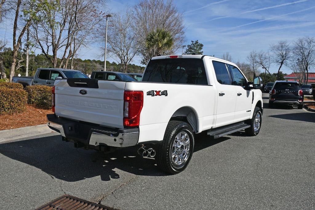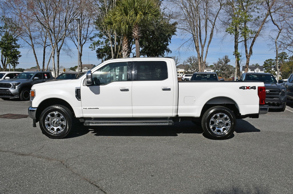 ***Stokes Toyota Hilton Head*** 2021 Ford F-250 SuperDuty Lariat in Star White Metallic Tri-Coat, Factory Equipped With: 6" Angular Chrome Step Bars, Ambient Lighting - Fixed Color, Body-Color Door Handles w/Chrome Insert, Chrome Exhaust Tip, Chrome Package, Easy Entry®/Exit Memory Driver's Seat Feature, Intelligent Access w/Push-Button Start, Lariat Ultimate Package, LED Box Lighting, Memory Power-Adjustable Pedals, Power Heated/Ventilated Driver Seat w/Memory, Power Heated/Ventilated Passenger Seat, Power Telescoping/Tilt Steering Wheel/Column, PowerScope Trailer Tow Mirrors w/Heat, PowerScope Trailer Tow Mirrors w/Memory, Remote Start System, Remote Tailgate Release, Tailgate Step & Handle, Unique Chrome Mirror Caps, Voice-Activated Navigation, Wheels: 18" Chrome PVD Aluminum.