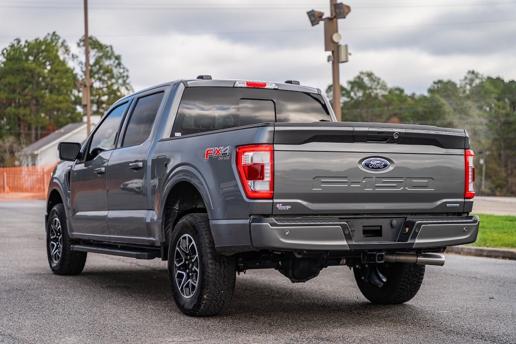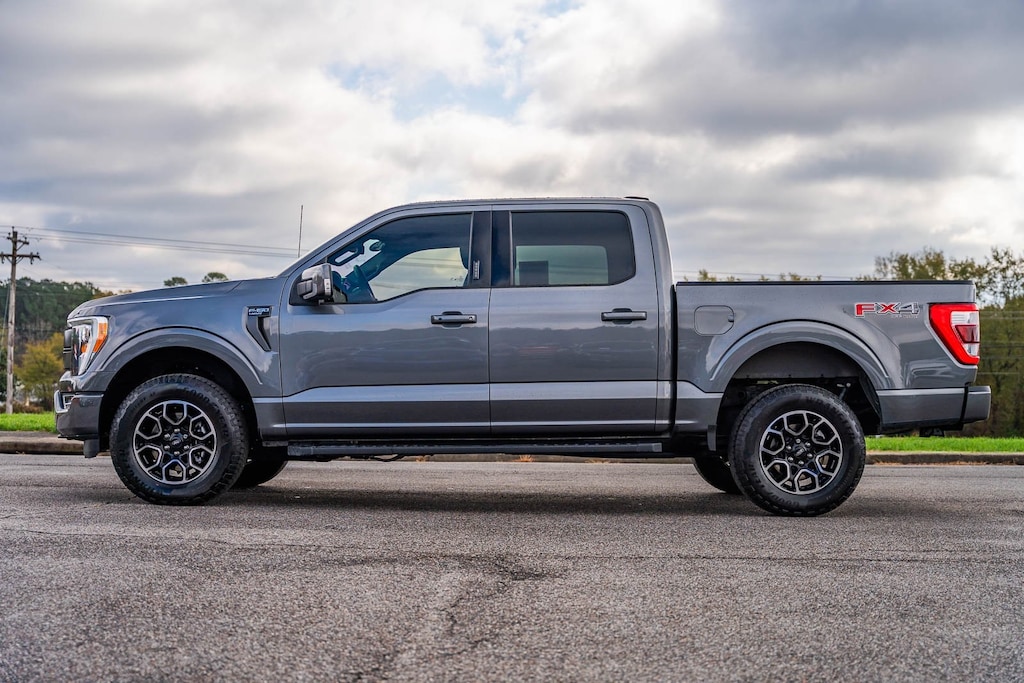 This vehicle comes equipped with Equipment Group 501A Mid (Onboard 400W Outlet and Radio: B&O Sound System by Bang & Olufsen), FX4 Off-Road Package (Tray Style Floor Liner (47W)), Lariat Sport Appearance Package (Accent-Color Angular Step Bars, Body-Color Front & Rear Bumpers, Box Side Decals, Chrome Single-Tip Exhaust, Dark 2-Bar & 1 Minor Bar Style Grille, and Wheels: 18" 6-Spoke Machined Aluminum), Trailer Tow Package (Class IV Trailer Hitch Receiver, Integrated Trailer Brake Controller, and Pro Trailer Backup Assist), Ford Gold Certified Certified, 4WD, 18" Machined-Aluminum Wheels, 4-Wheel Disc Brakes, 7 Speakers, ABS brakes, Adjustable pedals, Air Conditioning, Alloy wheels, AM/FM radio: SiriusXM with 360L, Auto High-beam Headlights, Auto Start-Stop Removal, Auto-dimming door mirrors, Auto-dimming Rear-View mirror, Automatic temperature control, Brake assist, Bumpers: chrome, Compass, Connected Navigation & SiriusXM w/360L Removal, Delay-off headlights, Driver door bin, Driver vanity mirror, Dual front impact airbags, Dual front side impact airbags, Electronic Stability Control, Emergency communication system: SYNC 4 911 Assist, Extended Range 36 Gallon Fuel Tank, Exterior Parking Camera Rear, Front anti-roll bar, Front Center Armrest w/Storage, Front dual zone A/C, Front fog lights, Front reading lights, Front wheel independent suspension, Fully automatic headlights, Heated door mirrors, Heated front seats, Illuminated entry, Leather-Trimmed 40/20/40 Front Seat, LED Sideview Mirror Spotlights, Low tire pressure warning, Memory seat, Occupant sensing airbag, Outside temperature display, Overhead airbag, Overhead console, Panic alarm, Passenger door bin, Passenger vanity mirror, Pedal memory, Power door mirrors, Power driver seat, Power passenger seat, Power steering, Power windows, Radio data system, Radio: AM/FM SiriusXM w/360L, Rear reading lights, Rear seat center armrest, Rear step bumper, Rear window defroster, Remote keyless entry, Security system, Speed control, Speed-sensing steering, Split folding rear seat, Steering wheel mounted audio controls, SYNC 4 w/Enhanced Voice Recognition, Tachometer, Telescoping steering wheel, Tilt steering wheel, Traction control, Trip computer, Turn signal indicator mirrors, Variably intermittent wipers, Ventilated front seats, Voltmeter, and Wireless Charging Pad.