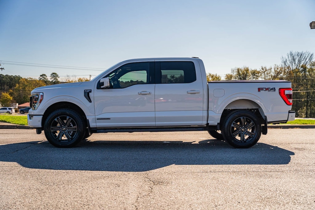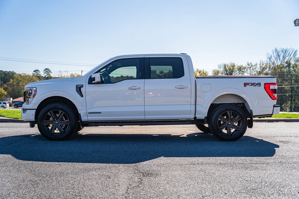 This vehicle comes equipped with Bed Utility Package (BoxLink, LED Box Lighting, Power Tailgate, and Tailgate Step w/Tailgate Work Surface), Equipment Group 502A High, Ford Co-Pilot360 Active 2.0 (Active Park Assist 2.0 and BlueCruise), FX4 Off-Road Package, Lariat Sport Appearance Package (Accent-Color Angular Step Bars, Body-Color Front & Rear Bumpers, Box Side Decals, Chrome Single-Tip Exhaust, Dark 2-Bar & 1 Minor Bar Style Grille, and Wheels: 18" 6-Spoke Machined Aluminum), Trailer Tow Package (Class IV Trailer Hitch Receiver, Integrated Trailer Brake Controller, and Pro Trailer Backup Assist), Ford Blue Certified Certified, 3.5L PowerBoost Full-Hybrid V6, 4WD, 18" Machined-Aluminum Wheels, 360 Degree Camera, 4-Wheel Disc Brakes, 7 Speakers, ABS brakes, Adjustable pedals, Air Conditioning, Alloy wheels, AM/FM radio: SiriusXM with 360L, Auto High-beam Headlights, Auto-dimming door mirrors, Auto-dimming Rear-View mirror, Automatic temperature control, Brake assist, Bumpers: chrome, Compass, Delay-off headlights, Driver door bin, Driver vanity mirror, Dual front impact airbags, Dual front side impact airbags, Electronic Stability Control, Emergency communication system: SYNC 4 911 Assist, Exterior Parking Camera Rear, Front anti-roll bar, Front Center Armrest w/Storage, Front dual zone A/C, Front fog lights, Front License Plate Bracket, Front reading lights, Front wheel independent suspension, Fully automatic headlights, Heated door mirrors, Heated front seats, Illuminated entry, Leather-Trimmed 40/20/40 Front Seat, Low tire pressure warning, Memory seat, Occupant sensing airbag, Outside temperature display, Overhead airbag, Overhead console, Panic alarm, Partitioned Lockable Fold-Flat Storage, Passenger door bin, Passenger vanity mirror, Pedal memory, Power door mirrors, Power driver seat, Power passenger seat, Power steering, Power windows, Pro Power Onboard - 7.2KW, Radio data system, Radio: AM/FM SiriusXM w/360L, Radio: B&O Unleashed Sound System by Bang & Olufsen, Rear reading lights, Rear seat center armrest, Rear step bumper, Rear window defroster, Remote keyless entry, Security system, Speed control, Speed-sensing steering, Split folding rear seat, Steering wheel mounted audio controls, SYNC 4 w/Enhanced Voice Recognition, Tachometer, Telescoping steering wheel, Tilt steering wheel, Tough Bed Spray-In Bedliner, Traction control, Tray Style Floor Liner, Trip computer, Turn signal indicator mirrors, Twin Panel Moonroof, Variably intermittent wipers, Ventilated front seats, Voltmeter, and Wheels: 20" 6-Spoke Dark Alloy Painted Aluminum.