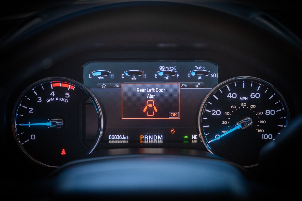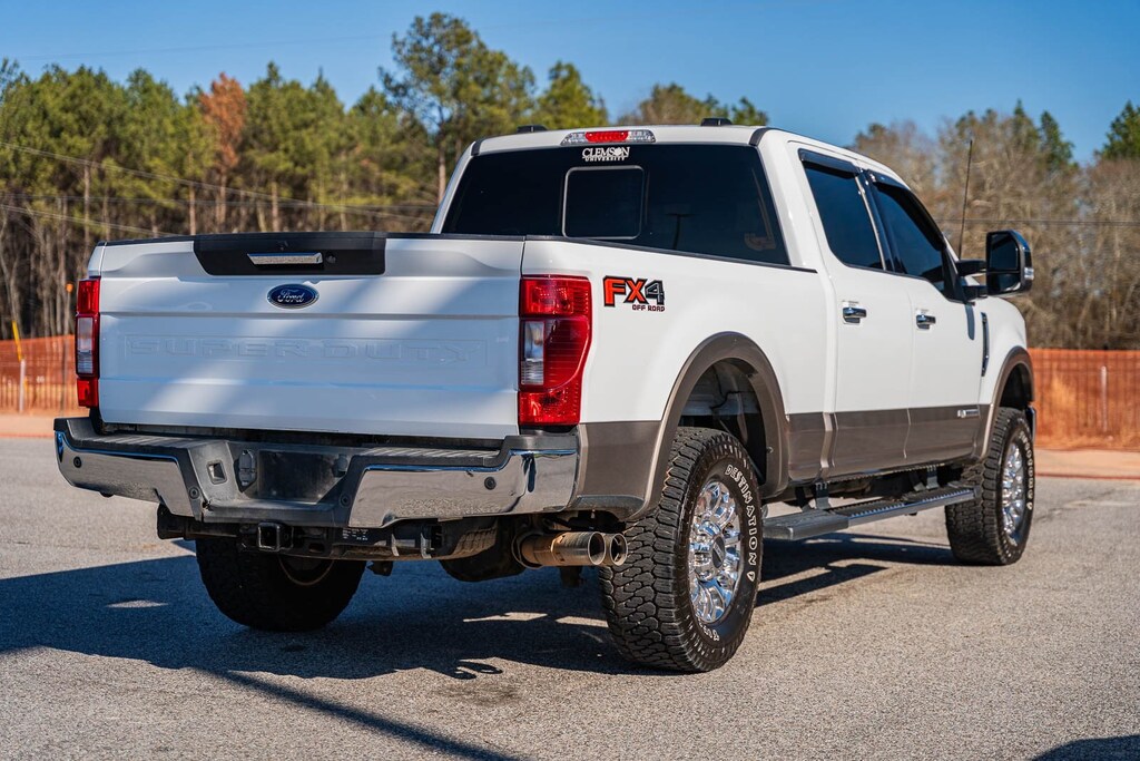 This vehicle comes equipped with Chrome Package (6" Angular Bright Polished Step Bars, Body-Color Door Handles w/Chrome Insert, Chrome Exhaust Tip, PowerScope Trailer Tow Mirrors w/Heat, Unique Chrome Mirror Caps, and Wheels: 18" Chrome PVD Aluminum), FX4 Off-Road Package (Hill Descent Control, Off-Road Specifically Tuned Shock Absorbers, and Unique FX4 Off-Road Box Decal), GVWR: 10,000 lb Payload Package, Lariat Value Package (Easy Entry®/Exit Memory Driver's Seat Feature, LED Box Lighting, Memory Power-Adjustable Pedals, Power Heated/Ventilated Driver Seat w/Memory, Power Heated/Ventilated Passenger Seat, PowerScope Trailer Tow Mirrors w/Memory, and Remote Start System), Order Code 608A, 4WD, 10 Speakers, 4-Wheel Disc Brakes, 6" Angular Bright Polished Extended Running Boards, ABS brakes, Adjustable pedals, Air Conditioning, Alloy wheels, AM/FM radio: SiriusXM with 360L, Auto High-beam Headlights, Auto-dimming Rear-View mirror, Automatic temperature control, Black Molded Hood Deflector (Pre-Installed), Brake assist, Bumpers: chrome, Compass, Delay-off headlights, Driver door bin, Driver vanity mirror, Dual front impact airbags, Dual front side impact airbags, Electronic Stability Control, Emergency communication system: SYNC 4 911 Assist, Exterior Parking Camera Rear, Flow-Through Console, Front anti-roll bar, Front Bucket Seats, Front Center Armrest, Front dual zone A/C, Front fog lights, Front Leather Seating Surfaces 40/Console/40, Front reading lights, Fully automatic headlights, Heated door mirrors, Illuminated entry, Leather steering wheel, Low tire pressure warning, Navigation system: Connected Navigation, Outside temperature display, Overhead airbag, Overhead console, Panic alarm, Passenger door bin, Passenger vanity mirror, Power door mirrors, Power driver seat, Power passenger seat, Power steering, Power windows, Radio data system, Radio: B&O Sound System by Bang & Olufsen, Rear Parking Sensors, Rear reading lights, Rear seat center armrest, Rear step bumper, Rear window defroster, Remote keyless entry, Security system, SiriusXM Radio w/360L, Speed control, Split folding rear seat, Steering wheel mounted audio controls, SYNC 4 w/Enhanced Voice Recognition, Tachometer, Telescoping steering wheel, Tilt steering wheel, Traction control, Trip computer, Turn signal indicator mirrors, Variably intermittent wipers, and Wheels: 18" Bright Machined Cast Aluminum.