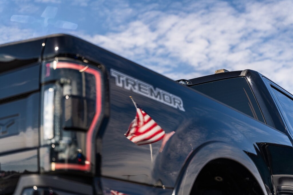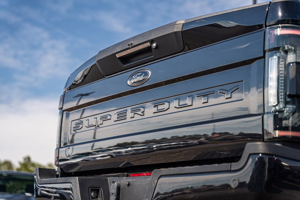 This vehicle comes equipped with GVWR: 10,000 lb Payload Package, High Capacity Trailer Tow Package, Lariat Black Appearance Pkg w/o Spray-In Bedliner (6" Ebony Black Angular Running Boards, Black Out Surrounds LED Only Headlamps, Body-Color Front & Rear Bumpers, Ebony Black Painted Front Grille Bars, Ebony Black Painted Mirror Caps, Rear Wheel Well Liners (Pre-Installed), and Wheels: 20" High-Gloss Black Premium Painted Alum), Lariat Ultimate Package (Ambient Lighting - Fixed Color, Easy Entry®/Exit Memory Driver's Seat Feature, Intelligent Access w/Push-Button Start, LED Box Lighting, Memory Power-Adjustable Pedals, Power Heated/Ventilated Driver Seat w/Memory, Power Heated/Ventilated Passenger Seat, Power Telescoping/Tilt Steering Wheel/Column, PowerScope Trailer Tow Mirrors w/Memory, Remote Start System, Remote Tailgate Release, and Tailgate Step & Handle), Order Code 608A, Pro Trailer Backup Assist - High Capacity (Lane Departure Warning System and Ultimate Trailer Tow Camera System), 4WD, 10 Speakers, 397 Amp Alternator, 4-Wheel Disc Brakes, ABS brakes, Adjustable pedals, Advanced Security Pack Inclination Sensor Removal, Air Conditioning, Alloy wheels, AM/FM radio: SiriusXM with 360L, Auto High-beam Headlights, Auto-dimming Rear-View mirror, Automatic temperature control, Brake assist, Bumpers: chrome, Compass, Delay-off headlights, Driver door bin, Driver vanity mirror, Dual front impact airbags, Dual front side impact airbags, Electronic Stability Control, Emergency communication system: SYNC 4 911 Assist, Engine Block Heater, Exterior Parking Camera Rear, Flow-Through Console, Front anti-roll bar, Front Bucket Seats, Front Center Armrest, Front dual zone A/C, Front fog lights, Front Leather Seating Surfaces 40/Console/40, Front reading lights, Fully automatic headlights, Heated door mirrors, Heated Steering Wheel, Illuminated entry, Leather steering wheel, LED Roof Clearance Lights, Low tire pressure warning, Navigation system: Connected Navigation, Outside temperature display, Overhead airbag, Overhead console, Panic alarm, Passenger door bin, Passenger vanity mirror, Power door mirrors, Power driver seat, Power passenger seat, Power steering, Power windows, Power-Deployable Running Boards, PowerScope Trailer Tow Mirrors w/Heat, Radio data system, Radio: B&O Sound System by Bang & Olufsen, Rain-Sensing Windshield Wipers, Rapid-Heat Supplemental Cab Heater, Rear Parking Sensors, Rear reading lights, Rear seat center armrest, Rear step bumper, Rear window defroster, Remote keyless entry, Security system, SiriusXM Radio w/360L, Speed control, Split folding rear seat, Steering wheel mounted audio controls, SYNC 4 w/Enhanced Voice Recognition, Tachometer, Telescoping steering wheel, Tilt steering wheel, Traction control, Trip computer, Turn signal indicator mirrors, Twin Panel Power Moonroof, Upfitter Switches (6), Variably intermittent wipers, and Wheels: 18" Bright Machined Cast Aluminum.