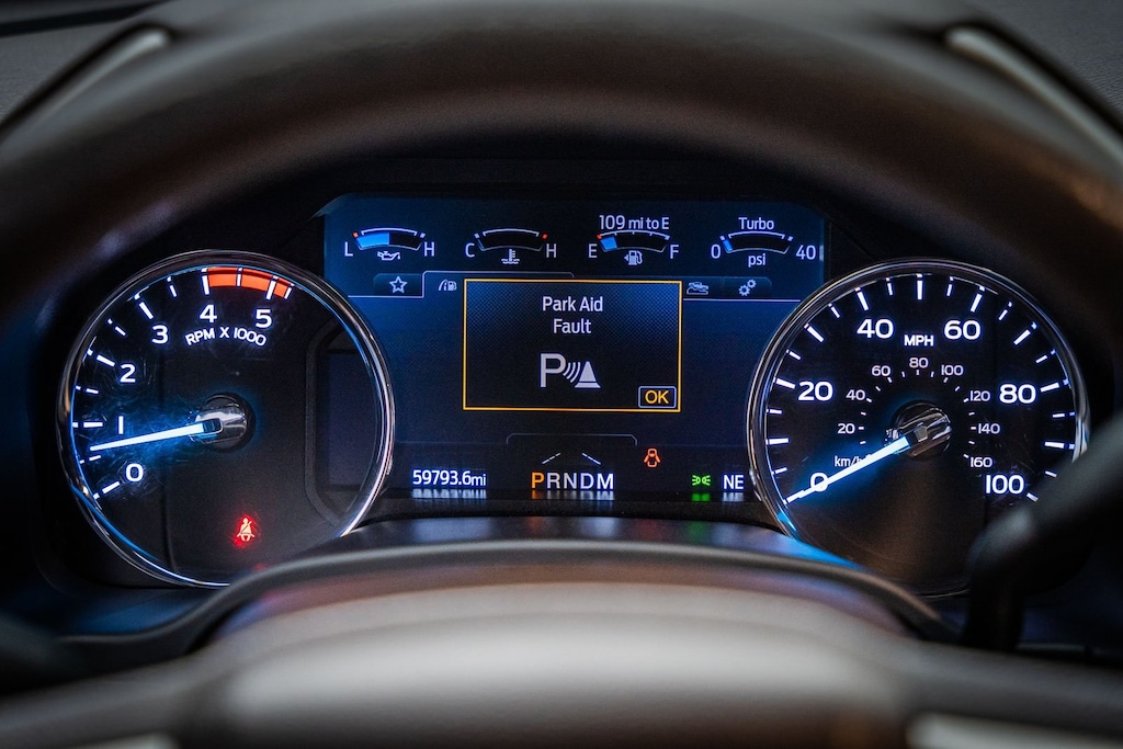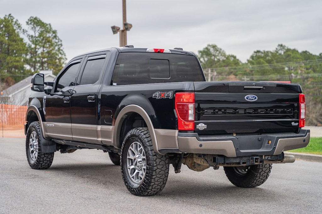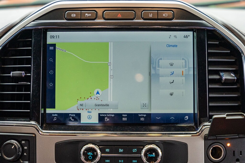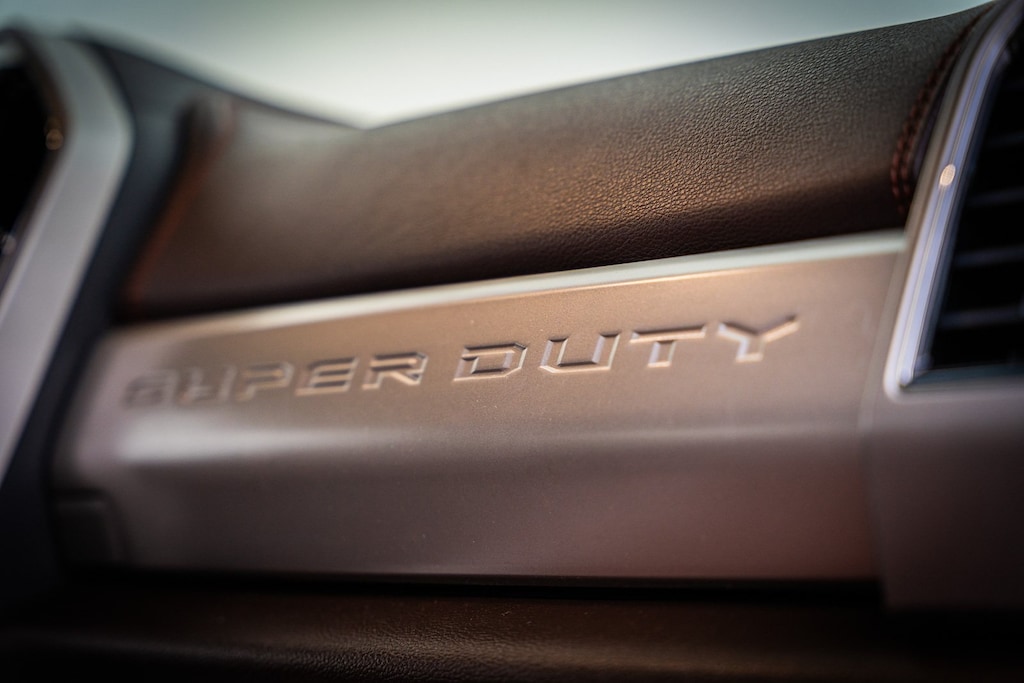 This vehicle comes equipped with 5th Wheel/Gooseneck Hitch Prep Package, GVWR: 10,000 lb Payload Package, Snow Plow Prep Package, 4WD, 10 Speakers, 397 Amp Alternator, 4-Wheel Disc Brakes, ABS brakes, Adjustable pedals, Air Conditioning, Alloy wheels, AM/FM radio: SiriusXM with 360L, Auto High-beam Headlights, Auto-dimming Rear-View mirror, Automatic temperature control, Brake assist, Compass, Delay-off headlights, Driver door bin, Driver vanity mirror, Dual front impact airbags, Dual front side impact airbags, Electronic Stability Control, Emergency communication system: SYNC 4 911 Assist, Exterior Parking Camera Rear, Flow-Through Console, Front & Rear Wheel Well Liners (Pre-Installed), Front anti-roll bar, Front Bucket Seats, Front Center Armrest, Front dual zone A/C, Front fog lights, Front reading lights, Fully automatic headlights, Heated door mirrors, Illuminated entry, Leather steering wheel, LED Roof Clearance Lights, Low tire pressure warning, Navigation system: Connected Navigation, Outside temperature display, Overhead airbag, Overhead console, Panic alarm, Passenger door bin, Passenger vanity mirror, Power door mirrors, Power driver seat, Power passenger seat, Power steering, Power windows, PowerScope Trailer Tow Mirrors w/Heat, Radio data system, Radio: B&O Sound System by Bang & Olufsen, Rapid-Heat Supplemental Cab Heater, Rear Parking Sensors, Rear reading lights, Rear seat center armrest, Rear step bumper, Rear window defroster, Remote keyless entry, Security system, SiriusXM Radio w/360L, Speed control, Split folding rear seat, Steering wheel mounted audio controls, SYNC 4 w/Enhanced Voice Recognition, Tachometer, Telescoping steering wheel, Tilt steering wheel, Tough Bed Spray-In Bedliner, Traction control, Trip computer, Turn signal indicator mirrors, Ultimate Trailer Tow Camera System, Variably intermittent wipers, Vehicle Safe by Console Vault (Pre-Installed), and Wheels: 20" Bright Machined Cast Aluminum.
