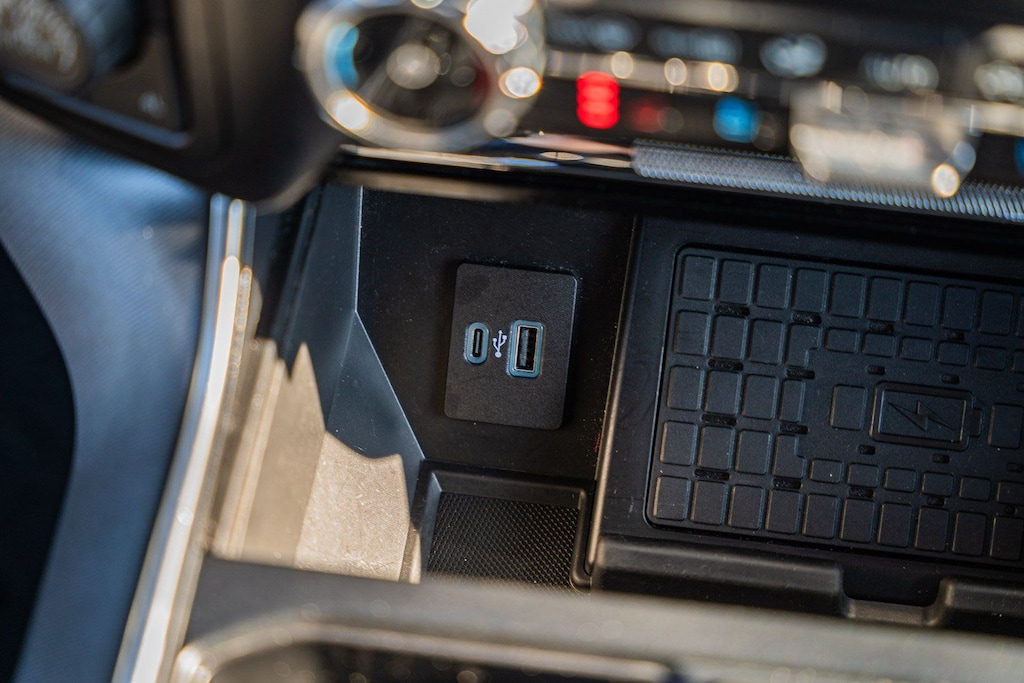 This vehicle comes equipped with Equipment Group 802A Raptor R (17" Forged Aluminum Bead-Lock Capable Wheels, Black Exterior Accents, Carbon Fiber Interior Appliques, Code Orange Stitching Doors & Instrument Panel, Code Orange Tow Hooks, Interior Code Orange Raptor R Badging, Partitioned Lockable Fold-Flat Storage, Raptor R Badge Tailgate Applique, Recaro Black w/Orange Stitching Front Seats, Unique Hood Vent w/R Badge, and Unique Raptor R Grille w/R Badge), GVWR: 7,300 lbs Payload Package, GVWR: 7,450 lbs Payload Package, Moonroof & Tailgate (Power Tailgate and Twin Panel Moonroof), 4WD, 17" Cast Aluminum Wheels, 18 Speakers, 4-Wheel Disc Brakes, ABS brakes, Adaptive suspension, Adjustable pedals, Air Conditioning, Alloy wheels, AM/FM radio: SiriusXM with 360L, Auto High-beam Headlights, Auto tilt-away steering wheel, Auto-dimming door mirrors, Auto-dimming Rear-View mirror, Automatic temperature control, Brake assist, Bumpers: body-color, Compass, Delay-off headlights, Driver door bin, Driver vanity mirror, Dual front impact airbags, Dual front side impact airbags, Electronic Locking w/4.10 Axle Ratio, Electronic Stability Control, Emergency communication system, Exterior Parking Camera Rear, Front anti-roll bar, Front Bucket Seats, Front Center Armrest, Front dual zone A/C, Front fog lights, Front License Plate Bracket, Front reading lights, Front wheel independent suspension, Fully automatic headlights, Garage door transmitter, Heated door mirrors, Heated front seats, Heated rear seats, Heated steering wheel, Illuminated entry, Inclination/Intrusion Sensor Removal, Lane Departure Warning System, Leather Trim Seats w/Heated 2nd Row, Low tire pressure warning, Memory seat, Navigation system: Connected Navigation, Occupant sensing airbag, Outside temperature display, Overhead airbag, Overhead console, Panic alarm, Passenger door bin, Passenger vanity mirror, Pedal memory, Power door mirrors, Power driver seat, Power passenger seat, Power steering, Power windows, Radio data system, Radio: B&O Unleashed Sound System by Bang & Olufsen, Rain sensing wipers, Raptor 37 Graphics, Rear reading lights, Rear step bumper, Rear window defroster, Remote keyless entry, Security system, Speed control, Speed-sensing steering, Split folding rear seat, Steering Wheel Heat Removal (DISC), Steering wheel memory, Steering wheel mounted audio controls, SYNC 4 w/Enhanced Voice Recognition, Tachometer, Telescoping steering wheel, Tilt steering wheel, Traction control, Trip computer, Turn signal indicator mirrors, Variably intermittent wipers, and Ventilated front seats.