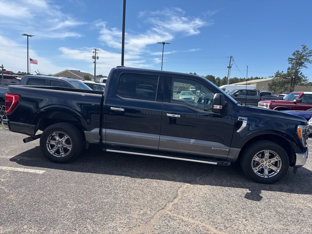 This vehicle comes equipped with Bed Utility Package (LED Box Lighting, Tailgate Step w/Tailgate Work Surface, and Zone Lighting), Equipment Group 302A High (10-Way Power Driver & Passenger Seats, 8" Productivity Screen in Instrument Cluster, Auto-Dimming Rear-View Mirror, Class IV Trailer Hitch Receiver, Dual Zone Electronic Automatic Temperature Control, Heated Front Seats, Intelligent Access w/Push Button Start, LED Reflector Headlamps, LED Sideview Mirror Spotlights, Onboard 400W Outlet, Power Glass Heated Sideview Mirrors, Radio: AM/FM SiriusXM w/360L, Rear Under-Seat Storage, SecuriCode Drivers Side Keyless-Entry Keypad, SYNC 4 w/Enhanced Voice Recognition, and Wrapped Steering Wheel), Trailer Tow Package (Integrated Trailer Brake Controller and Pro Trailer Backup Assist & Pro Trailer Hitch Assist), XLT Chrome Appearance Package (2-Bar Style Grille w/Chrome 2 Minor Bars, Bright Polished Step Bars, Chrome Door & Tailgate Handles w/Body-Color Bezel, Chrome Single-Tip Exhaust, and Wheels: 18" Chrome-Like PVD), 3.5L PowerBoost Full-Hybrid V6, 360 Degree Camera, 4-Wheel Disc Brakes, 6 Speakers, ABS brakes, Air Conditioning, Alloy wheels, AM/FM radio, Auto High-beam Headlights, Brake assist, Bumpers: chrome, Center High-Mounted Stop Lamp CHMSL Camera Removal, Cloth 40/20/40 Front Seat, Compass, Delay-off headlights, Driver door bin, Driver vanity mirror, Dual front impact airbags, Dual front side impact airbags, Electronic Stability Control, Emergency communication system: SYNC 4 911 Assist, Exterior Parking Camera Rear, Front anti-roll bar, Front Center Armrest w/Storage, Front fog lights, Front License Plate Bracket, Front reading lights, Front wheel independent suspension, Fully automatic headlights, Heated door mirrors, Illuminated entry, Interior Work Surface, Low tire pressure warning, Manual-Folding Heated Pwr Glass Trailer Tow Mirror, Occupant sensing airbag, Outside temperature display, Overhead airbag, Overhead console, Panic alarm, Passenger door bin, Passenger vanity mirror, Power door mirrors, Power steering, Power windows, Pro Power Onboard - 7.2KW, Radio data system, Radio: AM/FM Stereo w/6 Speakers, Rear reading lights, Rear step bumper, Rear window defroster, Remote keyless entry, Remote Start System, Security system, Speed control, Speed-sensing steering, Split folding rear seat, Steering wheel mounted audio controls, SYNC 4, Tachometer, Telescoping steering wheel, Tilt steering wheel, Tough Bed Spray-In Bedliner, Traction control, Trip computer, Variably intermittent wipers, Voltmeter, and Wheels: 17" Silver Painted Aluminum.