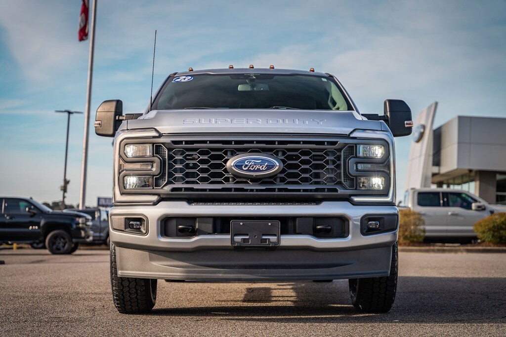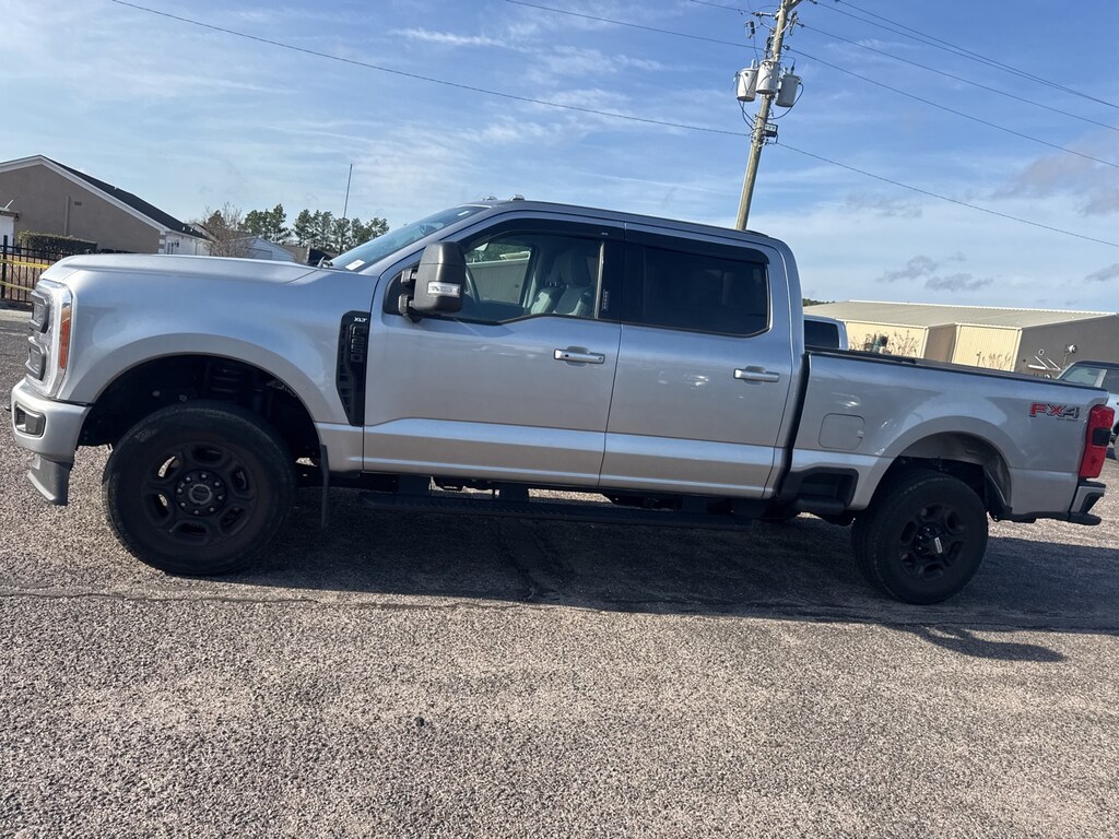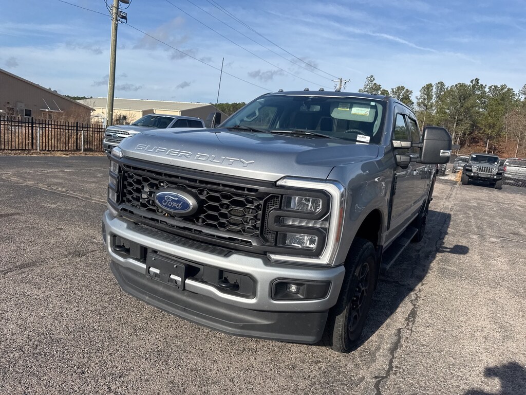 This vehicle comes equipped with GVWR: 10,000 lb Payload Package, 4WD, 3.73 Axle Ratio, 4-Wheel Disc Brakes, 7 Speakers, ABS brakes, Air Conditioning, Alloy wheels, AM/FM radio, Auto High-beam Headlights, Auto-dimming Rear-View mirror, Brake assist, Bumpers: chrome, Cloth 40/20/40 Split Bench Seat, Compass, Delay-off headlights, Driver door bin, Driver vanity mirror, Dual front impact airbags, Dual front side impact airbags, Electronic Stability Control, Emergency communication system: SYNC 4 911 Assist, Exterior Parking Camera Rear, Front anti-roll bar, Front Center Armrest w/Storage, Front fog lights, Front reading lights, Fully automatic headlights, Heated door mirrors, Illuminated entry, Low tire pressure warning, Outside temperature display, Overhead airbag, Overhead console, Panic alarm, Passenger door bin, Passenger vanity mirror, Power door mirrors, Power driver seat, Power steering, Power windows, Privacy Glass, Radio: AM/FM Stereo/MP3 Player, Rear reading lights, Rear step bumper, Remote keyless entry, Speed control, Split folding rear seat, Steering wheel mounted audio controls, SYNC 4, Tachometer, Telescoping steering wheel, Tilt steering wheel, Traction control, Trip computer, Turn signal indicator mirrors, Variably intermittent wipers, and Wheels: 18" Sparkle Silver Painted Cast Aluminum.