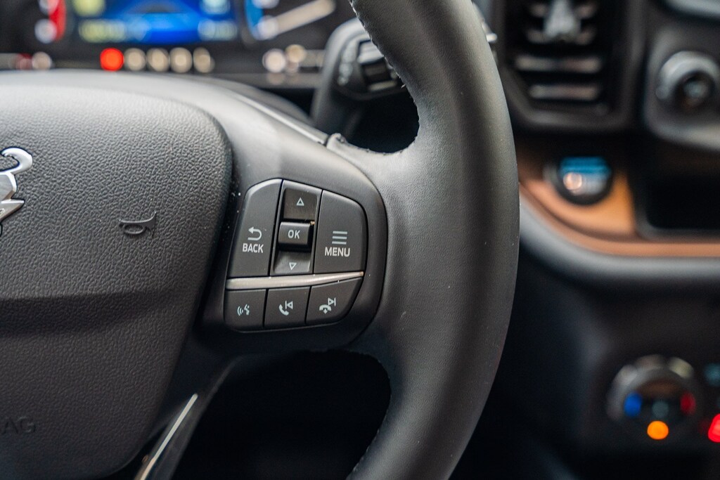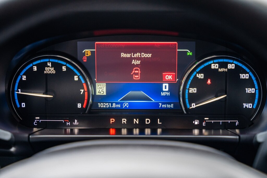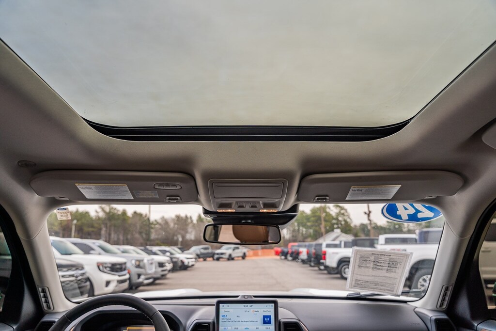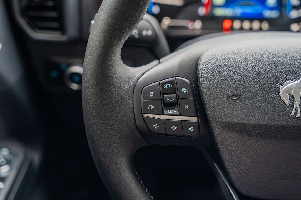 This vehicle comes equipped with Equipment Group 300A, Ford Co-Pilot360 Assist+ (Evasive Steering Assist, Intelligent Adaptive Cruise Control w/Stop & Go, and Voice-Activated Touchscreen Navigation System), Tech Package (HD Radio, Universal Garage Door Opener (UGDO), and Wireless Charging Pad), 3.80 Axle Ratio, 4-Wheel Disc Brakes, 6 Speakers, ABS brakes, Air Conditioning, Alloy wheels, AM/FM radio: SiriusXM, AM/FM Stereo, Auto High-beam Headlights, Auto-dimming Rear-View mirror, Automatic temperature control, Brake assist, Cargo Management System, Compass, Delay-off headlights, Driver door bin, Driver vanity mirror, Dual front impact airbags, Dual front side impact airbags, Electronic Stability Control, Emergency communication system: SYNC 3 911 Assist, Four wheel independent suspension, Front & Rear Floor Liners w/Carpet Mats, Front anti-roll bar, Front Bucket Seats, Front Center Armrest, Front dual zone A/C, Front fog lights, Front reading lights, Fully automatic headlights, Heated door mirrors, Heated front seats, Heated steering wheel, Illuminated entry, Knee airbag, Low tire pressure warning, Memory seat, Occupant sensing airbag, Outside temperature display, Overhead airbag, Overhead console, Panic alarm, Passenger door bin, Passenger vanity mirror, Power door mirrors, Power driver seat, Power Moonroof, Power passenger seat, Power steering, Power windows, Premium-Trimmed Heated Sport Contour Bucket Seats, Radio data system, Rain sensing wipers, Rear anti-roll bar, Rear Parking Sensors, Rear reading lights, Rear seat center armrest, Rear window defroster, Rear window wiper, Remote keyless entry, Security system, SiriusXM, Speed control, Speed-sensing steering, Speed-Sensitive Wipers, Split folding rear seat, Steering wheel mounted audio controls, SYNC 3 Communications & Entertainment System, Tachometer, Telescoping steering wheel, Tilt steering wheel, Traction control, Trip computer, Variably intermittent wipers, and Wheels: 18" Ebony Black-Painted Aluminum.