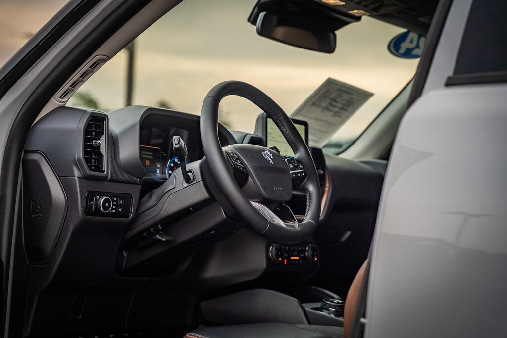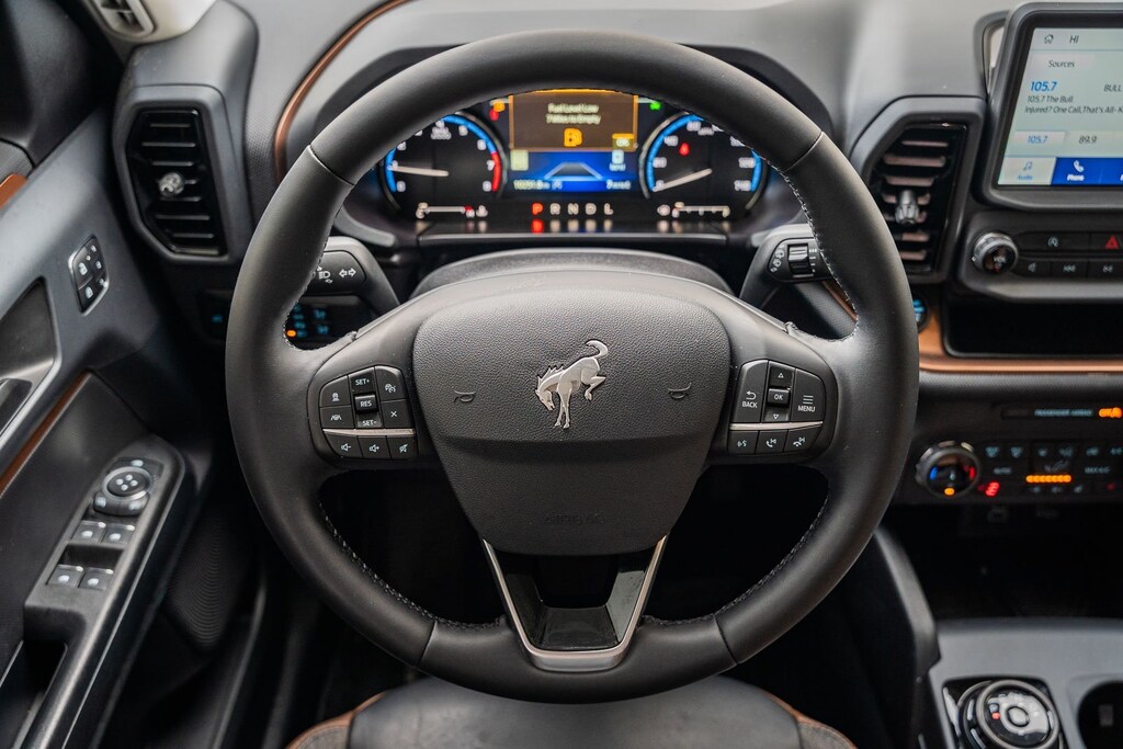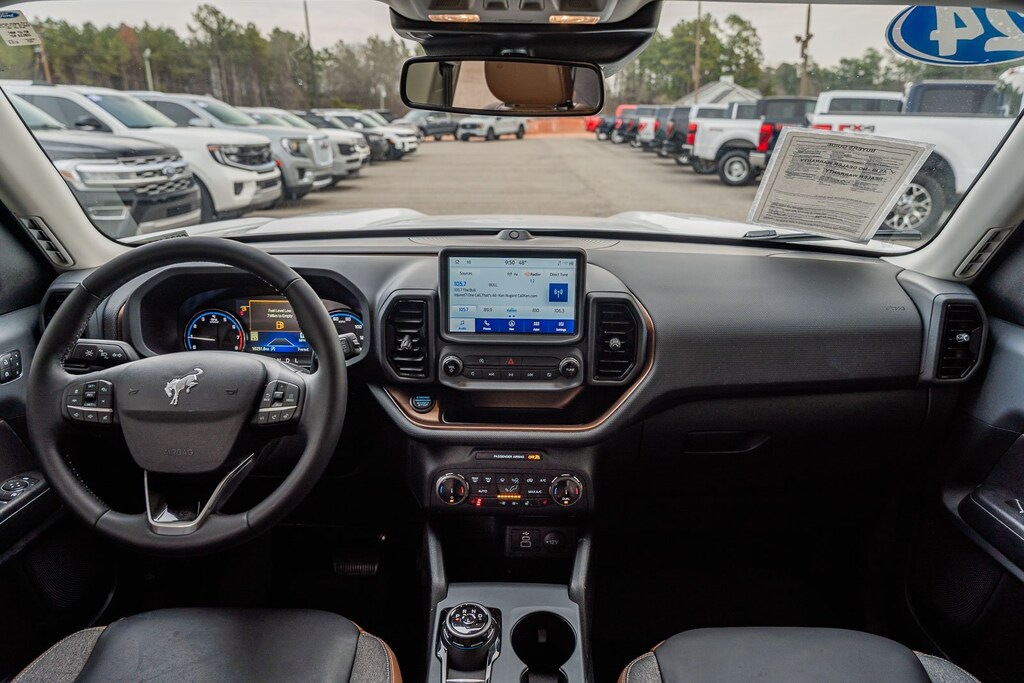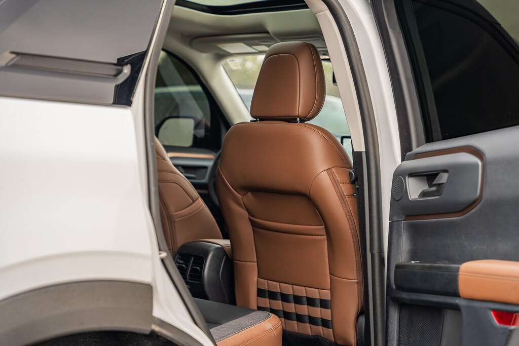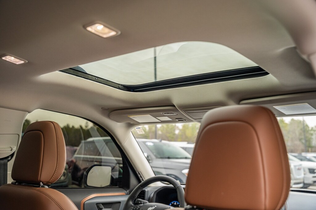 This vehicle comes equipped with Equipment Group 300A, Ford Co-Pilot360 Assist+ (Evasive Steering Assist, Intelligent Adaptive Cruise Control w/Stop & Go, and Voice-Activated Touchscreen Navigation System), Tech Package (HD Radio, Universal Garage Door Opener (UGDO), and Wireless Charging Pad), 3.80 Axle Ratio, 4-Wheel Disc Brakes, 6 Speakers, ABS brakes, Air Conditioning, Alloy wheels, AM/FM radio: SiriusXM, AM/FM Stereo, Auto High-beam Headlights, Auto-dimming Rear-View mirror, Automatic temperature control, Brake assist, Cargo Management System, Compass, Delay-off headlights, Driver door bin, Driver vanity mirror, Dual front impact airbags, Dual front side impact airbags, Electronic Stability Control, Emergency communication system: SYNC 3 911 Assist, Four wheel independent suspension, Front & Rear Floor Liners w/Carpet Mats, Front anti-roll bar, Front Bucket Seats, Front Center Armrest, Front dual zone A/C, Front fog lights, Front reading lights, Fully automatic headlights, Heated door mirrors, Heated front seats, Heated steering wheel, Illuminated entry, Knee airbag, Low tire pressure warning, Memory seat, Occupant sensing airbag, Outside temperature display, Overhead airbag, Overhead console, Panic alarm, Passenger door bin, Passenger vanity mirror, Power door mirrors, Power driver seat, Power Moonroof, Power passenger seat, Power steering, Power windows, Premium-Trimmed Heated Sport Contour Bucket Seats, Radio data system, Rain sensing wipers, Rear anti-roll bar, Rear Parking Sensors, Rear reading lights, Rear seat center armrest, Rear window defroster, Rear window wiper, Remote keyless entry, Security system, SiriusXM, Speed control, Speed-sensing steering, Speed-Sensitive Wipers, Split folding rear seat, Steering wheel mounted audio controls, SYNC 3 Communications & Entertainment System, Tachometer, Telescoping steering wheel, Tilt steering wheel, Traction control, Trip computer, Variably intermittent wipers, and Wheels: 18" Ebony Black-Painted Aluminum.