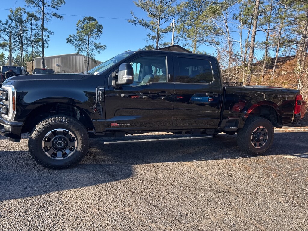 This vehicle comes equipped with 5th Wheel/Gooseneck Hitch Prep Package, Black Appearance Package (6" Ebony Black Angular Running Boards, Body Color Front & Rear Bumpers, Ebony Black Painted Front Grille Bars, Ebony Black Painted Mirror Caps, Rear Wheel Well Liners (Pre-Installed), Tough Bed Spray-In Bedliner, and Wheels: 20" Machined & Ebony Black High Gloss), F-250 >10K GVWR Package, High Capacity 11.6" Axle Upgrade Package, Lariat Ultimate Package (SiriusXM Radio w/360L, SYNC 4 w/Enhanced Voice Recognition, Tailgate Step & Handle, and Upfitter Switches (6)), Order Code 608A, 4WD, 190 Amp Alternator, 4-Wheel Disc Brakes, 8 Speakers, ABS brakes, Adjustable pedals, Air Conditioning, Alloy wheels, AM/FM radio: SiriusXM with 360L, Auto High-beam Headlights, Auto tilt-away steering wheel, Auto-dimming Rear-View mirror, Automatic temperature control, Brake assist, Bumpers: chrome, Compass, Delay-off headlights, Driver door bin, Driver vanity mirror, Dual 68 AH/65 AGM Batteries, Dual front impact airbags, Dual front side impact airbags, Electronic Stability Control, Emergency communication system: SYNC 4 911 Assist, Exterior Parking Camera Rear, Flow-Through Console, Front anti-roll bar, Front Bucket Seats, Front Center Armrest, Front dual zone A/C, Front fog lights, Front Leather-Trimmed 40/Console/40 Seats, Front reading lights, Fully automatic headlights, Garage door transmitter, Heated door mirrors, Heated front seats, Heated rear seats, Heated steering wheel, Illuminated entry, Leather steering wheel, LED Roof Clearance Lights, Low tire pressure warning, Memory seat, Navigation system: Connected Navigation (includes complimentary 1-year trial), Outside temperature display, Overhead airbag, Overhead console, Panic alarm, Passenger door bin, Passenger vanity mirror, Pedal memory, Power door mirrors, Power driver seat, Power passenger seat, Power steering, Power windows, Radio: B&O Sound System by Bang & Olufsen, Rain sensing wipers, Rear reading lights, Rear seat center armrest, Rear step bumper, Rear window defroster, Remote keyless entry, Security system, Speed control, Split folding rear seat, Steering wheel memory, Steering wheel mounted audio controls, Tachometer, Telescoping steering wheel, Tilt steering wheel, Traction control, Trip computer, Turn signal indicator mirrors, Twin Panel Power Moonroof, Variably intermittent wipers, Ventilated front seats, and Wheels: 18" Bright Machined & Carbonized Gray Alum.