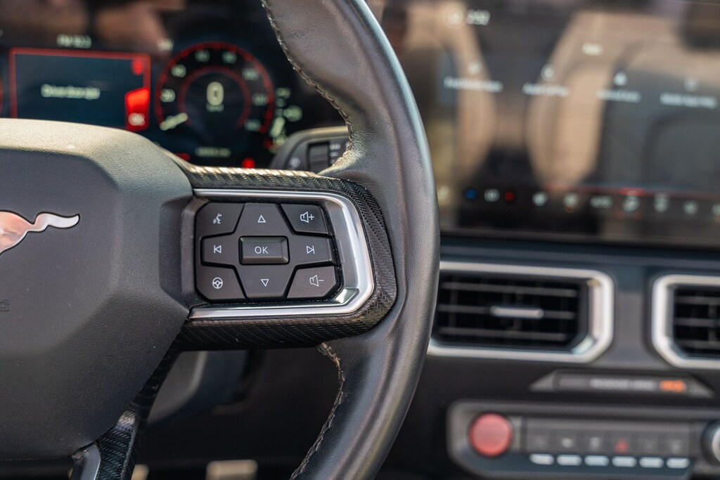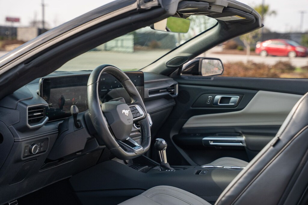 This Mustang EcoBoost Premium includes 4-Wheel Disc Brakes, 9 Speakers, ABS brakes, Air Conditioning, Alloy wheels, AM/FM radio: SiriusXM with 360L, AM/FM Stereo, Auto High-beam Headlights, Automatic temperature control, Brake assist, Bumpers: body-color, Compass, Convertible roof lining, Delay-off headlights, Driver door bin, Driver vanity mirror, Dual front impact airbags, Dual front side impact airbags, Electronic Stability Control, Emergency communication system: 911 Assist, Exterior Parking Camera Rear, Four wheel independent suspension, Front anti-roll bar, Front Bucket Seats, Front Center Armrest, Front dual zone A/C, Front reading lights, Fully automatic headlights, Glass rear window, Heated front seats, Illuminated entry, Knee airbag, Leather Shift Knob, Low tire pressure warning, Occupant sensing airbag, Outside temperature display, Overhead console, Panic alarm, Passenger door bin, Passenger vanity mirror, Power convertible roof, Power door mirrors, Power driver seat, Power steering, Power windows, Radio data system, Rain sensing wipers, Rear anti-roll bar, Rear Parking Sensors, Rear window defroster, Remote keyless entry, Security system, Speed control, Speed-sensing steering, Speed-Sensitive Wipers, Sport steering wheel, Steering wheel mounted audio controls, SYNC 4.0 QNX, Tachometer, Telescoping steering wheel, Tilt steering wheel, Traction control, Trip computer, Variably intermittent wipers, Voltmeter, and Wheels: 18" x 8" Machined-Face Aluminum . While every effort has been made to ensure display of accurate data, the vehicle listings within this web site may not reflect all accurate vehicle items. All Inventory listed is subject to prior sale. The vehicle photo displayed may be an example only. Pricing throughout the web site does not include any options that may have been installed at the dealership. Please see the dealer for details. Vehicles may be in transit or currently in production. Some vehicles are shown with optional equipment. See the actual vehicle for complete accuracy of features, options & pricing. Because of the numerous possible combinations of vehicle models, styles, colors and options, the vehicle pictures on this site may not match your vehicle exactly; however, it will match as closely as possible. Some vehicle images shown are stock photos and may not reflect your exact choice of vehicle, color, trim and specification. Not responsible for pricing or typographical errors. Virtual Inventory, Available Configurations and In-Transit inventory contains vehicles that have not actually been manufactured. These vehicles show consumers sample vehicles that may be available. Pricing, Options, Color, and other data pertaining to these vehicles are provided for example only. All information pertaining to these vehicles should be independently verified through the dealer. 22/33 City/Highway MPG