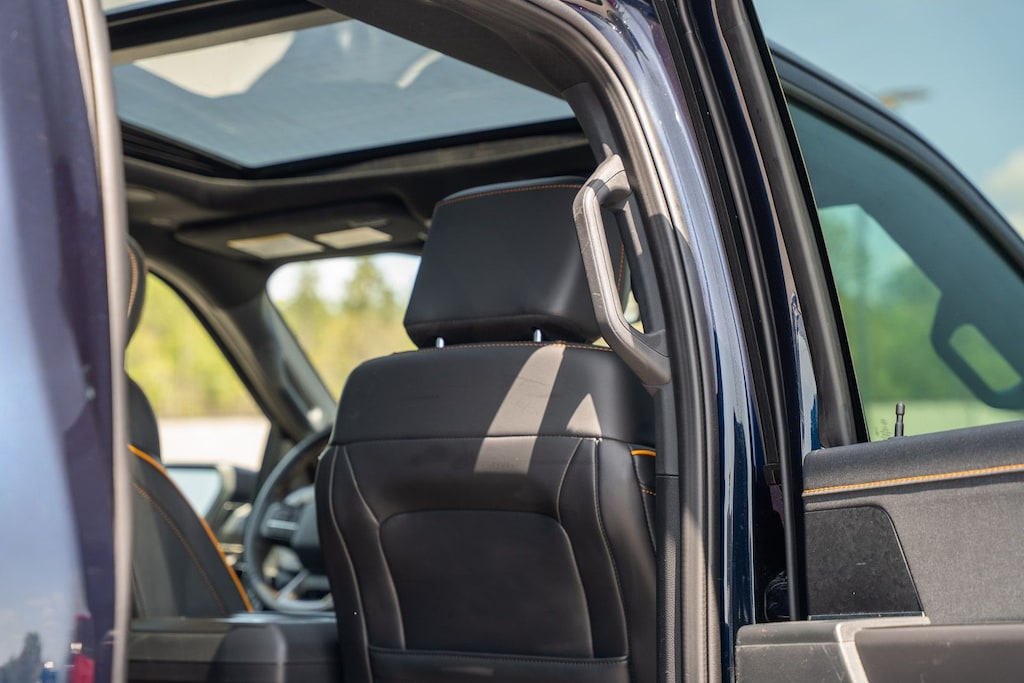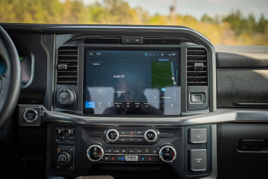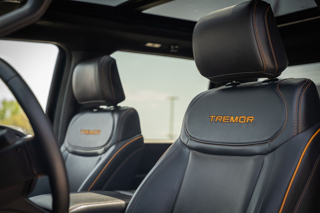 This vehicle comes equipped with Bed Utility Package (4 Pickup Box Tie-Down Plates, LED Box Lighting, and Power Tailgate), Equipment Group 402A High (2nd Row Heated Seats, Ambient Lighting, Auto-Dimming Rear-View Mirror, Front Axle w/Torsen Differential, Heads-Up Display, Heated Steering Wheel, LED Taillamps, Media Bin Door, Modular Front Bumper & Carbon Black Rear Bumper, Power Glass Heated Sideview Mirrors, Power-Adjustable Pedals w/Memory, Premium Wrapped Steering Wheel, Radio: B&O Unleashed Sound System by Bang & Olufsen, Rain-Sensing Wipers, Two-Speed Automatic AWD w/Mechanical Locking 4WD, Unique Tremor Leather-Trimmed Bucket Seats, and Universal Garage Door Opener), GVWR: 7,100 lbs Payload Package, Mobile Office Package (Console Worksurface, Partitioned Lockable Rear Storage, and Wireless Charging), Tow/Haul Package (Integrated Trailer Brake Controller), Ford Gold Certified Certified, 4WD, 4-Wheel Disc Brakes, 8 Speakers, ABS brakes, Adjustable pedals, Air Conditioning, Alloy wheels, AM/FM radio: SiriusXM with 360L, Auto High-beam Headlights, Auto-dimming door mirrors, Auto-dimming Rear-View mirror, Automatic temperature control, Brake assist, Bumpers: body-color, Compass, Delay-off headlights, Driver door bin, Driver vanity mirror, Dual front impact airbags, Dual front side impact airbags, Electronic Locking w/3.73 Axle Ratio, Electronic Stability Control, Emergency communication system: SYNC 4 911 Assist, Front anti-roll bar, Front Bucket Seats, Front Center Armrest, Front dual zone A/C, Front fog lights, Front reading lights, Front wheel independent suspension, Fully automatic headlights, Heated door mirrors, Heated front seats, Illuminated entry, Internet access capable: FordPass Connect 5G, Low tire pressure warning, Navigation system: Connected Navigation, Occupant sensing airbag, Outside temperature display, Overhead airbag, Overhead console, Panic alarm, Passenger door bin, Passenger vanity mirror, Power door mirrors, Power driver seat, Power passenger seat, Power steering, Power windows, Radio data system, Radio: B&O Sound System by Bang & Olufsen, Rear reading lights, Rear step bumper, Rear window defroster, Remote keyless entry, Retractable Rear Center Step, Security system, Speed control, Split folding rear seat, Steering wheel mounted audio controls, SYNC 4 w/Enhanced Voice Recognition, Tachometer, Tailgate Step w/Tailgate Work Surface, Telescoping steering wheel, Tilt steering wheel, Tough Bed Spray-In Bedliner, Traction control, Trip computer, Turn signal indicator mirrors, Twin Panel Moonroof, Unique Sport Cloth 40/Console/40 Power Front Seat, Variably intermittent wipers, Voltmeter, and Wheels: 18" Alloy w/Dark Matte Finish.