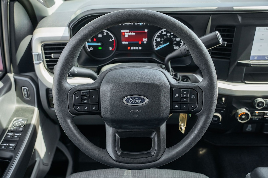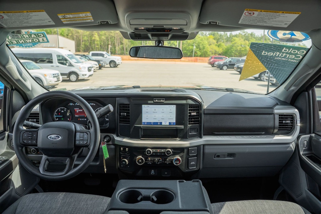 This vehicle comes equipped with 360-Degree Camera Package (360-Degree Camera, BLIS with Cross-Traffic Alert, LED Center High-Mounted Stop Lamp (CHMSL) Camera, and Rear Parking Sensors), FX4 Off-Road Package (Hill Descent Control, Off-Road Specifically Tuned Shock Absorbers, and Unique FX4 Off-Road Box Decal), GVWR: 10,000 Lb Payload Package, Order Code 603A (3.73 Axle Ratio, Cloth 40/20/40 Split Bench Seat, Radio: AM/FM Stereo with MP3 Player, SYNC 4, and Wheels: 18" Sparkle Silver Painted Cast Aluminum), Ford Gold Certified Certified, 4WD, 4-Wheel Disc Brakes, 6 Speakers, ABS brakes, Air Conditioning, Alloy wheels, AM/FM radio, Auto High-beam Headlights, Brake assist, Bumpers: chrome, Compass, Defrost with Fixed and Privacy Glass, Delay-off headlights, Driver door bin, Driver vanity mirror, Dual AGM 68 AH Battery, Dual front impact airbags, Dual front side impact airbags, Electronic Stability Control, Electronic-Locking with 3.31 Axle Ratio, Emergency communication system: SYNC 4 911 Assist, Exterior Parking Camera Rear, Front anti-roll bar, Front Center Armrest w/Storage, Front fog lights, Front reading lights, Fully automatic headlights, Heated door mirrors, Illuminated entry, Internet access capable: FordPass Connect 5G, Low tire pressure warning, Onboard Scales and Smart Hitch, Outside temperature display, Overhead airbag, Overhead console, Panic alarm, Passenger door bin, Passenger vanity mirror, Power door mirrors, Power driver seat, Power steering, Power windows, Power-Sliding Rear-Window with Defrost, Privacy Glass, Rear reading lights, Rear step bumper, Remote keyless entry, Remote Start System, Security system, Speed control, Split folding rear seat, Steering wheel mounted audio controls, Tachometer, Telescoping steering wheel, Tilt steering wheel, Traction control, Trip computer, Turn signal indicator mirrors, and Variably intermittent wipers.