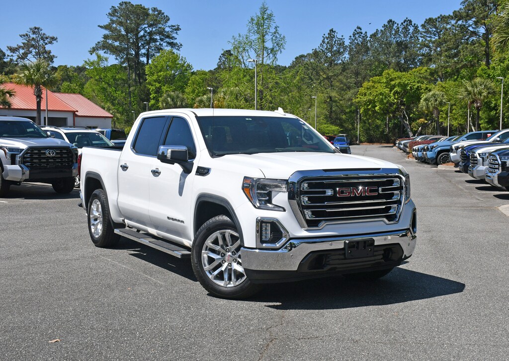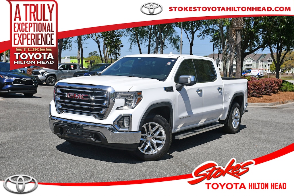 ***Stokes Toyota Hilton Head*** 2019 GMC Sierra 1500 SLT in Summit White, factory Equipped With. 12-Volt Rear Auxiliary Power Outlet, 120-Volt Bed Mounted Power Outlet, 120-Volt Instrument Panel Power Outlet, 170 Amp Alternator, 2 USB Ports, 2 USB Ports (1st Row), Auxiliary External Transmission Oil Cooler, Chrome Assist Steps, Chrome Grille, Color-Keyed Carpeting Floor Covering, Compass, Deep-Tinted Glass, Driver Alert Package I, Driver Alert Package II, Electric Rear-Window Defogger, Electrical Lock Control Steering Column, Floor Mounted Console, Following Distance Indicator, Forward Collision Alert, Front Bucket Seats, Front Frame-Mounted Black Recovery Hooks, Front Pedestrian Braking, GMC 4G LTE, GMC Connected Access, HD Radio, Heated 2nd Row Outboard Seats, Heated Driver & Front Passenger Seating, Heavy-Duty Rear Locking Differential, Hitch Guidance, Hitch Guidance w/Hitch View, In-Vehicle Trailering App, Integrated Trailer Brake Controller, IntelliBeam Automatic High Beam On/Off, Keyless Open & Start, Lane Change Alert w/Side Blind Zone Alert, Lane Keep Assist w/Lane Departure Warning, LED Cargo Area Lighting, Low Speed Forward Automatic Braking, Manual Tilt-Wheel & Telescoping Steering Column, OnStar & GMC Connected Services Capable, Perimeter Lighting, Power Door Locks, Power Front Passenger Windows w/Express Up/Down, Power Front Windows w/Driver Express Up/Down, Power Rear Windows w/Express Down, Power Sliding Rear Window w/Rear Defogger, Preferred Equipment Group 4SA, Premium Bose 7-Speaker Sound System, Radio: Premium GMC Infotainment Sys w/Navigation, Rear Cross Traffic Alert, Rear Dual USB Charging-Only Ports, Rear Wheelhouse Liners, Remote Vehicle Starter System, Safety Alert Seat, SiriusXM Radio, SLT Convenience Package, SLT Preferred Package, SLT Premium Plus Package, Spray-On Pickup Bed Liner w/GMC Logo, Steering Wheel Audio Controls, Theft Deterrent System (Unauthorized Entry), Trailer Tire Pressure Monitor System, Trailering Package, Ultrasonic Front & Rear Park Assist, Universal Home Remote, Ventilated Driver & Front Passenger Seats, Wireless Charging.