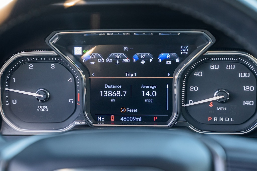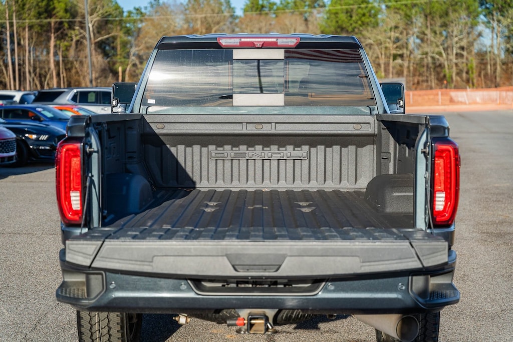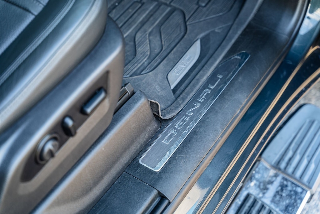 This vehicle comes equipped with Driver Alert Package I (Lane Change Alert w/Side Blind Zone Alert and Rear Cross Traffic Alert), Driver Alert Package II (Automatic Emergency Braking, Following Distance Indicator, Forward Collision Alert, IntelliBeam Automatic High Beam On/Off, and Lane Departure Warning System), Gooseneck/5th Wheel Prep Package, Preferred Equipment Group 5SA (12-Volt Rear Auxiliary Power Outlet, 120-Volt Bed Mounted Power Outlet, 120-Volt Instrument Panel Power Outlet, 2 USB Ports, 2 USB Ports (1st Row), 2-Speed Active Transfer Case, 2nd Row Dual USB Charge-Only Ports, 6" Rectangular Chromed Tubular Assist Steps, Bed View Camera w/2 Trailer Camera Provisions, Compass Located In Instrument Cluster, Deep-Tinted Glass, Electric Rear-Window Defogger, Electrical Lock Control Steering Column, Floor-Mounted Center Console, Front Chrome Recovery Hooks, GMC Connected Access Capable, HD Surround Vision w/2 Trailer View Camera Provisions, Heated & Ventilated Front Bucket Seats, Heated Driver & Front Outboard Passenger Seats, Integrated Trailer Brake Controller, Keyless Open & Start, LED Cargo Area Lighting, LED Smoked Amber Roof Marker Lamps, Manual Tilt-Wheel/Telescoping Steering Column, OnStar & GMC Connected Services Capable, Polished Exhaust Tip, Power Door Locks, Power Front Passenger Windows w/Express Up/Down, Power Rear Windows w/Express Down, Power Sliding Rear Window w/Defogger, Power Windows w/Driver Express Up/Down, Rear Wheelhouse Liners, Remote Vehicle Starter System, Safety Alert Seat, Signature Denali Grille, Spray-On Pickup Box Bed Liner w/Denali Logo, Steering Wheel Audio Controls, Unauthorized Entry Theft-Deterrent System, Universal Home Remote, Wi-Fi Hotspot Capable, Wireless Charging, and Wireless Phone Projection), X31 Off-Road Package (Hill Descent Control), 10-Speed Automatic, 4WD, Jet Black Leather, 10-Way Power Driver Seat Adjuster w/Lumbar, 10-Way Power Passenger Seat Adjuster w/Lumbar, 220 Amps Alternator, 4-Wheel Disc Brakes, 7 Speakers, ABS brakes, Air Conditioning, Alloy wheels, AM/FM radio: SiriusXM with 360L, Apple CarPlay/Android Auto, Auto High-beam Headlights, Auto-dimming door mirrors, Auto-dimming Rear-View mirror, Automatic temperature control, Bose Premium 7 Speaker Sound System, Brake assist, Bumpers: body-color, Compass, Delay-off headlights, Driver door bin, Driver Memory, Driver vanity mirror, Dual front impact airbags, Dual front side impact airbags, Electronic Stability Control, Emergency communication system: OnStar and GMC Connected Services capable, Engine Block Heater, Exhaust Brake, Exterior Parking Camera Rear, Forge Perforated Leather-Appointed Front Seat Trim, Front anti-roll bar, Front Bucket Seats, Front Center Armrest, Front dual zone A/C, Front fog lights, Front License Plate Kit, Front reading lights, Front wheel independent suspension, Fully automatic headlights, Garage door transmitter, Genuine wood console insert, Genuine wood door panel insert, Heated door mirrors, Heated front seats, Heated steering wheel, Heavy-Duty 80 Amp Battery, Hitch Guidance w/Hitch View, Illuminated entry, In-Vehicle Trailering System App, Low tire pressure warning, Memory seat, Navigation System, Not Equipped w/Heated 2nd Row Outboard Seats, Occupant sensing airbag, Off-Road Suspension, Outside temperature display, Overhead airbag, Overhead console, Panic alarm, Passenger door bin, Passenger vanity mirror, Pickup Box, Power door mirrors, Power driver seat, Power passenger seat, Power steering, Power Sunroof, Power windows, Premium audio system: Premium GMC Infotainment System, Radio: AM/FM w/Prem GMC Infotainment System & Navi, Rear reading lights, Rear seat center armrest, Rear step bumper, Rear window defroster, Remote keyless entry, Security system, SiriusXM w/360L, Speed control, Speed-sensing steering, Split folding rear seat, Steering wheel mounted audio controls, Tachometer, Telescoping steering wheel, Tilt steering wheel, Tra