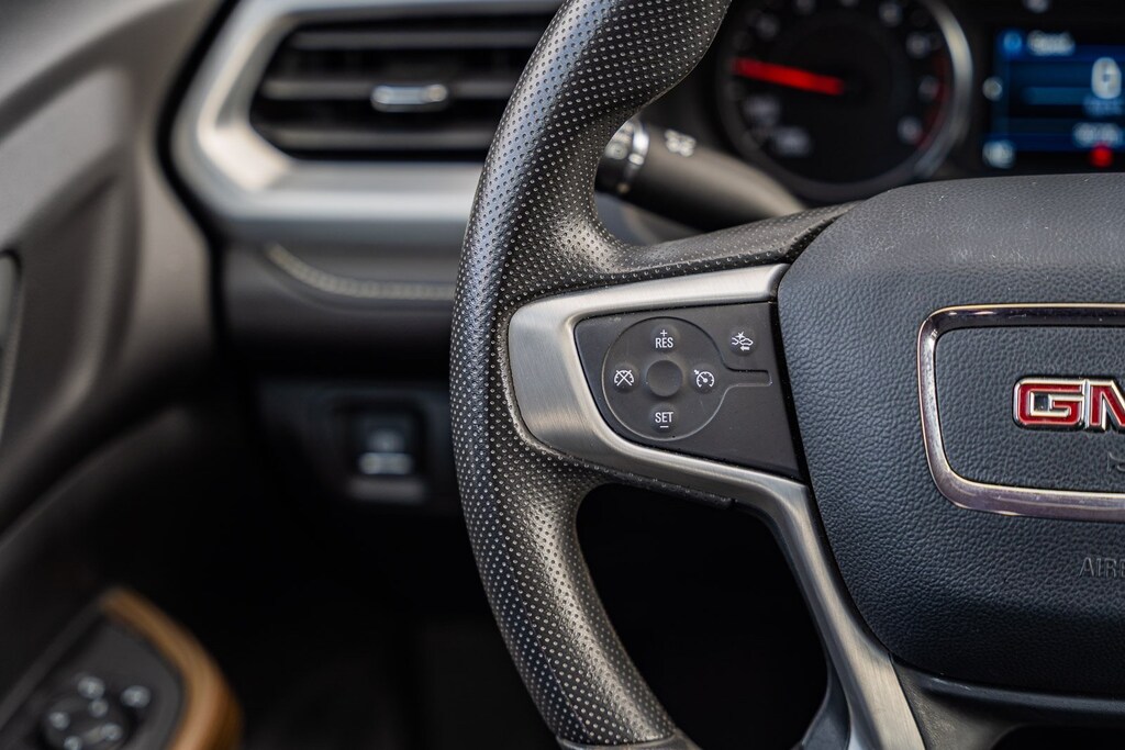 This vehicle comes equipped with Driver Convenience Package (120-Volt Power Outlet, 8-Way Power Driver Seat Adjuster, Brushed Aluminum Roof Rails, Hands Free Power Programmable Liftgate, Heated Driver & Front Passenger Seats, Power Driver Lumbar Control Seat Adjuster, and Remote Start), Elevation Edition (20" Machined Aluminum Wheels and Gloss Black Roof Rails), Preferred Equipment Group 3SA, GM Certified, FWD, Jet Black Cloth, 3.47 Final Drive Axle Ratio, 3rd row seats: split-bench, 4-Way Manual Driver Seat Adjuster, 4-Way Manual Passenger Seat Adjuster, 4-Wheel Disc Brakes, 6 Speakers, 6-Passenger (2-2-2 Seating Configuration), 6-Speaker Audio System Feature, ABS brakes, Air Conditioning, Alloy wheels, AM/FM radio: SiriusXM, Apple CarPlay/Android Auto, Auto High-beam Headlights, Automatic temperature control, Brake assist, Bumpers: body-color, Compass, Delay-off headlights, Driver door bin, Driver vanity mirror, Dual front impact airbags, Dual front side impact airbags, Electronic Stability Control, Emergency communication system: OnStar and GMC connected services capable, Four wheel independent suspension, Front & Rear Black GMC Lettering Emblems, Front anti-roll bar, Front Bucket Seats, Front Center Armrest, Front dual zone A/C, Front reading lights, Fully automatic headlights, Heated door mirrors, Illuminated entry, Knee airbag, Low tire pressure warning, Not Equipped w/Front & Rear Park Assist (060), Occupant sensing airbag, Outside temperature display, Overhead airbag, Overhead console, Panic alarm, Passenger door bin, Passenger vanity mirror, Power door mirrors, Power steering, Power windows, Premium Cloth Seat Trim, Radio data system, Radio: AM/FM w/8" Diagonal Multi-Touch Display, Rear air conditioning, Rear anti-roll bar, Rear reading lights, Rear window defroster, Rear window wiper, Remote keyless entry, Security system, SiriusXM Radio, Speed control, Speed-sensing steering, Spoiler, Steering wheel mounted audio controls, Tachometer, Telescoping steering wheel, Tilt steering wheel, Traction control, Trip computer, Turn signal indicator mirrors, Variably intermittent wipers, Voltmeter, Wheels: 18" Machined Aluminum w/Dark Accents, and Wireless Apple CarPlay/Wireless Android Auto.