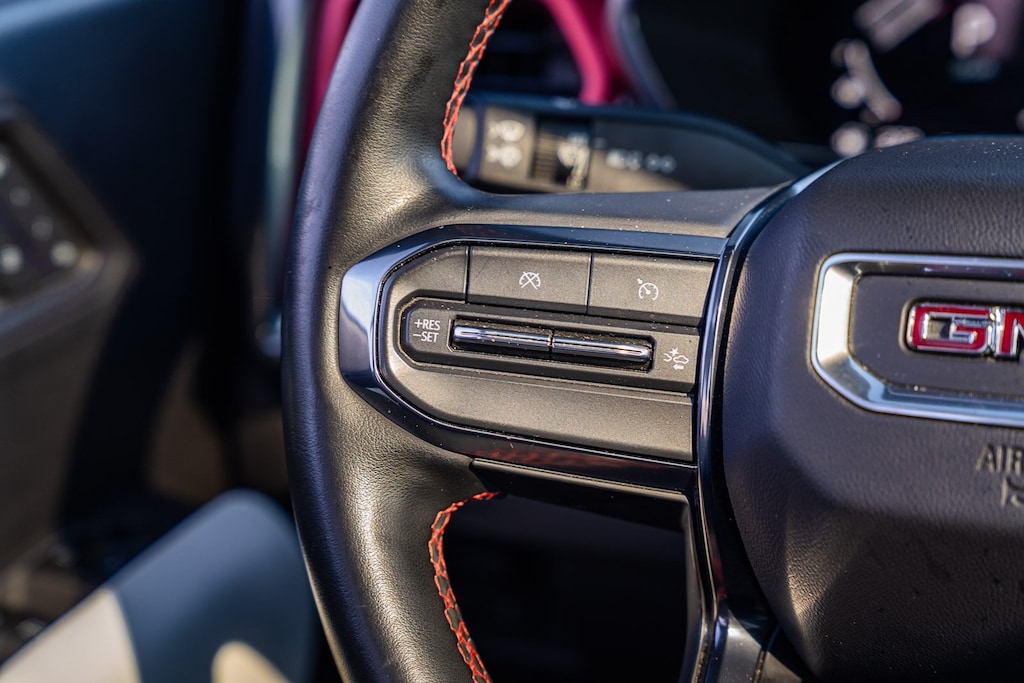 This vehicle comes equipped with Preferred Equipment Group 4TX (120-Volt Bed Mounted Power Outlet, 2 Rear USB Ports in Center Console (Charge-Only), 220 Amps Alternator, 6-Way Power Passenger Seat Adjuster, 8-Way Power Driver Seat Adjuster, Adaptive Cruise Control, Automatic Emergency Braking, Blind Zone Steering Assist, Canyon Pro Safety, Driver & Front Passenger Illuminated Visors, Driver & Front Passenger Ventilated Seats, Driver Memory, Driver Seatback Map Pocket, Driver-Selectable Full-Locking Front Differential, Driver-Selectable Full-Locking Rear Differential, Dual-Zone Automatic Air Conditioning, EZ-Lift & Lower Tailgate, Following Distance Indicator, Forward Collision Alert, Front LED Fog Lamps, Front Pedestrian & Bicyclist Braking, HD Surround Vision, Heated Driver & Front Passenger Seats, Heated Power-Adjustable Outside Mirrors, Heated Steering Wheel, Inside Rear-View Auto-Dimming Mirror, Integrated Trailer Brake Controller, IntelliBeam Automatic High Beam On/Off, Interior Overhead Courtesy Light w/Dual Reading Lamp, Lane Keep Assist w/Lane Departure Warning, Manual Rear-Sliding Window, Multicolor 6.3" Diagonal Head-Up Display, MultiStow Tailgate, Power Driver Lumbar Control Seat Adjuster, Power Passenger Lumbar Control Seat Adjuster, Premium 7-Speaker Bose Sound System, Rear Center Fold-Down Armrest w/2 Cupholders, Rear Cross Traffic Braking, Rear of Console 120-Volt Power Outlet, Rear Pedestrian Alert, Rear-Window Electric Defogger, Remote Vehicle Starter System, Safety Alert Seat, Spray-On Bedliner, Tailgate Keyed Cylinder Lock, Tilt & Telescopic Manual Steering Column, Trailering App System, Ultrasonic Rear Park Assist, and Wireless Charging), Trailering Package, 4WD, 2 1st Row USB Charge/Data Ports, 3.42 Rear Axle Ratio, 4-Wheel Disc Brakes, 7 Speakers, ABS brakes, Air Conditioning, Alloy wheels, AM/FM radio: SiriusXM, Apple CarPlay/Android Auto, Auto High-beam Headlights, Auto-dimming Rear-View mirror, Automatic Stop/Start, Automatic temperature control, Black Badges (LPO), Brake assist, Bumpers: body-color, Compass, Delay-off headlights, Driver door bin, Driver Mode Selector, Driver vanity mirror, Dual front impact airbags, Dual front side impact airbags, Electronic Stability Control, Front anti-roll bar, Front Bucket Seats, Front Center Armrest, Front dual zone A/C, Front fog lights, Front License Plate Kit, Front Passenger Seatback Map Pocket, Front reading lights, Front wheel independent suspension, Heads-Up Display, Heated door mirrors, Heated front seats, Heated steering wheel, Illuminated entry, Low tire pressure warning, Memory seat, Navigation System, Occupant sensing airbag, Outside temperature display, Overhead airbag, Overhead console, Panic alarm, Passenger door bin, Passenger vanity mirror, Perforated Leather-Appointed Seat Trim, Power door mirrors, Power driver seat, Power Inner Sliding Glass Sunroof w/Manual Shade, Power passenger seat, Power steering, Power windows, Radio data system, Radio: 11.3" Diagonal Premium GMC Infotainment Sys, Rear reading lights, Rear seat center armrest, Rear step bumper, Rear window defroster, Remote keyless entry, Removable Off-Road Assist Steps (LPO), Security system, SiriusXM w/360L, Speed control, Speed-sensing steering, Split folding rear seat, Steering wheel mounted audio controls, Stop/Start System Disable Button Engine Control, Tachometer, Telescoping steering wheel, Tilt steering wheel, Traction control, Trip computer, Variably intermittent wipers, Ventilated front seats, Wheels: 17" x 8" Black High Gloss Machined Finish, and Wireless Apple CarPlay/Wireless Android Auto.