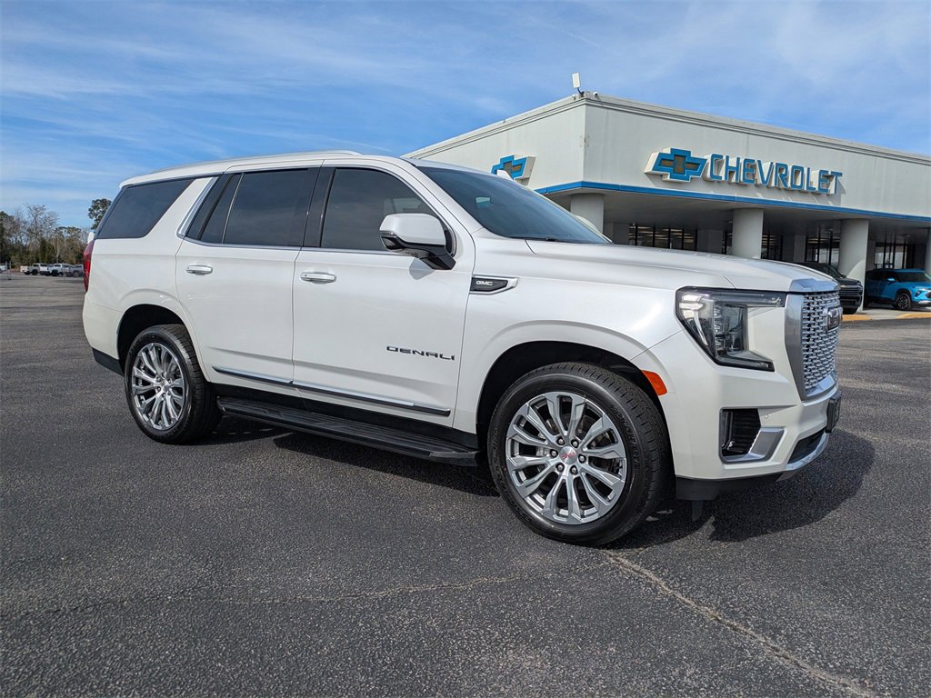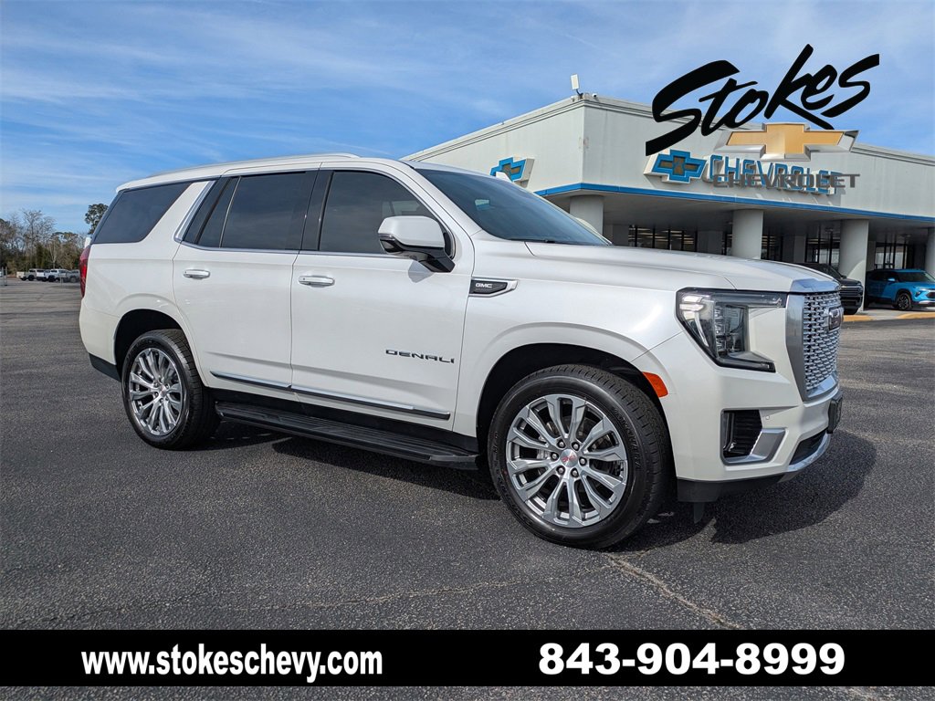 NAVIGATION SYSTEM, BACKUP CAMERA, AGGRESSIVE PRICING, ALLOY WHEELS, BLUETOOTH, CLIMATE PACKAGE, HEAT PACKAGE, LEATHER SEATS, MEMORY PACKAGE, POWER PACKAGE, REMOTE START, SUNROOF/MOONROOF, TECHNOLOGY PACKAGE, 4WD. White Frost Tricoat 2023 GMC Yukon Denali 4WD 10-Speed Automatic with Overdrive EcoTec3 6.2L V8
