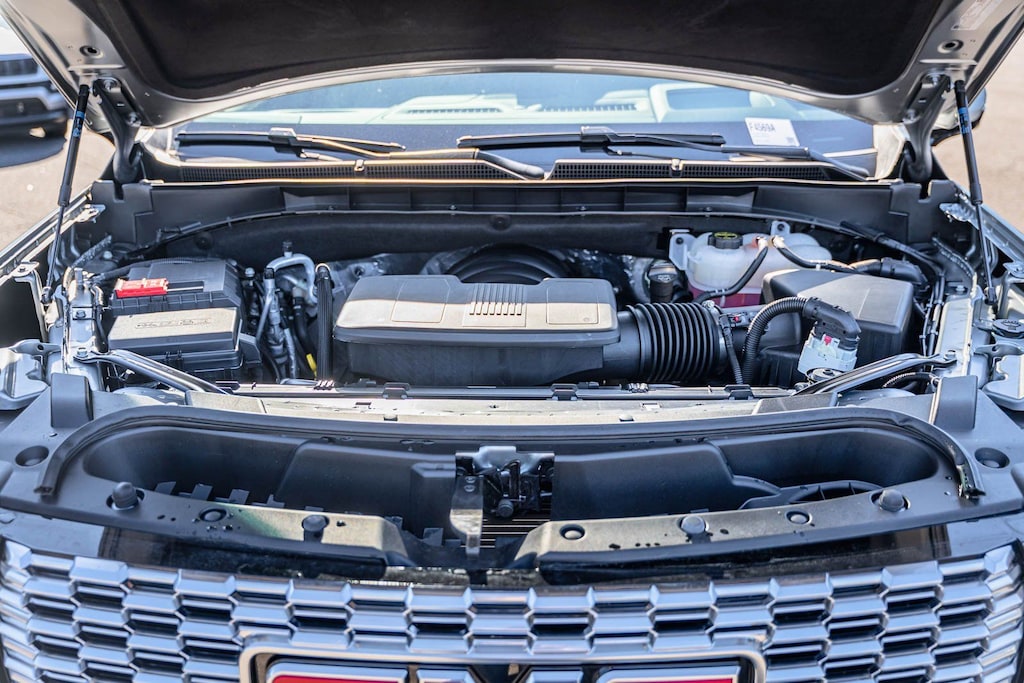 This vehicle comes equipped with License Plate Front Mounting Package, Max Trailering Package, Preferred Equipment Group 5SA (12-Way Power Seat Adjusters, 15" Diagonal Multi-Color Head-Up Display, 2 Presets For Outside Rearview Mirrors, 3rd Row 60/40 Power-Folding Split-Bench Seat, Adaptive Cruise Control, Bose 14-Speaker Surround w/CenterPoint, Bright Front & Rear Door Sill Plates, Chrome Door Handles w/Body-Color Strip, Dual Exhaust System, Enhanced Automatic Emergency Braking, Floor Console, Galvano Bodyside Moldings, Hands-Free Power Programmable Rear Liftgate, HD Surround Vision, Heated 2nd Row Outboard Position Seats, Heated Driver & Front Passenger Seats, Heated Steering Wheel, Hill Descent Control, Inside Rear-View Auto-Dimming Mirror, Outside Heated Power-Adjustable Mirrors, Perforated Heated & Ventilated Dr & Frt Pass Seats, Power Release 2nd Row Bucket Seats, Power Tilt & Telescopic Steering Column, Rear Pedestrian Alert, Safety Alert Seat, Universal Home Remote, and Wireless Charging), 4WD, 14 Speakers, 3.23 Rear Axle Ratio, 3rd row seats: split-bench, 4-Wheel Disc Brakes, ABS brakes, Adaptive suspension, Air Conditioning, Alloy wheels, AM/FM radio: SiriusXM with 360L, AM/FM Stereo, Apple CarPlay/Android Auto, Auto High-beam Headlights, Auto-dimming door mirrors, Auto-dimming Rear-View mirror, Auto-leveling suspension, Automatic Emergency Braking, Automatic temperature control, Bodyside moldings, Brake assist, Bumpers: body-color, Compass, Delay-off headlights, Driver door bin, Driver vanity mirror, Dual front impact airbags, Dual front side impact airbags, Dual-Pane Panoramic Power Sunroof, Electronic Stability Control, Emergency communication system: OnStar and GMC connected services capable, Extra Capacity Cooling System, Following Distance Indicator, Forward Collision Alert, Four wheel independent suspension, Front & Rear Park Assist, Front anti-roll bar, Front Bucket Seats, Front Center Armrest, Front dual zone A/C, Front fog lights, Front Pedestrian Braking, Front reading lights, Fully automatic headlights, Garage door transmitter, Heads-Up Display, Heated door mirrors, Heated front seats, Heated rear seats, Heated steering wheel, Hitch View, Illuminated entry, Integrated Trailer Brake Controller, IntelliBeam Automatic High Beam On/Off, Lane Change Alert w/Side Blind Zone Alert, Lane Keep Assist w/Lane Departure Warning, Low tire pressure warning, Magnetic Ride Control Suspension, Memory seat, Navigation System, Occupant sensing airbag, Outside temperature display, Overhead airbag, Overhead console, Panic alarm, Passenger door bin, Passenger vanity mirror, Perforated Leather Seating Surfaces, Power door mirrors, Power driver seat, Power Liftgate, Power passenger seat, Power steering, Power windows, Power-Retractable Assist Steps, Rain sensing wipers, Rear air conditioning, Rear anti-roll bar, Rear Cross Traffic Alert, Rear reading lights, Rear window defroster, Rear window wiper, Remote keyless entry, Roof rack: rails only, Security system, SiriusXM w/360L, Smart Trailer Integration Indicator, Speed control, Speed-sensing steering, Split folding rear seat, Spoiler, Steering wheel memory, Steering wheel mounted audio controls, Tachometer, Telescoping steering wheel, Tilt steering wheel, Traction control, Trailer Side Blind Zone Alert, Trip computer, Turn signal indicator mirrors, Variably intermittent wipers, Ventilated front seats, Voltmeter, Wheel Locks (Set of 4) (LPO), Wheels: 20" x 9" 6-Spoke Polished Aluminum, and Wheels: 22" x 9" Bright Machined Aluminum.