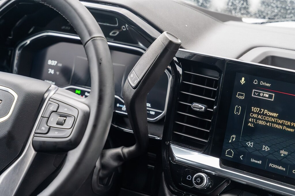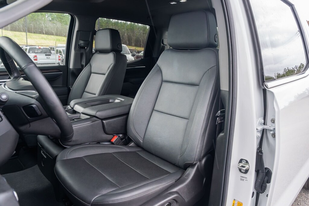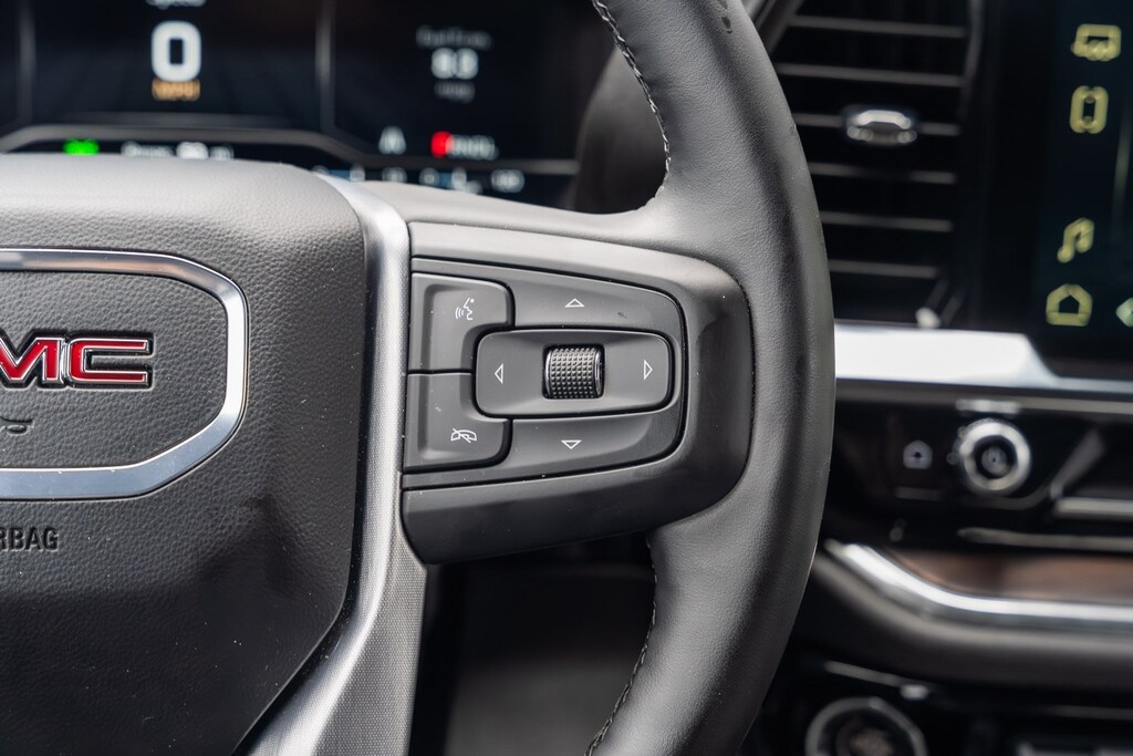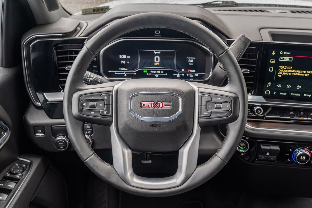 This vehicle comes equipped with Preferred Equipment Group 4SA (120-Volt Bed Mounted Power Outlet, 120-Volt Interior Power Outlet, 170 Amp Alternator, 2 Charge/Data USB Ports, 2 Type-C Charge-Only Rear USB Ports, 6-Speaker Audio System Feature, Auto-Locking Rear Differential, Auxiliary External Transmission Oil Cooler, Chrome Header & Chrome Grille Insert Bars, Color-Keyed Carpeting Floor Covering, Deep-Tinted Glass, Electric Rear-Window Defogger, Front Frame-Mounted Black Recovery Hooks, Front Rain-Sensing Wipers, HD Rear Vision Camera, Integrated Trailer Brake Controller, Keyless Open & Start, LED Cargo Area Lighting, Manual Tilt-Wheel & Telescoping Steering Column, OnStar Services Capable, Perimeter Lighting, Power Door Locks, Power Front Passenger Windows w/Express Up/Down, Power Front Windows w/Driver Express Up/Down, Power Rear Windows w/Express Down, Push Button Start, Rear Wheelhouse Liners, Remote Vehicle Starter System, SiriusXM w/360L Trial Subscription, Steering Wheel Audio Controls, Theft Deterrent System (Unauthorized Entry), and Wi-Fi Hotspot Capable), Standard Suspension Package, Trailering Package (Hitch Guidance), 10-Speed Automatic, Black Leather, 10-Way Power Driver Seat Adjuster w/Lumbar, 10-Way Power Passenger Seat Adjuster w/Lumbar, 3.23 Rear Axle Ratio, 4-Wheel Disc Brakes, 6 Speakers, ABS brakes, Air Conditioning, Alloy wheels, AM/FM radio: SiriusXM with 360L, Apple CarPlay/Android Auto, Auto High-beam Headlights, Auto-dimming door mirrors, Auto-dimming Rear-View mirror, Automatic Emergency Braking, Automatic temperature control, Brake assist, Buckle to Drive, Bumpers: chrome, Compass, Delay-off headlights, Driver door bin, Driver Memory, Driver vanity mirror, Dual front impact airbags, Dual front side impact airbags, Electronic Stability Control, Emergency communication system: OnStar, Following Distance Indicator, Forward Collision Alert, Front 40/20/40 Split-Bench Seat, Front anti-roll bar, Front Center Armrest w/Storage, Front dual zone A/C, Front fog lights, Front Pedestrian Braking, Front reading lights, Front wheel independent suspension, Fully automatic headlights, Heated door mirrors, Heated Driver & Front Outboard Passenger Seating, Heated front seats, Heated steering wheel, Illuminated entry, IntelliBeam Automatic High Beam On/Off, Lane Keep Assist w/Lane Departure Warning, Low tire pressure warning, Memory seat, Navigation System, Occupant sensing airbag, Outside temperature display, Overhead airbag, Overhead console, Panic alarm, Passenger door bin, Passenger vanity mirror, Perf Leather-Appointed Front Outboard Seat Trim, Power door mirrors, Power driver seat, Power passenger seat, Power steering, Power windows, Radio data system, Radio: Premium GMC Infotainment Audio System, Rain sensing wipers, Rear reading lights, Rear seat center armrest, Rear step bumper, Rear window defroster, Remote keyless entry, Security system, Speed control, Speed-sensing steering, Split folding rear seat, Steering wheel mounted audio controls, Tachometer, Telescoping steering wheel, Tilt steering wheel, Traction control, Trip computer, Variably intermittent wipers, Voltmeter, Wheels: 18" x 8.5" 6-Spoke Machined Aluminum, and Wireless Apple CarPlay/Wireless Android Auto.