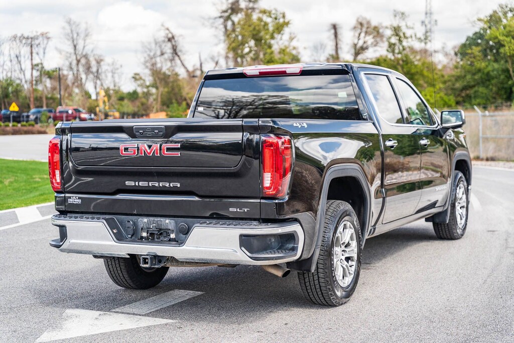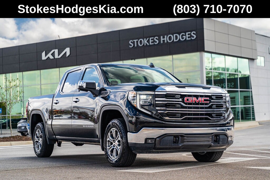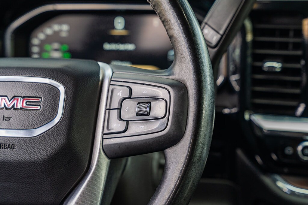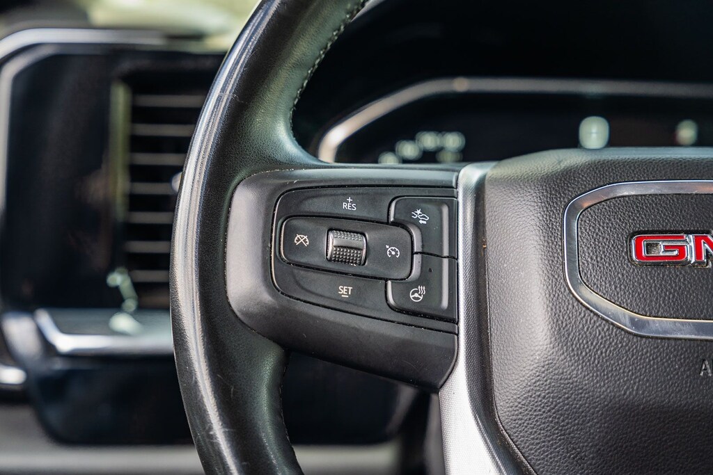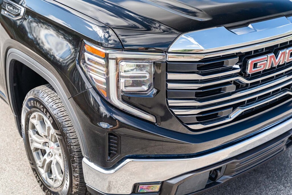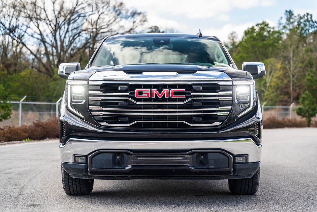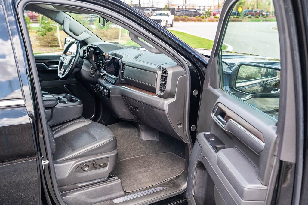 This Sierra 1500 SLT includes Preferred Equipment Group 4SA (120-Volt Bed Mounted Power Outlet, 120-Volt Interior Power Outlet, 170 Amp Alternator, 2 Charge/Data USB Ports, 2 Type-C Charge-Only Rear USB Ports, 6-Speaker Audio System Feature, Auto-Locking Rear Differential, Auxiliary External Transmission Oil Cooler, Chrome Header & Chrome Grille Insert Bars, Color-Keyed Carpeting Floor Covering, Deep-Tinted Glass, Electric Rear-Window Defogger, Front Frame-Mounted Black Recovery Hooks, Front Rain-Sensing Wipers, HD Rear Vision Camera, Integrated Trailer Brake Controller, Keyless Open & Start, LED Cargo Area Lighting, Manual Tilt-Wheel & Telescoping Steering Column, OnStar Services Capable, Perimeter Lighting, Power Door Locks, Power Front Passenger Windows w/Express Up/Down, Power Front Windows w/Driver Express Up/Down, Power Rear Windows w/Express Down, Push Button Start, Rear Wheelhouse Liners, Remote Vehicle Starter System, SiriusXM w/360L Trial Subscription, Steering Wheel Audio Controls, Theft Deterrent System (Unauthorized Entry), and Wi-Fi Hotspot Capable), Standard Suspension Package, Trailering Package (Hitch Guidance), 10-Speed Automatic, 4WD, Black Leather, 10-Way Power Driver Seat Adjuster w/Lumbar, 10-Way Power Passenger Seat Adjuster w/Lumbar, 3.23 Rear Axle Ratio, 4-Wheel Disc Brakes, 6 Speakers, ABS brakes, Air Conditioning, Alloy wheels, AM/FM radio: SiriusXM with 360L, Apple CarPlay/Android Auto, Auto High-beam Headlights, Auto-dimming door mirrors, Auto-dimming Rear-View mirror, Automatic Emergency Braking, Automatic temperature control, Brake assist, Buckle to Drive, Bumpers: chrome, Compass, Delay-off headlights, Driver door bin, Driver Memory, Driver vanity mirror, Dual front impact airbags, Dual front side impact airbags, Electronic Stability Control, Emergency communication system: OnStar, Following Distance Indicator, Forward Collision Alert, Front 40/20/40 Split-Bench Seat, Front anti-roll bar, Front Center Armrest w/Storage, Front dual zone A/C, Front fog lights, Front Pedestrian Braking, Front reading lights, Front wheel independent suspension, Fully automatic headlights, Heated door mirrors, Heated Driver & Front Outboard Passenger Seating, Heated front seats, Heated steering wheel, Illuminated entry, IntelliBeam Automatic High Beam On/Off, Lane Keep Assist w/Lane Departure Warning, Low tire pressure warning, Memory seat, Navigation System, Occupant sensing airbag, Outside temperature display, Overhead airbag, Overhead console, Panic alarm, Passenger door bin, Passenger vanity mirror, Perf Leather-Appointed Front Outboard Seat Trim, Power door mirrors, Power driver seat, Power passenger seat, Power steering, Power windows, Radio data system, Radio: Premium GMC Infotainment Audio System, Rain sensing wipers, Rear reading lights, Rear seat center armrest, Rear step bumper, Rear window defroster, Remote keyless entry, Security system, Speed control, Speed-sensing steering, Split folding rear seat, Steering wheel mounted audio controls, Tachometer, Telescoping steering wheel, Tilt steering wheel, Traction control, Trip computer, Variably intermittent wipers, Voltmeter, Wheels: 18" x 8.5" 6-Spoke Machined Aluminum, and Wireless Apple CarPlay/Wireless Android Auto . While every effort has been made to ensure display of accurate data, the vehicle listings within this web site may not reflect all accurate vehicle items. All Inventory listed is subject to prior sale. The vehicle photo displayed may be an example only. Pricing throughout the web site does not include any options that may have been installed at the dealership. Please see the dealer for details. Vehicles may be in transit or currently in production. Some vehicles are shown with optional equipment. See the actual vehicle for complete accuracy of features, options & pricing. Because of th