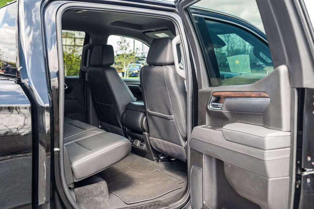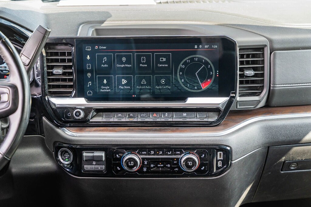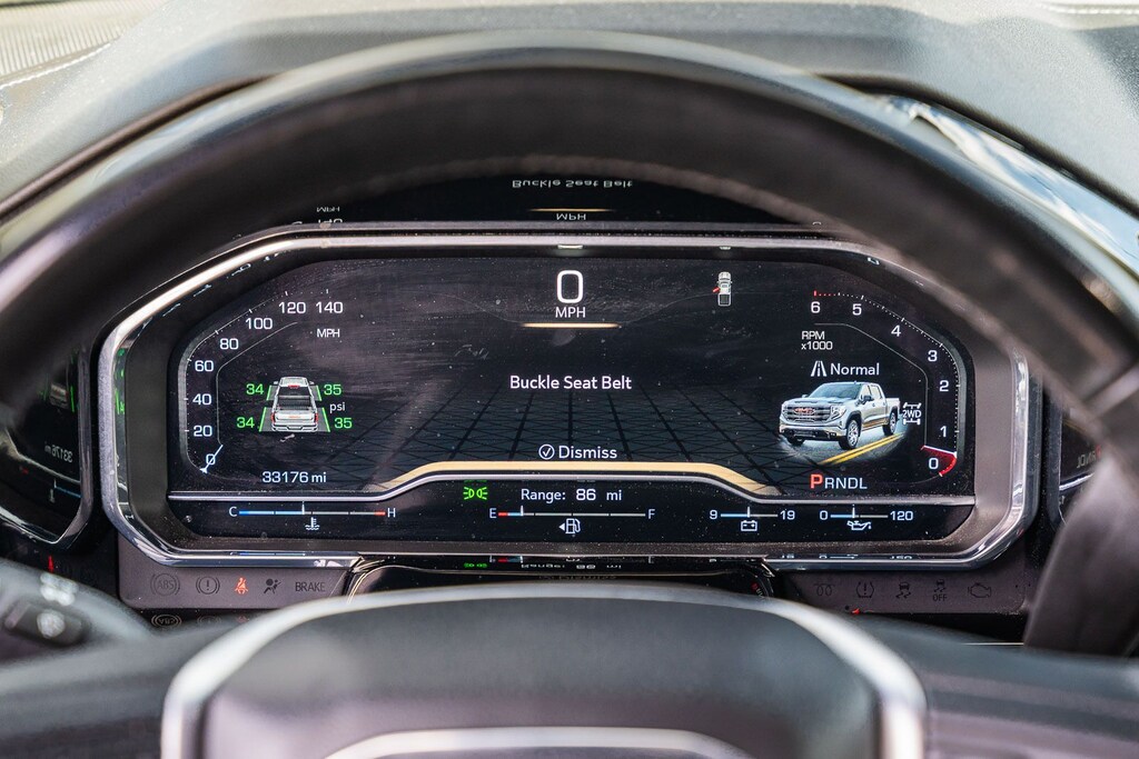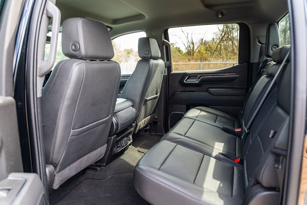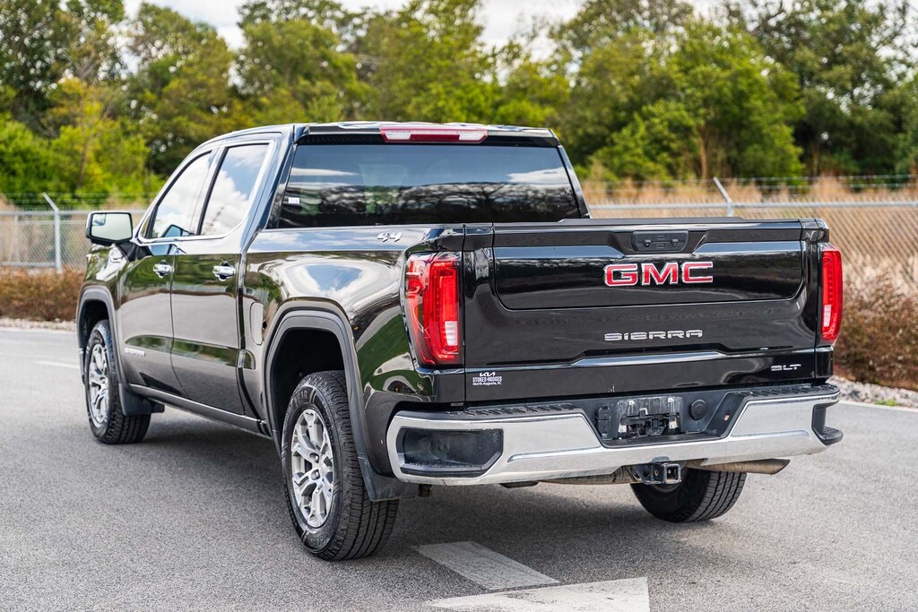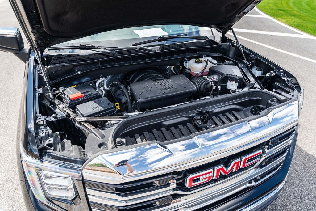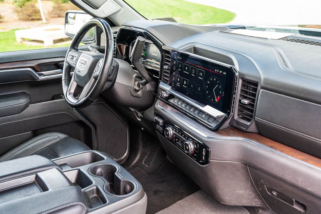 This Sierra 1500 SLT includes Preferred Equipment Group 4SA (120-Volt Bed Mounted Power Outlet, 120-Volt Interior Power Outlet, 170 Amp Alternator, 2 Charge/Data USB Ports, 2 Type-C Charge-Only Rear USB Ports, 6-Speaker Audio System Feature, Auto-Locking Rear Differential, Auxiliary External Transmission Oil Cooler, Chrome Header & Chrome Grille Insert Bars, Color-Keyed Carpeting Floor Covering, Deep-Tinted Glass, Electric Rear-Window Defogger, Front Frame-Mounted Black Recovery Hooks, Front Rain-Sensing Wipers, HD Rear Vision Camera, Integrated Trailer Brake Controller, Keyless Open & Start, LED Cargo Area Lighting, Manual Tilt-Wheel & Telescoping Steering Column, OnStar Services Capable, Perimeter Lighting, Power Door Locks, Power Front Passenger Windows w/Express Up/Down, Power Front Windows w/Driver Express Up/Down, Power Rear Windows w/Express Down, Push Button Start, Rear Wheelhouse Liners, Remote Vehicle Starter System, SiriusXM w/360L Trial Subscription, Steering Wheel Audio Controls, Theft Deterrent System (Unauthorized Entry), and Wi-Fi Hotspot Capable), Standard Suspension Package, Trailering Package (Hitch Guidance), 10-Speed Automatic, 4WD, Black Leather, 10-Way Power Driver Seat Adjuster w/Lumbar, 10-Way Power Passenger Seat Adjuster w/Lumbar, 3.23 Rear Axle Ratio, 4-Wheel Disc Brakes, 6 Speakers, ABS brakes, Air Conditioning, Alloy wheels, AM/FM radio: SiriusXM with 360L, Apple CarPlay/Android Auto, Auto High-beam Headlights, Auto-dimming door mirrors, Auto-dimming Rear-View mirror, Automatic Emergency Braking, Automatic temperature control, Brake assist, Buckle to Drive, Bumpers: chrome, Compass, Delay-off headlights, Driver door bin, Driver Memory, Driver vanity mirror, Dual front impact airbags, Dual front side impact airbags, Electronic Stability Control, Emergency communication system: OnStar, Following Distance Indicator, Forward Collision Alert, Front 40/20/40 Split-Bench Seat, Front anti-roll bar, Front Center Armrest w/Storage, Front dual zone A/C, Front fog lights, Front Pedestrian Braking, Front reading lights, Front wheel independent suspension, Fully automatic headlights, Heated door mirrors, Heated Driver & Front Outboard Passenger Seating, Heated front seats, Heated steering wheel, Illuminated entry, IntelliBeam Automatic High Beam On/Off, Lane Keep Assist w/Lane Departure Warning, Low tire pressure warning, Memory seat, Navigation System, Occupant sensing airbag, Outside temperature display, Overhead airbag, Overhead console, Panic alarm, Passenger door bin, Passenger vanity mirror, Perf Leather-Appointed Front Outboard Seat Trim, Power door mirrors, Power driver seat, Power passenger seat, Power steering, Power windows, Radio data system, Radio: Premium GMC Infotainment Audio System, Rain sensing wipers, Rear reading lights, Rear seat center armrest, Rear step bumper, Rear window defroster, Remote keyless entry, Security system, Speed control, Speed-sensing steering, Split folding rear seat, Steering wheel mounted audio controls, Tachometer, Telescoping steering wheel, Tilt steering wheel, Traction control, Trip computer, Variably intermittent wipers, Voltmeter, Wheels: 18" x 8.5" 6-Spoke Machined Aluminum, and Wireless Apple CarPlay/Wireless Android Auto . While every effort has been made to ensure display of accurate data, the vehicle listings within this web site may not reflect all accurate vehicle items. All Inventory listed is subject to prior sale. The vehicle photo displayed may be an example only. Pricing throughout the web site does not include any options that may have been installed at the dealership. Please see the dealer for details. Vehicles may be in transit or currently in production. Some vehicles are shown with optional equipment. See the actual vehicle for complete accuracy of features, options & pricing. Because of th