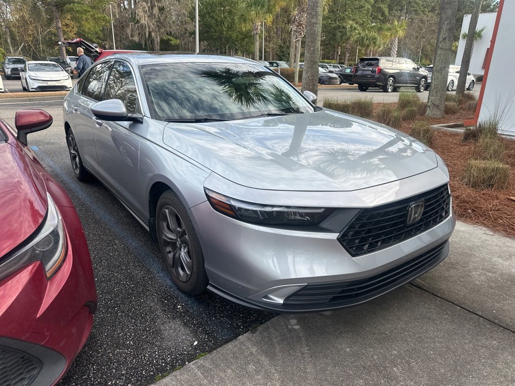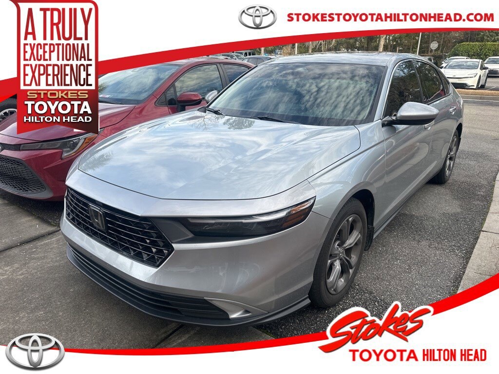 ***Stokes Toyota Hilton Head*** 2024 Honda Accord EX in Solar Silver Metallic, Factory Equipped With: Power Windows, Power Locks, Cruise Control, Remote Keyless Entry, 8-Way Power Drivers Seat, Integrated Back Up Camera, Sunroof, Alloy Wheels, 4-Wheel Disc Brakes, 8 Speakers, ABS brakes, Adaptive Cruise Control: Adaptive Cruise Control (ACC) with Low-Speed Follow, Air Conditioning, AM/FM radio, Apple CarPlay/Android Auto, Automatic temperature control, Blind Spot Information (BSI) System warning, Brake assist, Bumpers: body-color, Dual front impact airbags, Dual front side impact airbags, Electronic Stability Control, Fabric Seat Trim, Front Bucket Seats, Front dual zone A/C, Low tire pressure warning, Panic alarm, Power door mirrors, Power driver seat, Power steering, Rear window defroster, Steering wheel mounted audio controls, Tilt steering wheel, Trip computer, Variably intermittent wipers, Wheels: 17" x 7.5" Pewter Gray. CARFAX One-Owner. Clean CARFAX.
