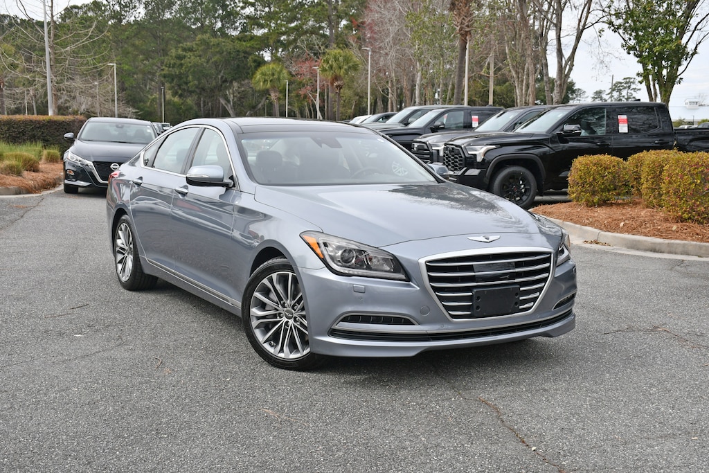 ***Stokes Toyota Hilton Head*** Loaded** 2015 Hyundai Genesis 3.8 in Gray, Factory Equipped With: Leather Seats, Power Windows, Power Locks, Cruise Control, Remote Keyless Entry, Navigation, Sunroof, Heated & Cooled Leather, Smart Key, ABS brakes, Air Conditioning, Automatic temperature control, Bumpers: body-color, Dual front impact airbags, Dual front side impact airbags, Dual Mode HVAC and CO2 Sensor, Front Bucket Seats, Full-Color Heads-Up Display, Genuine Aluminum Interior Accents, Genuine Matte Finish Wood Trim, Low tire pressure warning, Option Group 04, Panic alarm, Power driver seat, Power Trunk Lid, Radio: AM/FM/SiriusXM/CD/HD/DVD/MP3 Audio System, Steering wheel mounted audio controls, Turn signal indicator mirrors, Ultimate Package 04, Ultra-Premium Leather Seating Surfaces, Variably intermittent wipers, Wheels: 18 x 8.0J Machine Finished Aluminum Alloy.