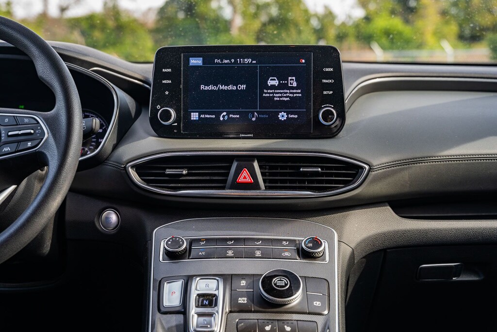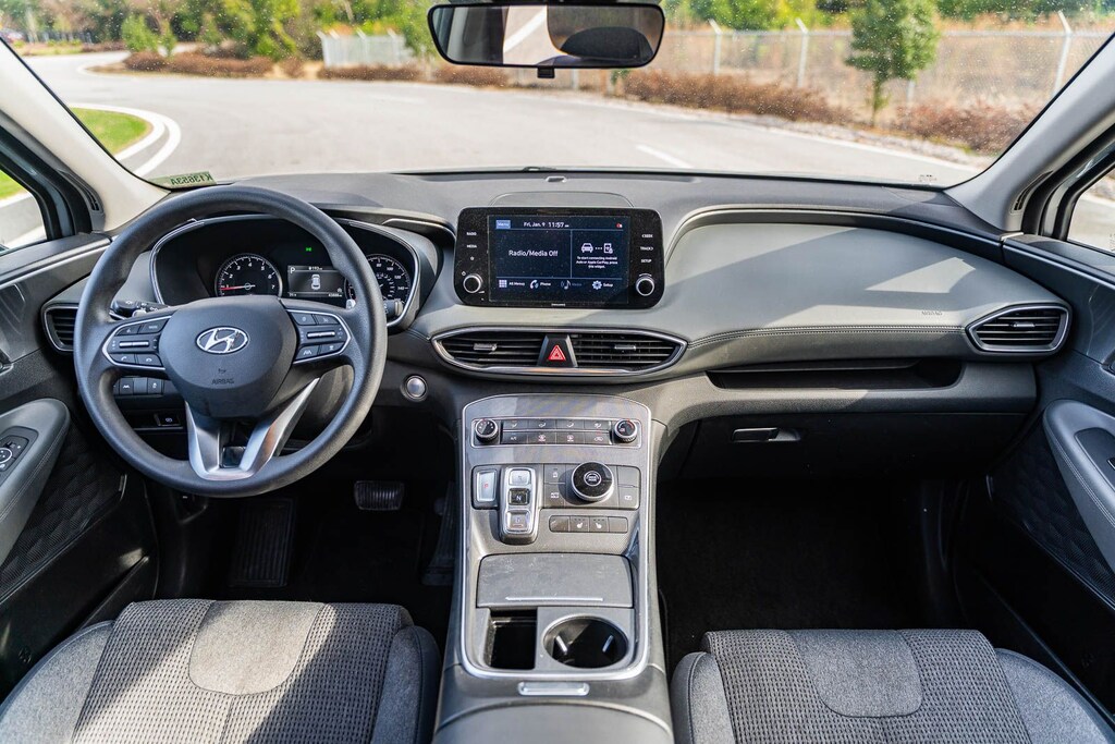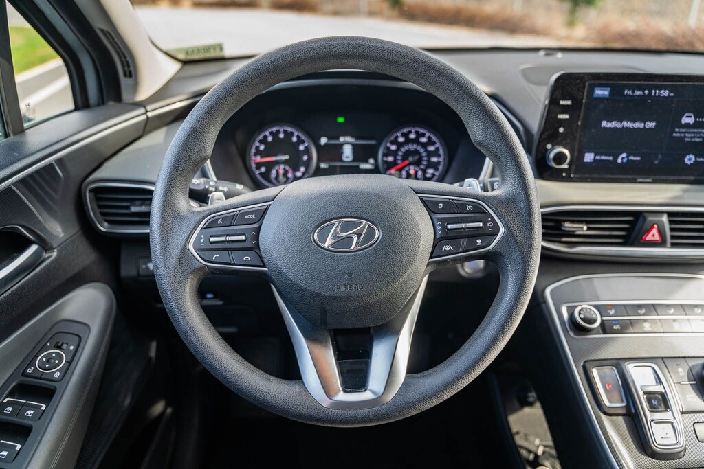 This Santa Fe SEL includes Option Group 01, Gray Cloth, 18" x 7.5J Alloy Wheels, 4-Wheel Disc Brakes, 6 Speakers, ABS brakes, Air Conditioning, Alloy wheels, AM/FM radio: SiriusXM, Apple CarPlay & Android Auto, Auto High-beam Headlights, Axle Ratio: 3.798, Brake assist, Bumper Applique, Bumpers: body-color, Cargo Cover/Screen, Cargo Net, Cargo Tray, Carpeted Floor Mats, Delay-off headlights, Driver door bin, Driver vanity mirror, Dual front impact airbags, Dual front side impact airbags, Electronic Stability Control, Emergency communication system, Exterior Parking Camera Rear, First Aid Kit, Four wheel independent suspension, Front anti-roll bar, Front Bucket Seats, Front Center Armrest, Front reading lights, Fully automatic headlights, Heated door mirrors, Heated Front Bucket Seats, Heated front seats, Illuminated entry, Low tire pressure warning, Mudguards, Occupant sensing airbag, Outside temperature display, Overhead airbag, Overhead console, Panic alarm, Passenger door bin, Passenger vanity mirror, Power door mirrors, Power driver seat, Power steering, Power windows, Radio: AM/FM Display Audio, Rear anti-roll bar, Rear seat center armrest, Rear window defroster, Rear window wiper, Remote keyless entry, Security system, Speed control, Speed-sensing steering, Split folding rear seat, Spoiler, Steering wheel mounted audio controls, Tachometer, Telescoping steering wheel, Tilt steering wheel, Traction control, Trip computer, Variably intermittent wipers, and YES Essentials Stain-Resistant Cloth Seat Trim . While every effort has been made to ensure display of accurate data, the vehicle listings within this web site may not reflect all accurate vehicle items. All Inventory listed is subject to prior sale. The vehicle photo displayed may be an example only. Pricing throughout the web site does not include any options that may have been installed at the dealership. Please see the dealer for details. Vehicles may be in transit or currently in production. Some vehicles are shown with optional equipment. See the actual vehicle for complete accuracy of features, options & pricing. Because of the numerous possible combinations of vehicle models, styles, colors and options, the vehicle pictures on this site may not match your vehicle exactly; however, it will match as closely as possible. Some vehicle images shown are stock photos and may not reflect your exact choice of vehicle, color, trim and specification. Not responsible for pricing or typographical errors. Virtual Inventory, Available Configurations and In-Transit inventory contains vehicles that have not actually been manufactured. These vehicles show consumers sample vehicles that may be available. Pricing, Options, Color, and other data pertaining to these vehicles are provided for example only. All information pertaining to these vehicles should be independently verified through the dealer. 25/28 City/Highway MPG
