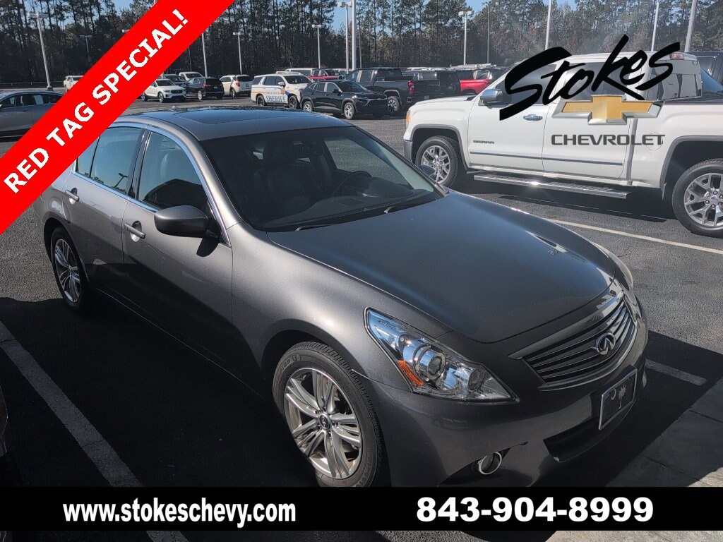 AWD. Gray 2013 INFINITI G37 X AWD 7-Speed Automatic with Manual Shift 3.7L V6 DOHC 24VRecent Arrival! Reviews:* If you want an entry-level luxury vehicle that delivers thrilling performance, handsome styling and lots of bang for your buck, the 2013 INFINITI G37 series is worth a close look. Source: KBB.com* Sharp handling; excellent brakes; muscular 3.7-liter V6; high-tech features; strong value. Source: Edmunds**** Stokes Chevrolet is not responsible for any price discrepancies, statements of condition, or incorrect equipment listed on a vehicle. Vehicles may have minor road chips, light scratches, wheel scuffs, etc. Depending on the age of the vehicle, normal wear and tear should be anticipated. We may or may not have all the keys and floor mats. We will be happy to obtain extra oneâs for you at our dealer cost. Price does include all applicable rebates and incentives offered by manufacturer and/or finance source and $1000 trade assistance, must have trade to qualify. Price does not include dealer addendum *Reconditioning/UCI. The full cash price charged at any dealership depends on many factors, including all products and services bought with the vehicle. It is the customer's sole responsibility to verify the existence and condition of any equipment listed. Neither the dealership nor dealer website provider are responsible for misprints on prices or equipment. This site, and all information and materials appearing on it, are presented to the user as is without warranty of any kind, either express or implied. Customers must mention this advertisement to receive the advertised price. While great effort is made to ensure the accuracy of the information on this site, errors do occur so please verify information with a customer service rep. This is easily done by calling us at (843)761-8084 or by visiting us at the dealership. Anyone that submits a form online that includes a phone number has agreed to all forms of contact, which would include, calling and texting.. All vehicles are subject to prior sale. Prices shown do not tax, tag, registration, title, license charges and $599.50 Closing Fee on all vehicles. Vehicles shown at different locations are not currently in our inventory (Not in Stock) but can be made available to you at our location within a reasonable date from the time of your request, not to exceed one week.