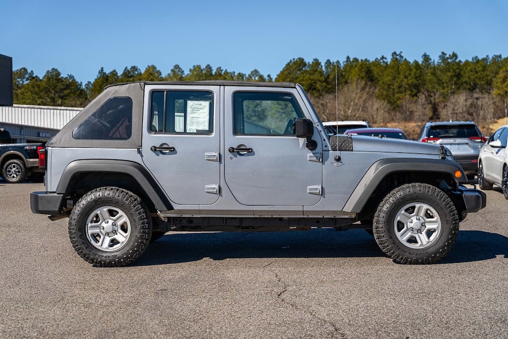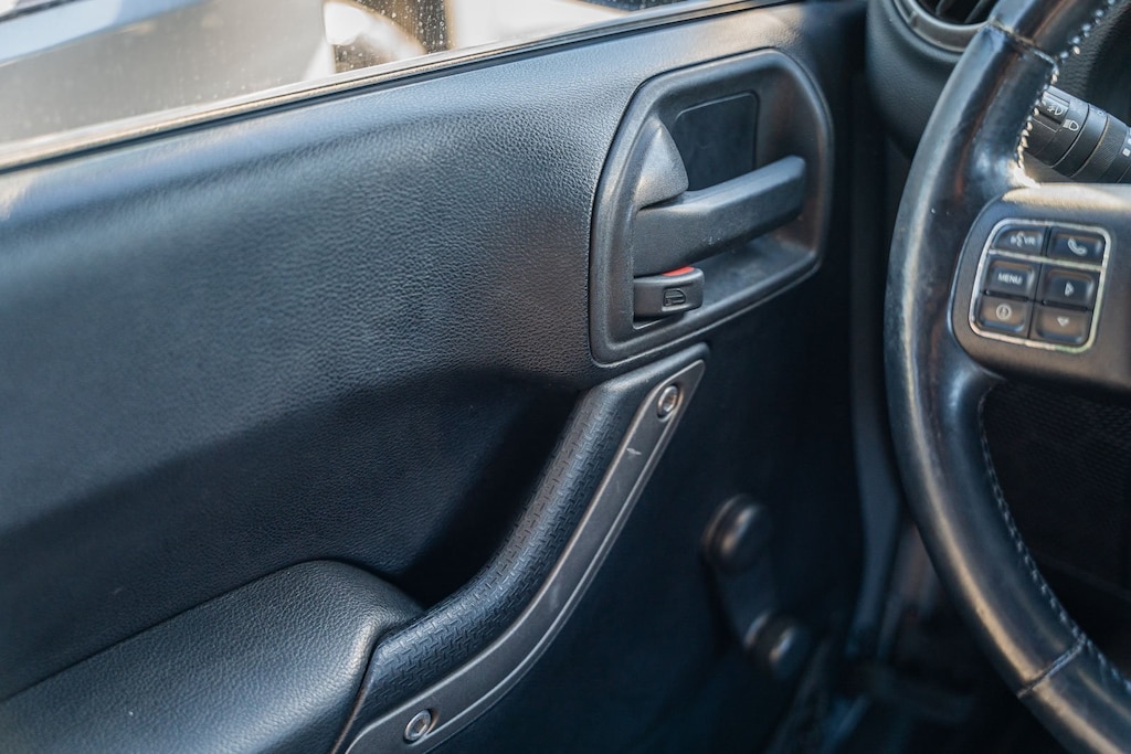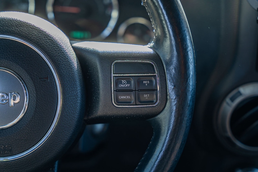 This vehicle comes equipped with Connectivity Group (Chrome/Leather Wrapped Shift Knob, Leather Wrapped Steering Wheel, Remote USB Port, Tire Pressure Monitoring Display, Uconnect Voice Command w/Bluetooth, and Vehicle Information Center), Max Tow Package (Class II Receiver Hitch and Trailer Tow w/4-Pin Connector Wiring), Quick Order Package 23C, 1-Year SiriusXM Radio Service, 16" x 7.0" Luxury Styled Steel Wheels, 4-Wheel Disc Brakes, 6 Speakers, ABS brakes, Air Conditioning, AM/FM radio, Anti-Spin Differential Rear Axle, Brake assist, CD player, Cloth Bucket Seats, Compass, Driver door bin, Driver vanity mirror, Dual front impact airbags, Electronic Stability Control, Front anti-roll bar, Front Bucket Seats, Front Center Armrest w/Storage, Front fog lights, Integrated roll-over protection, Low tire pressure warning, Normal Duty Suspension, Occupant sensing airbag, Outside temperature display, Passenger door bin, Passenger vanity mirror, Power steering, Radio: Uconnect 130 AM/FM/CD/MP3, Rear anti-roll bar, SIRIUS Satellite Radio, Speed control, Split folding rear seat, Steering wheel mounted audio controls, Sunrider Soft Top, Tachometer, Tilt steering wheel, Traction control, Trip computer, and Variably intermittent wipers.
