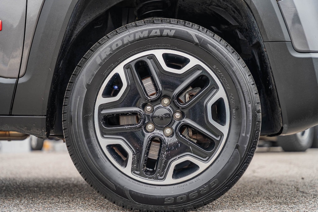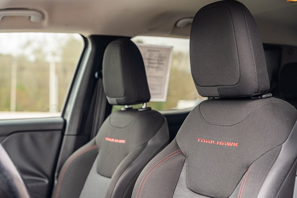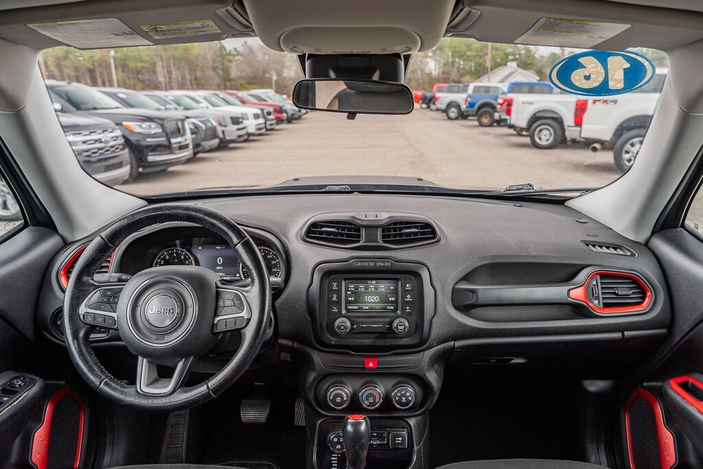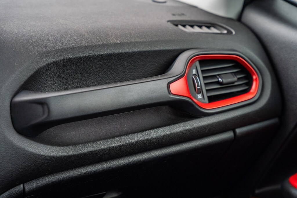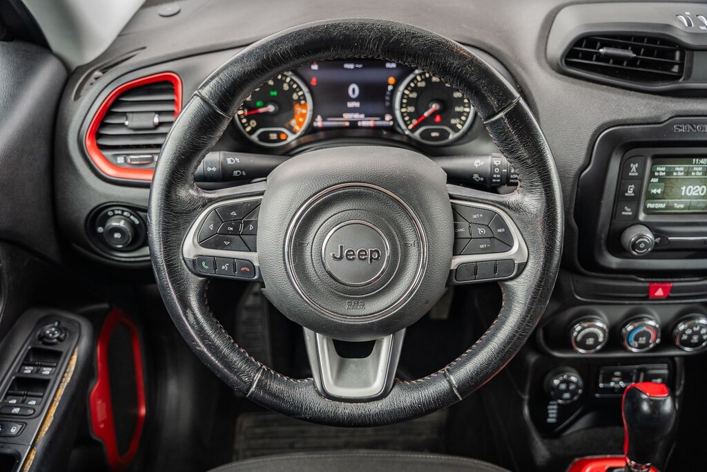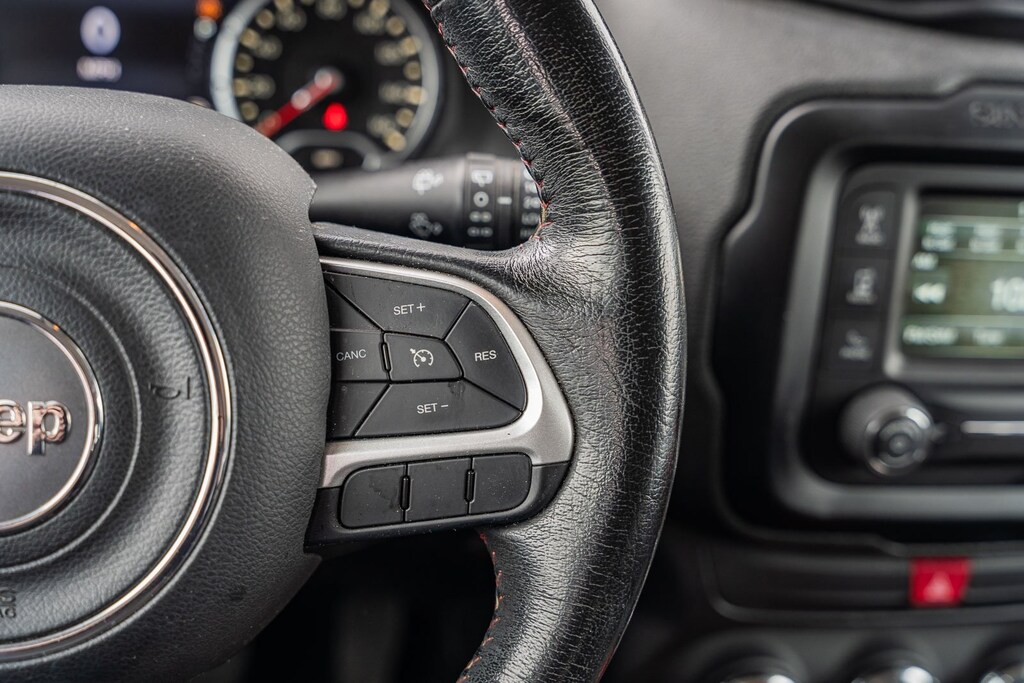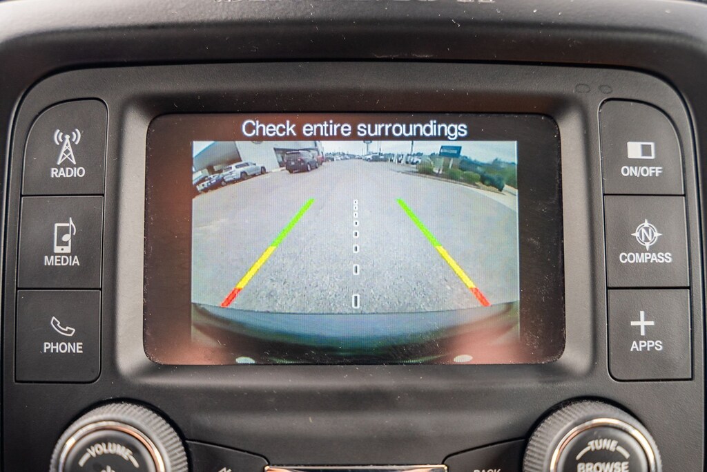 This vehicle comes equipped with Passive Entry Keyless Go Package, Quick Order Package 27E, Safety & Security Group (Blind Spot & Cross Path Detection, Security Alarm, and Tonneau Cover), 115V Auxiliary Power Outlet, 17" x 6.5" Aluminum Wheels, 4-Wheel Disc Brakes, 4.334 Axle Ratio, 6 Speakers, ABS brakes, Air Conditioning, Alloy wheels, AM/FM radio: SiriusXM, Anti-whiplash front head restraints, Brake assist, Compass, Delay-off headlights, Driver door bin, Driver vanity mirror, Dual front impact airbags, Dual front side impact airbags, Electronic Stability Control, Four wheel independent suspension, Front anti-roll bar, Front Bucket Seats, Front Center Armrest, Front fog lights, Front reading lights, Fully automatic headlights, Heated door mirrors, Illuminated entry, Knee airbag, Leather Shift Knob, Leather steering wheel, Low tire pressure warning, Normal Duty Suspension, Occupant sensing airbag, Outside temperature display, Overhead airbag, Overhead console, Panic alarm, ParkView Rear Back-Up Camera, Passenger door bin, Passenger vanity mirror, Passive Entry/Keyless Go (DISC), Power door mirrors, Power steering, Power windows, Premium Cloth Low-Back Bucket Seats, Radio data system, Radio: Uconnect 5.0, Rain sensing wipers, Rear anti-roll bar, Rear window defroster, Rear window wiper, Remote keyless entry, Remote Start System, Roof rack: rails only, Speed control, Split folding rear seat, Spoiler, Steering wheel mounted audio controls, Tachometer, Telescoping steering wheel, Tilt steering wheel, Traction control, Trip computer, Turn signal indicator mirrors, Variably intermittent wipers, and Voltmeter.