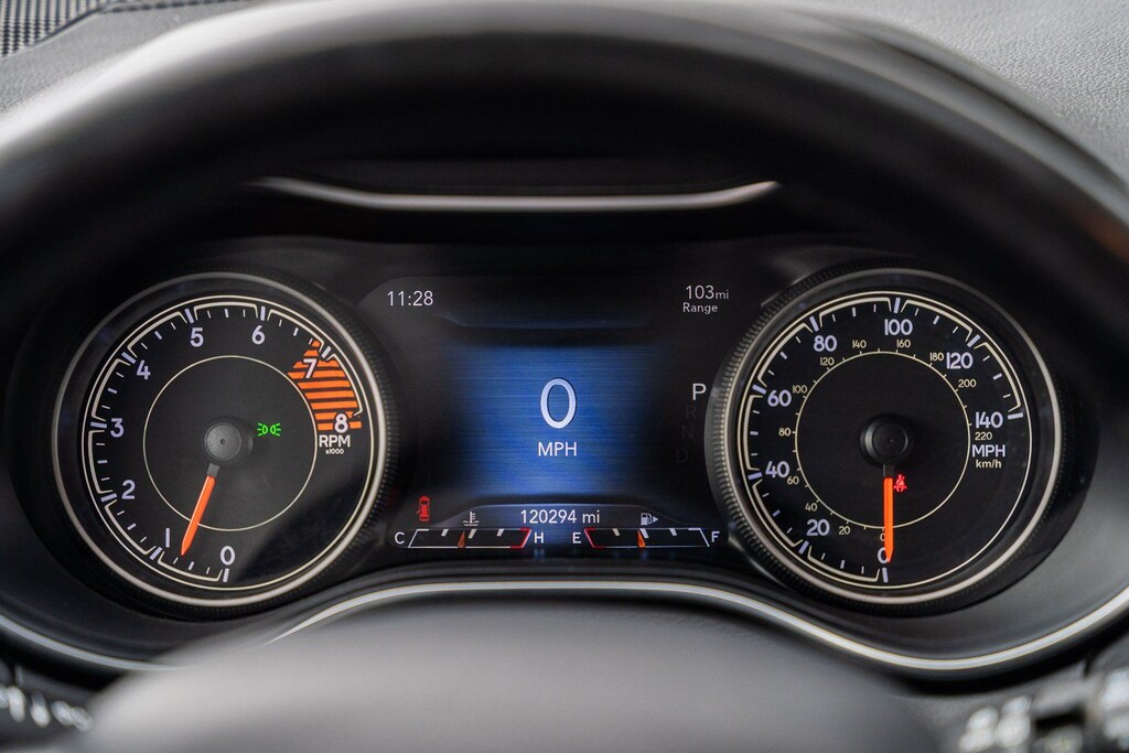 This vehicle comes equipped with Quick Order Package 26G, 1-Year SiriusXM Guardian Trial, 10 Speakers, 3.251 Axle Ratio, 4-Wheel Disc Brakes, 4G LTE Wi-Fi Hot Spot, 5-Year SiriusXM Traffic Service, 5-Year SiriusXM Travel Link Service, 8.4" Touchscreen Display, 9 Amplified Speakers w/Subwoofer (DISC), ABS brakes, Air Conditioning, Alloy wheels, AM/FM radio: SiriusXM, Anti-whiplash front head restraints, Apple CarPlay, Apple CarPlay/Android Auto, Audio memory, Auto-dimming Rear-View mirror, Automatic temperature control, AutoStick Automatic Transmission, Auxiliary Transmission Oil Cooler, Brake assist, Bumpers: body-color, Compass, Delay-off headlights, Driver door bin, Driver vanity mirror, Dual Bright Exhaust Tips, Dual front impact airbags, Dual front side impact airbags, Electronic Stability Control, Engine Oil Cooler, Exterior Mirrors Courtesy Lamps, Exterior Mirrors w/Supplemental Signals, For Details Visit DriveUconnect.com, Four wheel independent suspension, Front anti-roll bar, Front Bucket Seats, Front Center Armrest, Front dual zone A/C, Front fog lights, Front reading lights, Fully automatic headlights, Garage door transmitter, Glove Box Lamp, Glove Box w/Damped Door (DISC), Google Android Auto, GPS Antenna Input, GPS Navigation, HD Radio, Heated door mirrors, Heated front seats, Heated steering wheel, Illuminated entry, Integrated Voice Command w/Bluetooth, Knee airbag, Leather Shift Knob, Low tire pressure warning, Memory seat, Normal Duty Suspension, Occupant sensing airbag, Outside temperature display, Overhead airbag, Overhead console, Panic alarm, ParkView Rear Back-Up Camera, Passenger door bin, Passenger vanity mirror, Power door mirrors, Power driver seat, Power Front/Fixed Rear Full Sunroof, Power Liftgate, Power passenger seat, Power steering, Power windows, Premium Leather Trimmed Bucket Seats, Radio data system, Radio: Uconnect 4 w/8.4" Display, Radio: Uconnect 4C Nav w/8.4" Display, Rear anti-roll bar, Rear reading lights, Rear seat center armrest, Rear side impact airbag, Rear window defroster, Rear window wiper, Remote keyless entry, Roof rack: rails only, Security system, SiriusXM Satellite Radio, SiriusXM Traffic Plus, SiriusXM Travel Link, Speed control, Speed-sensing steering, Split folding rear seat, Spoiler, Steering wheel mounted audio controls, Stop-Start Multiple VSM System, Tachometer, Telescoping steering wheel, Tilt steering wheel, Traction control, Trip computer, Turn signal indicator mirrors, USB Host Flip, Variably intermittent wipers, Voltmeter, and Wheels: 18" x 7" Polished/Painted Aluminum.